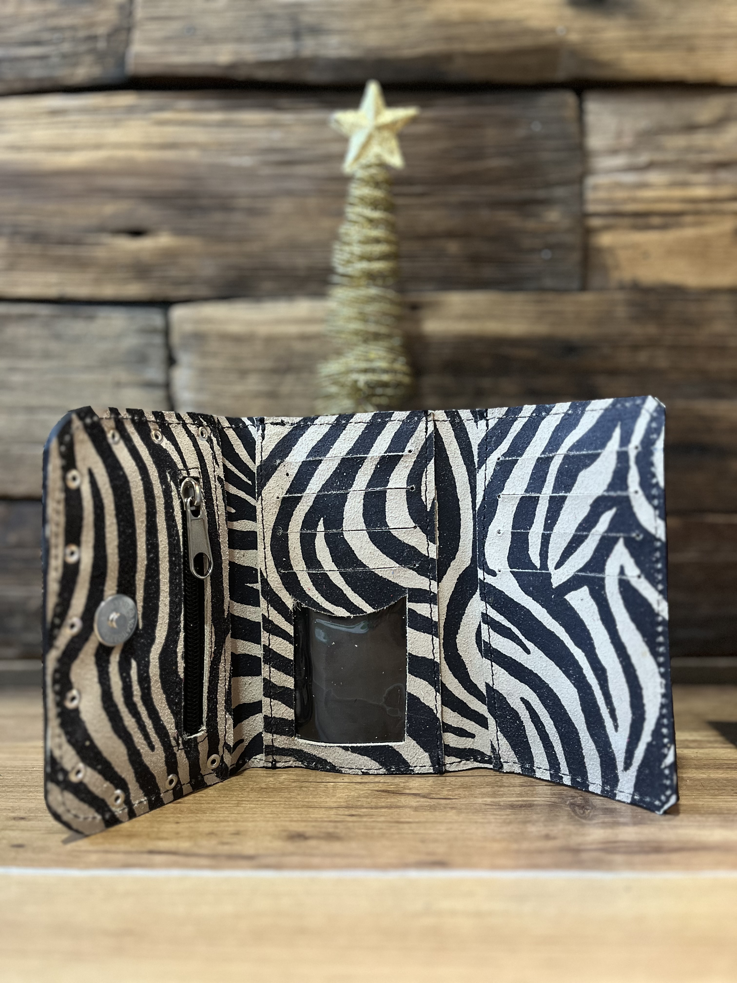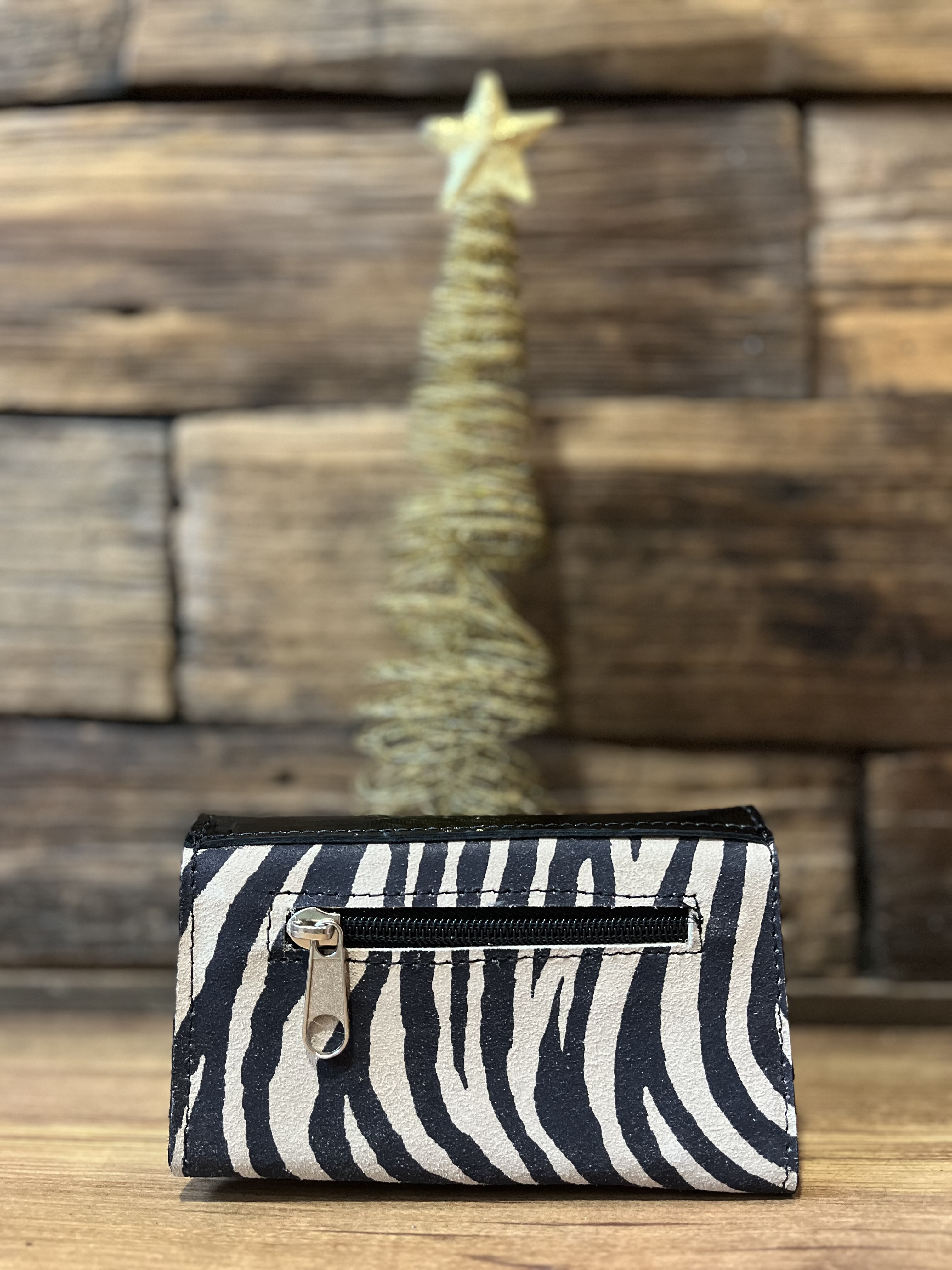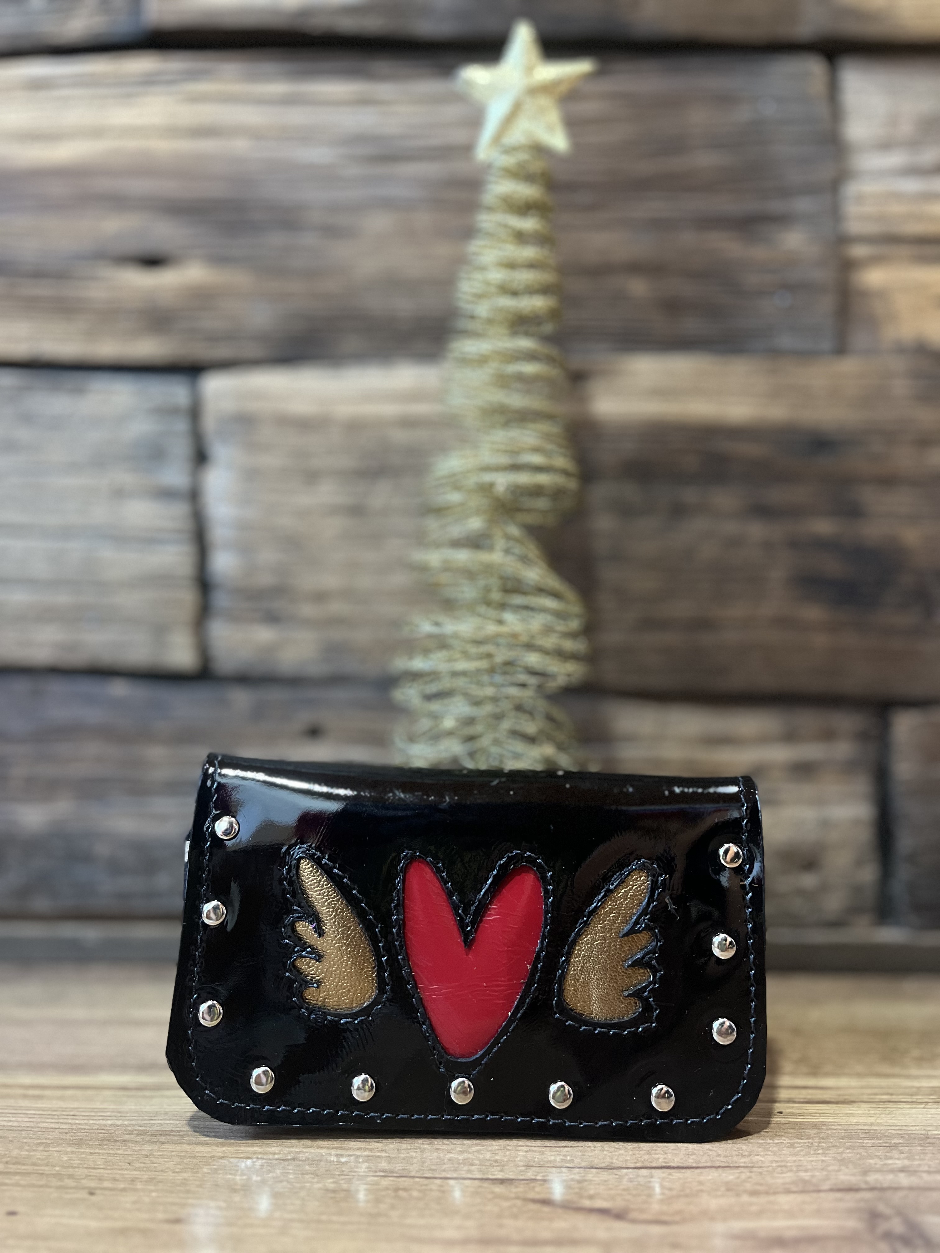 Billetera cuero corazon alado negro rojo cebra 3 cuerpos