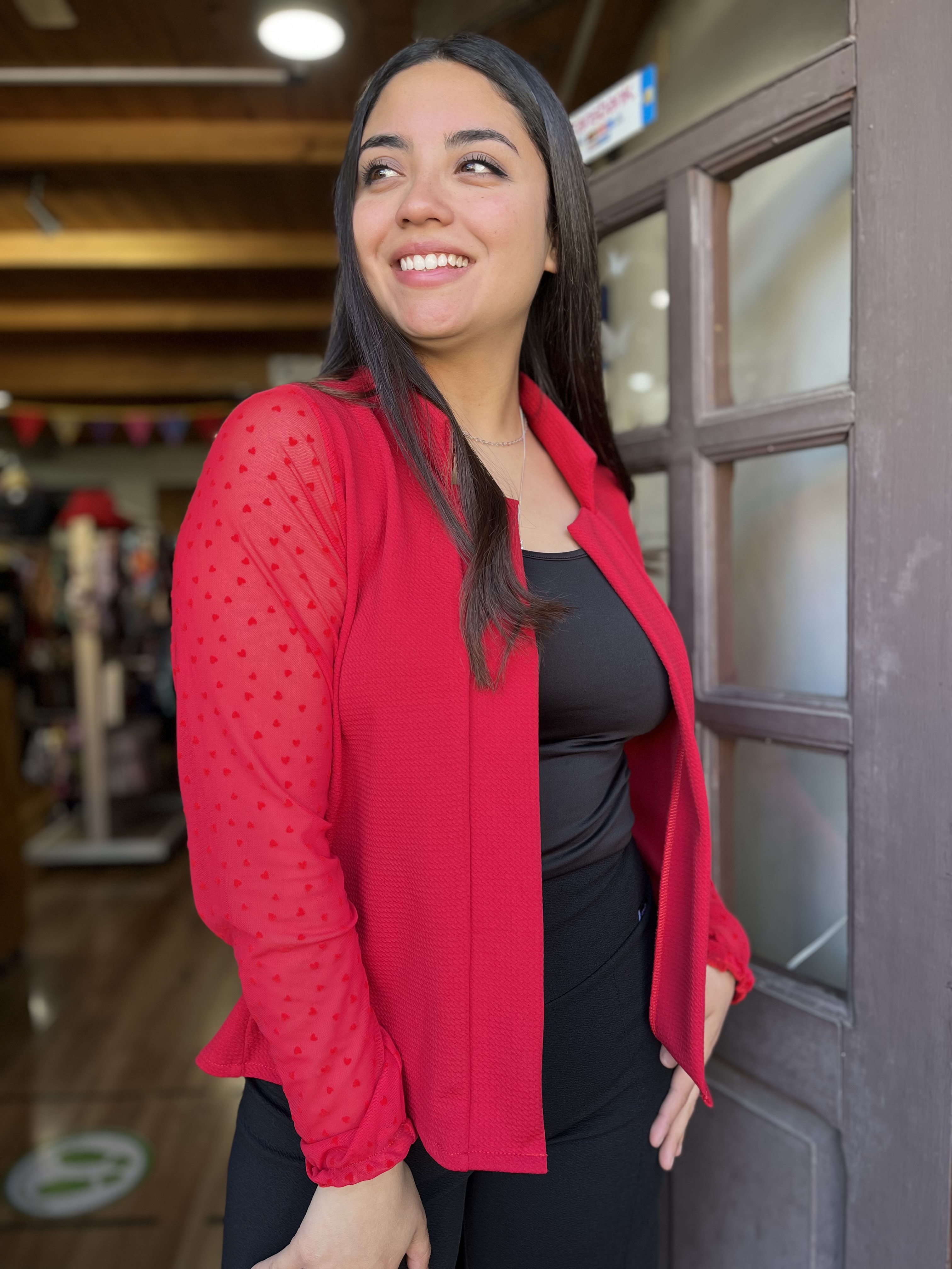El Blazer Andrea te acompañará en un evento especial e incluso para un día de trabajo semi formal. Sus mangas con transparencias y diseño de corazones lo hacen único.