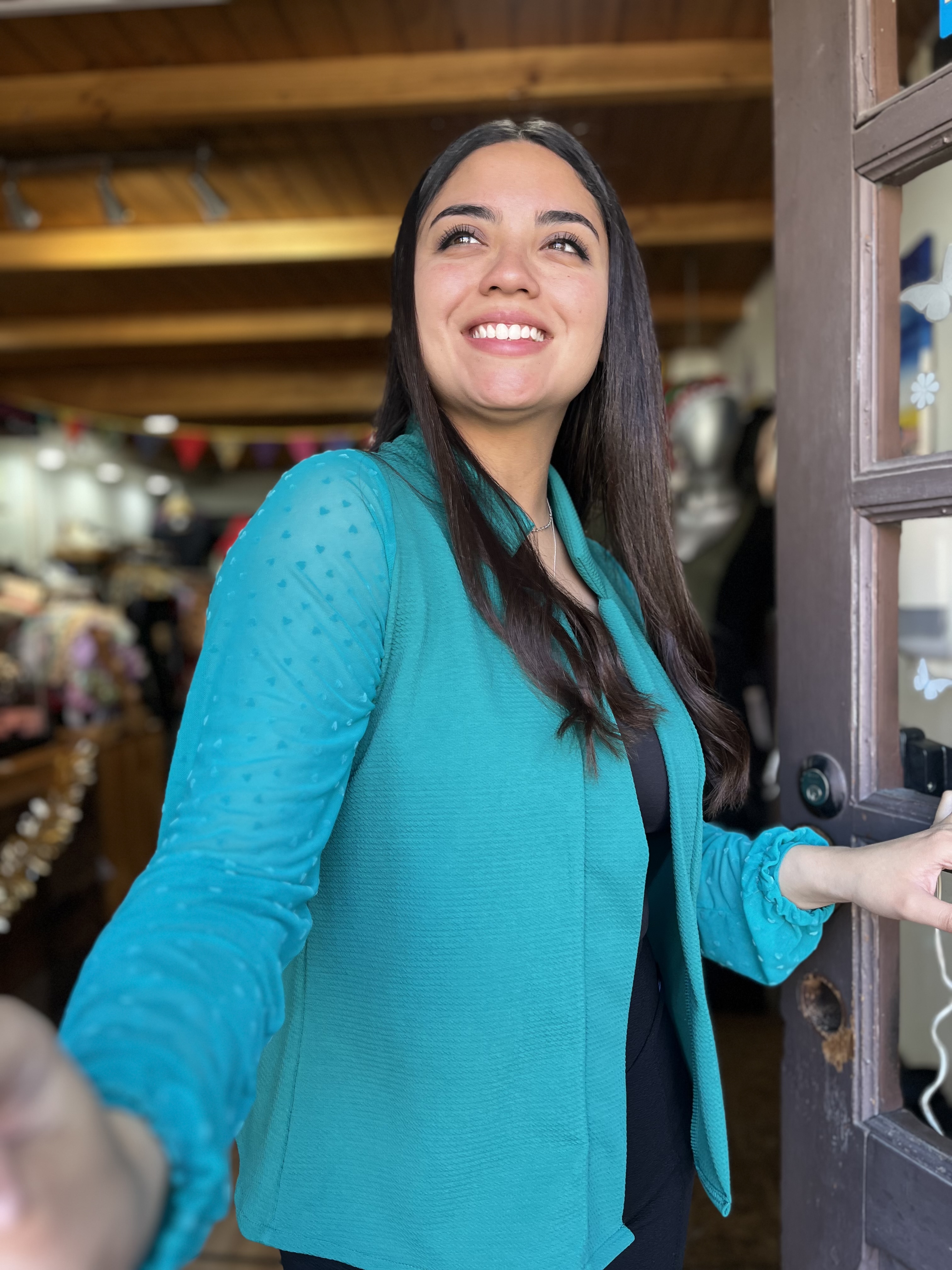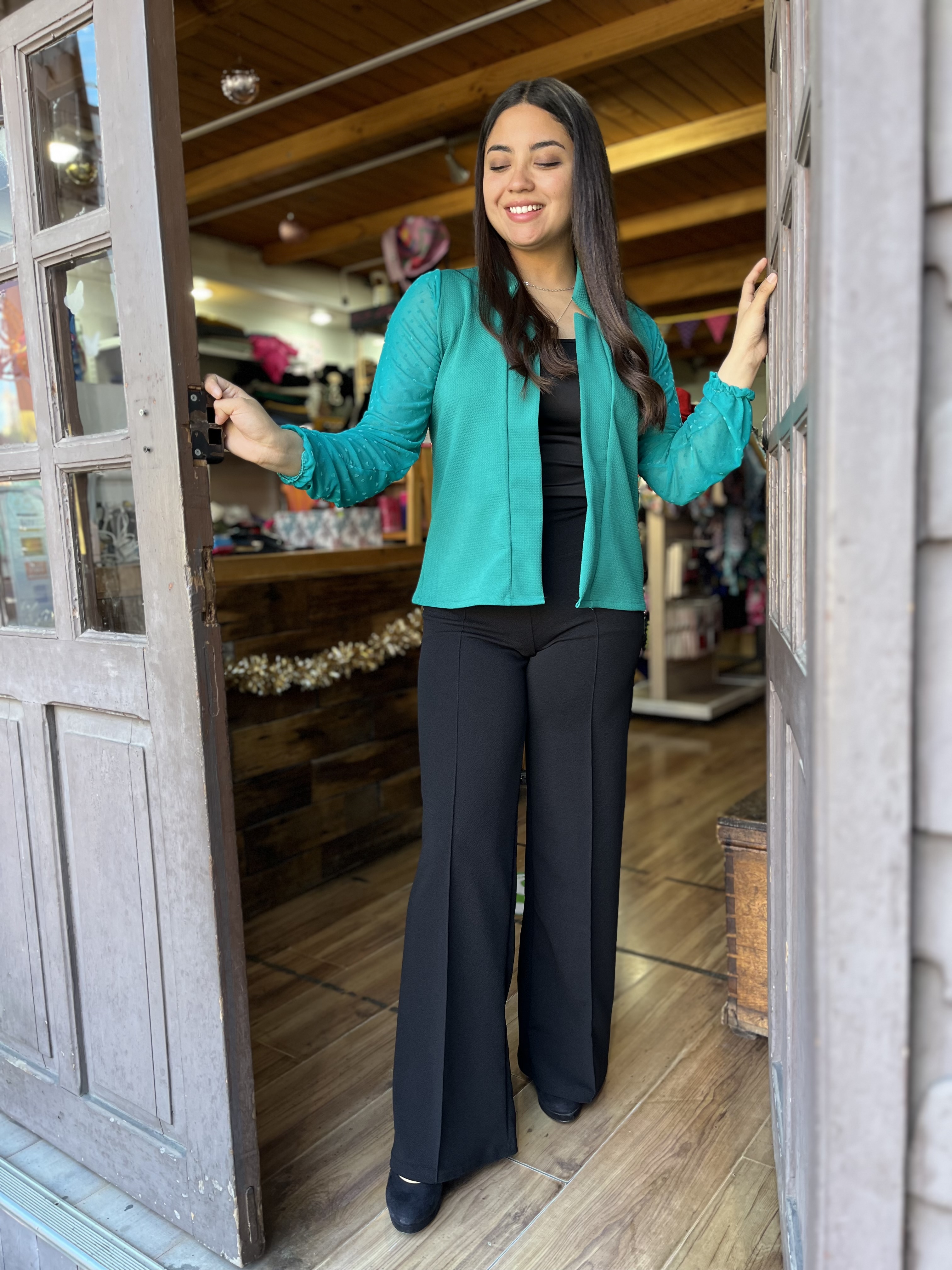 El Blazer Andrea te acompañará en un evento especial e incluso para un día de trabajo semi formal. Sus mangas con transparencias y diseño de corazones lo hacen único.