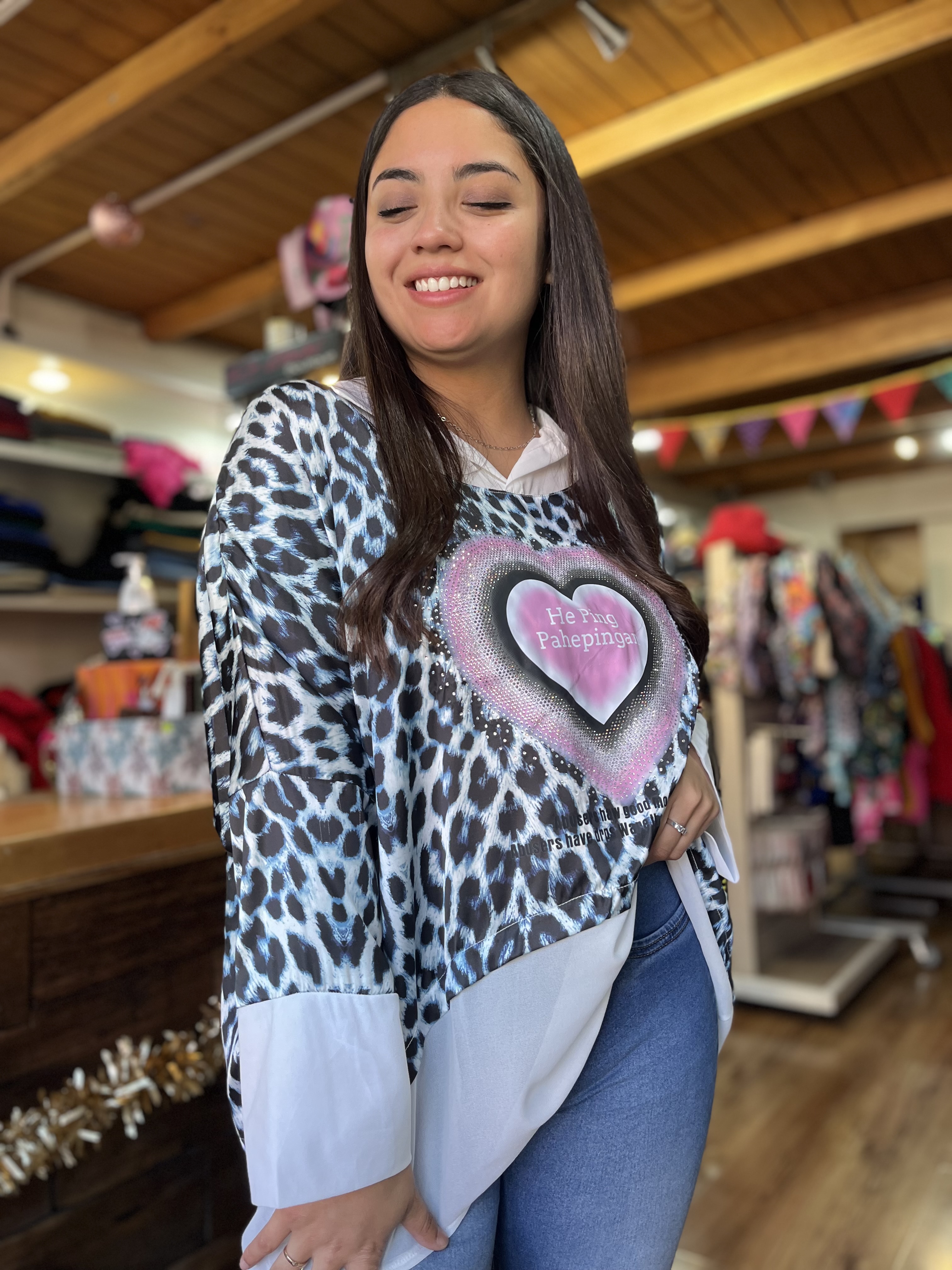 Blusa doble animal print corazon con strass brillo