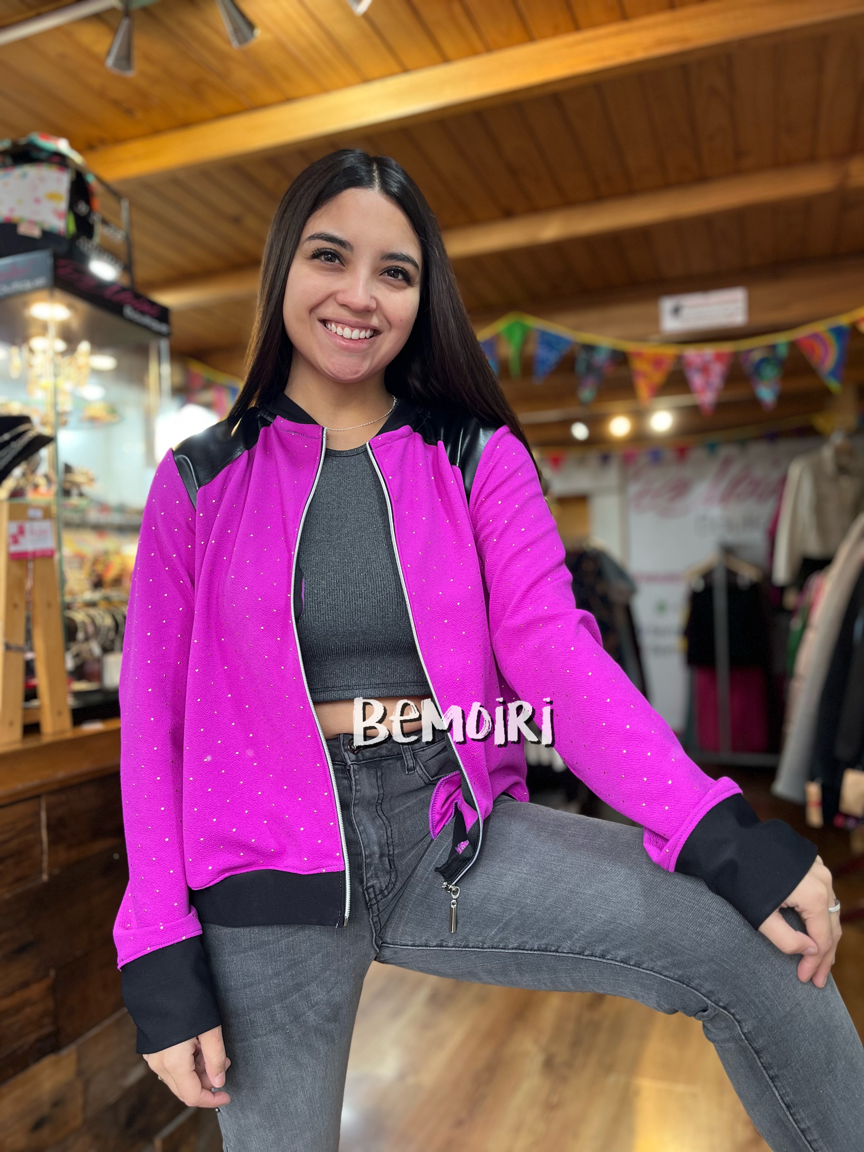 Bomber magenta aplicacion eco cuero