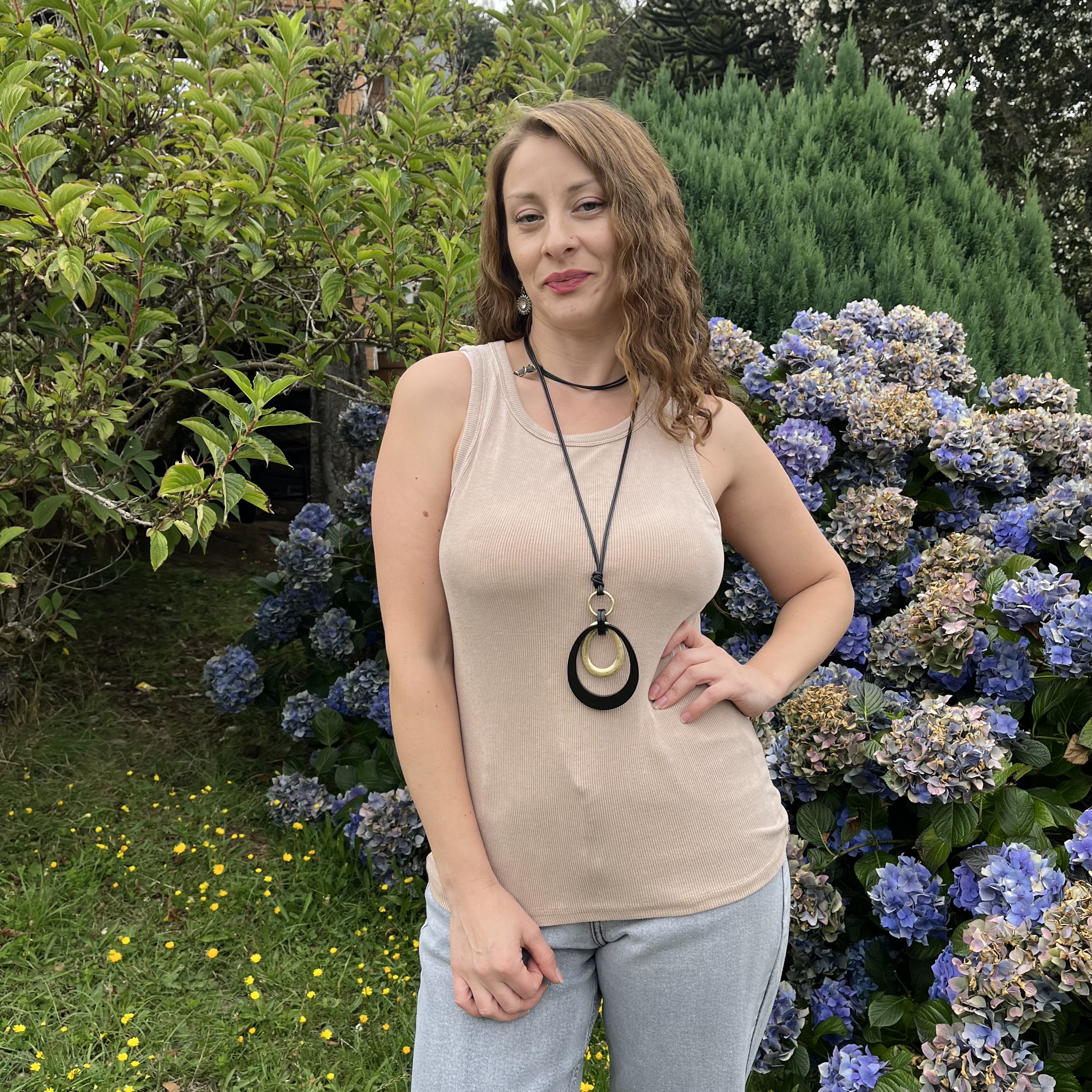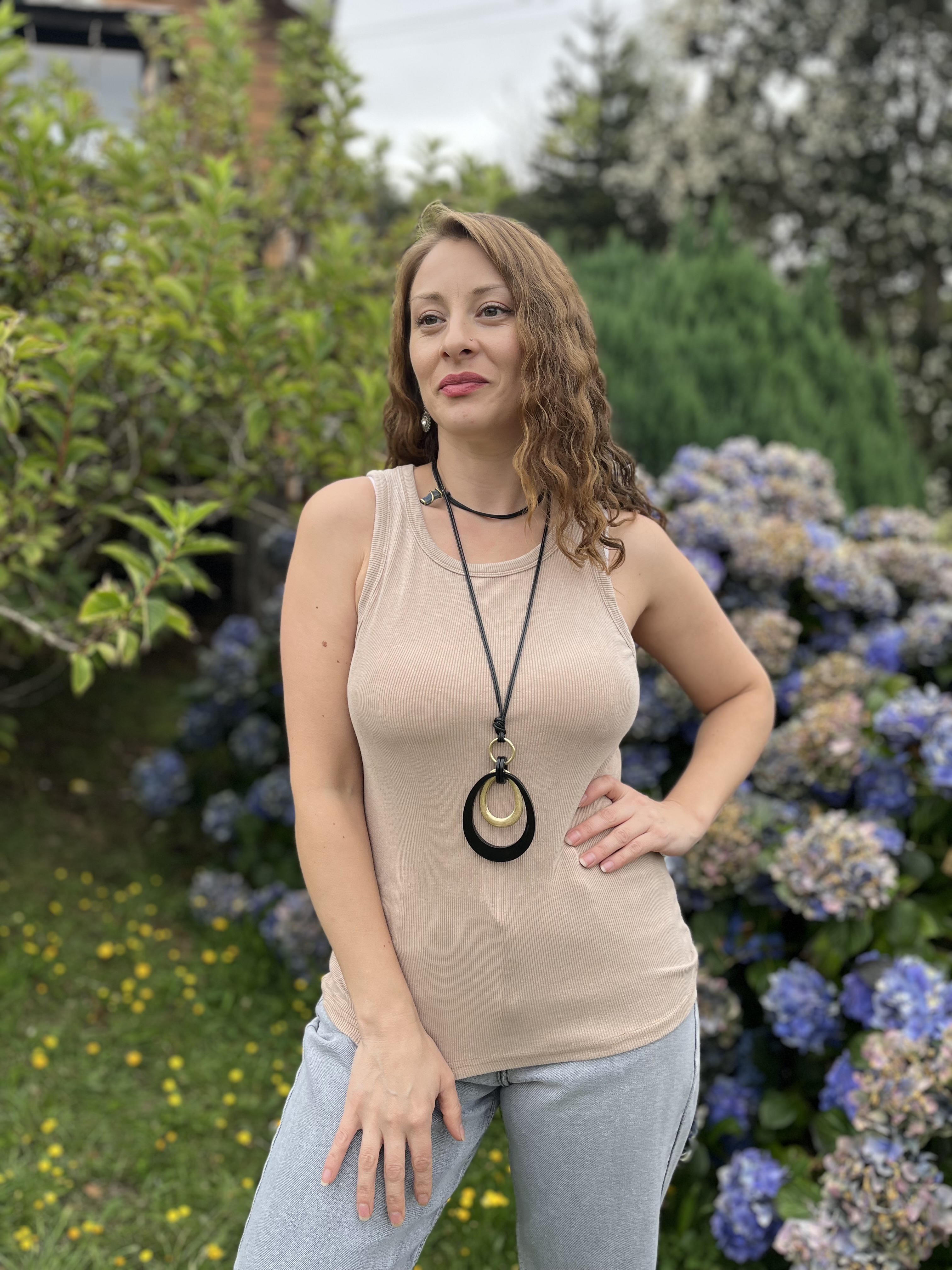 Ya sea para combinar con jeans, shorts o faldas, esta camiseta se convierte en un básico imprescindible en tu armario. Además, su color taupé es versátil y fácil de combinar, lo que la convierte en una opción ideal para cualquier época del año.