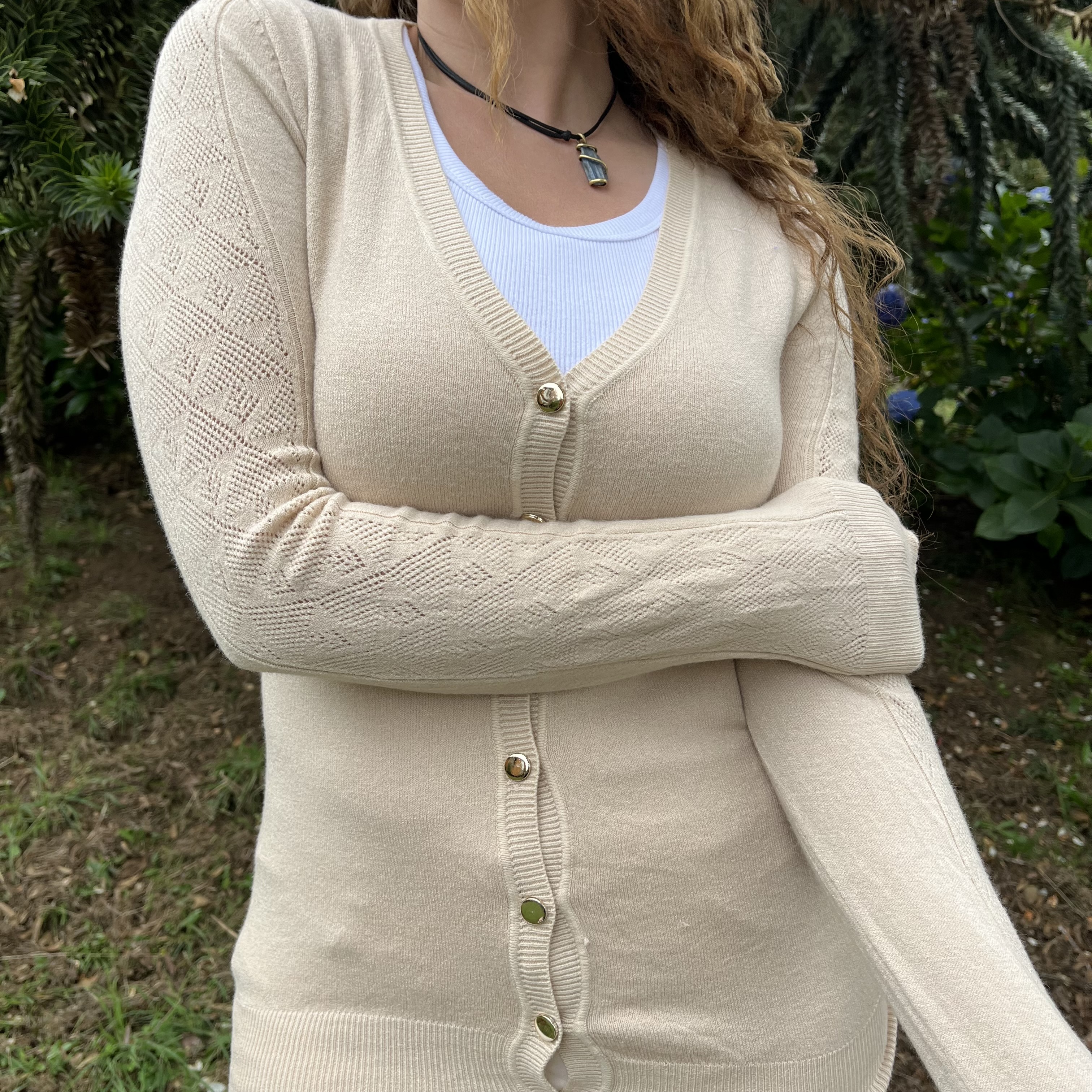 Cardigan spandex beige con botones dorados