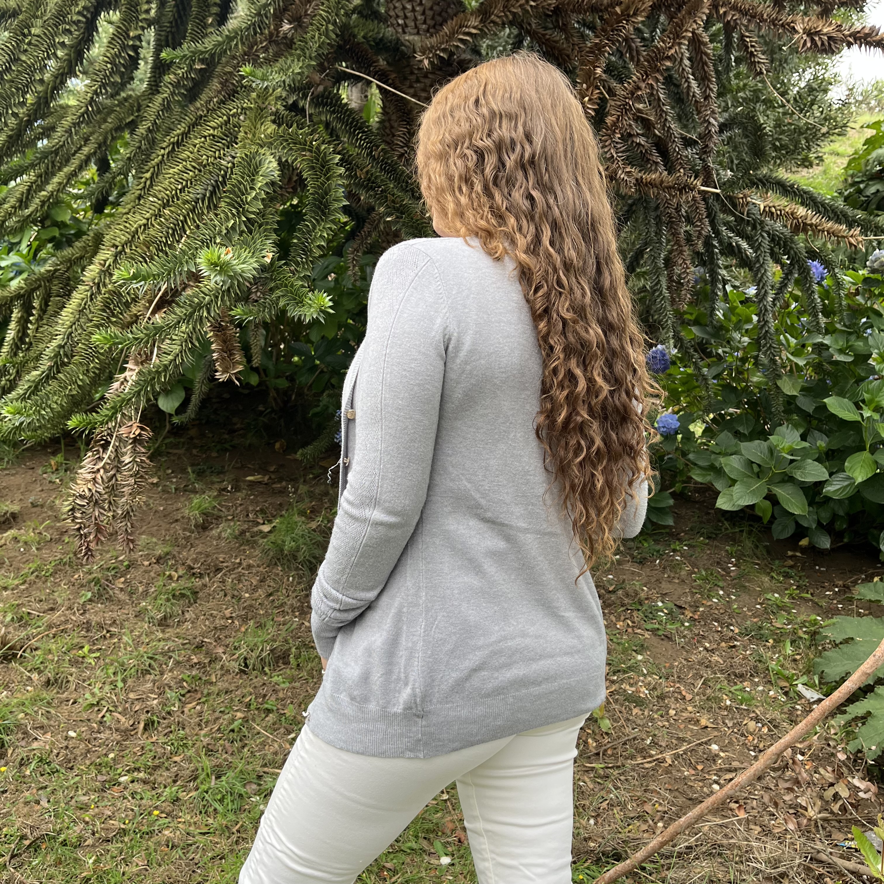 Cardigan spandex gris con botones dorados