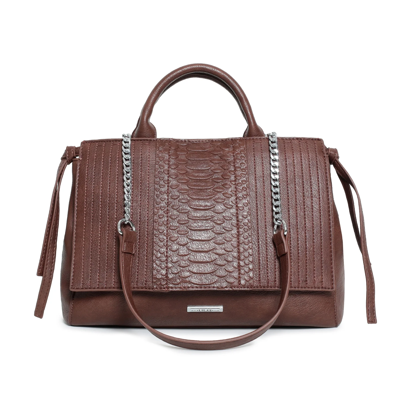 Cartera Lilás con texturas, asas desmontables para usar de mano o en el hombro. Gran capacidad interior con bolsillos.