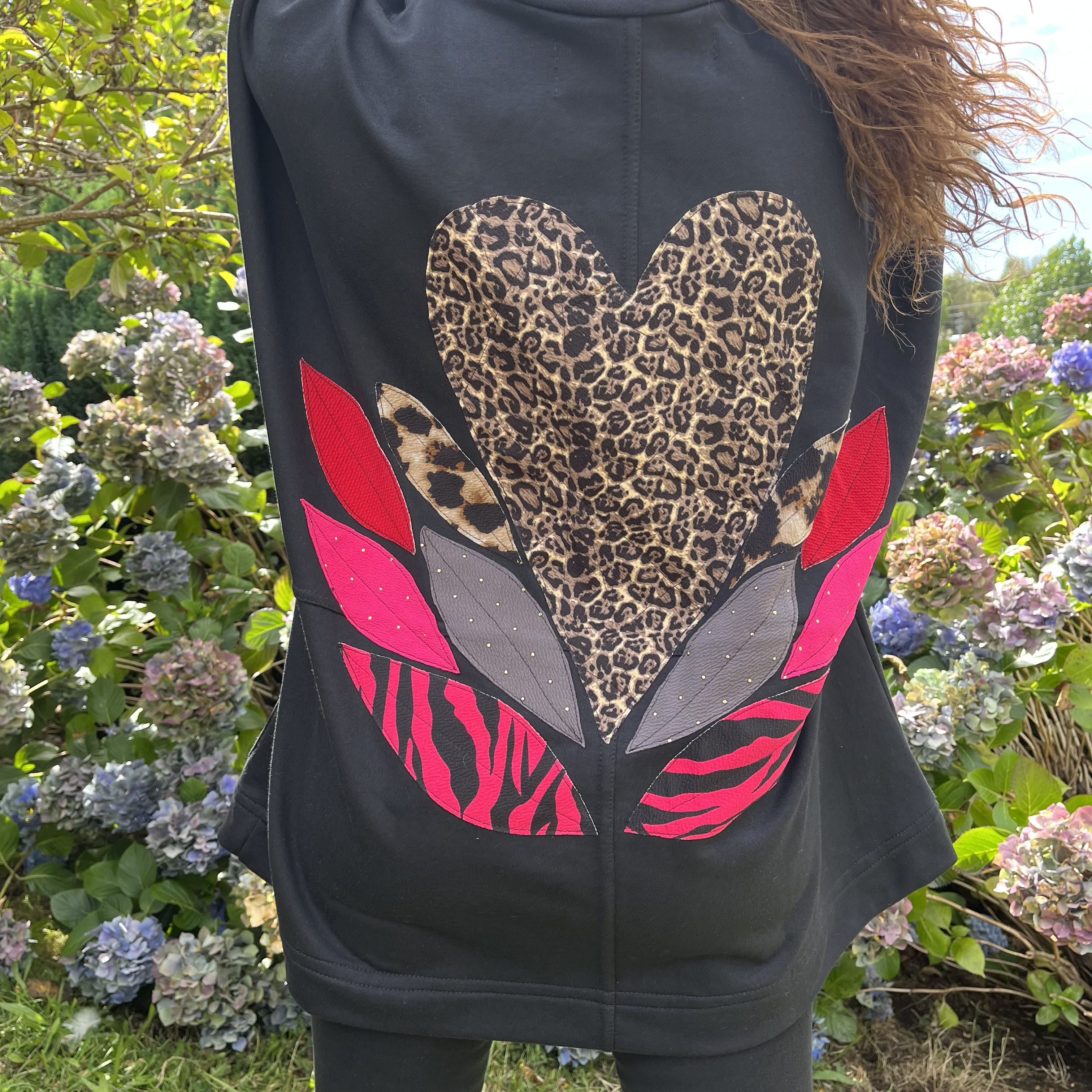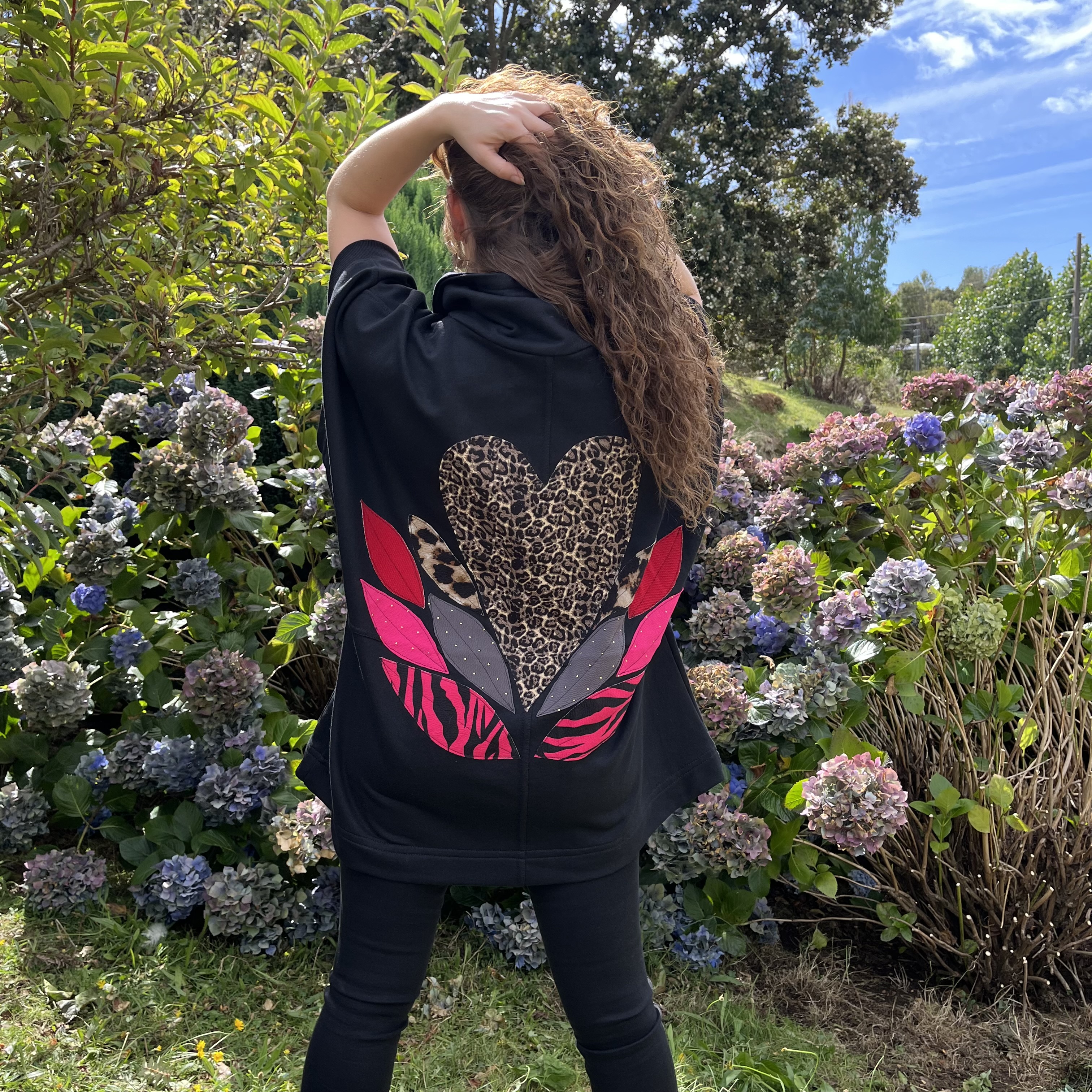Chaqueton Ultravioleta Paty negro corazon leopardo con cierre