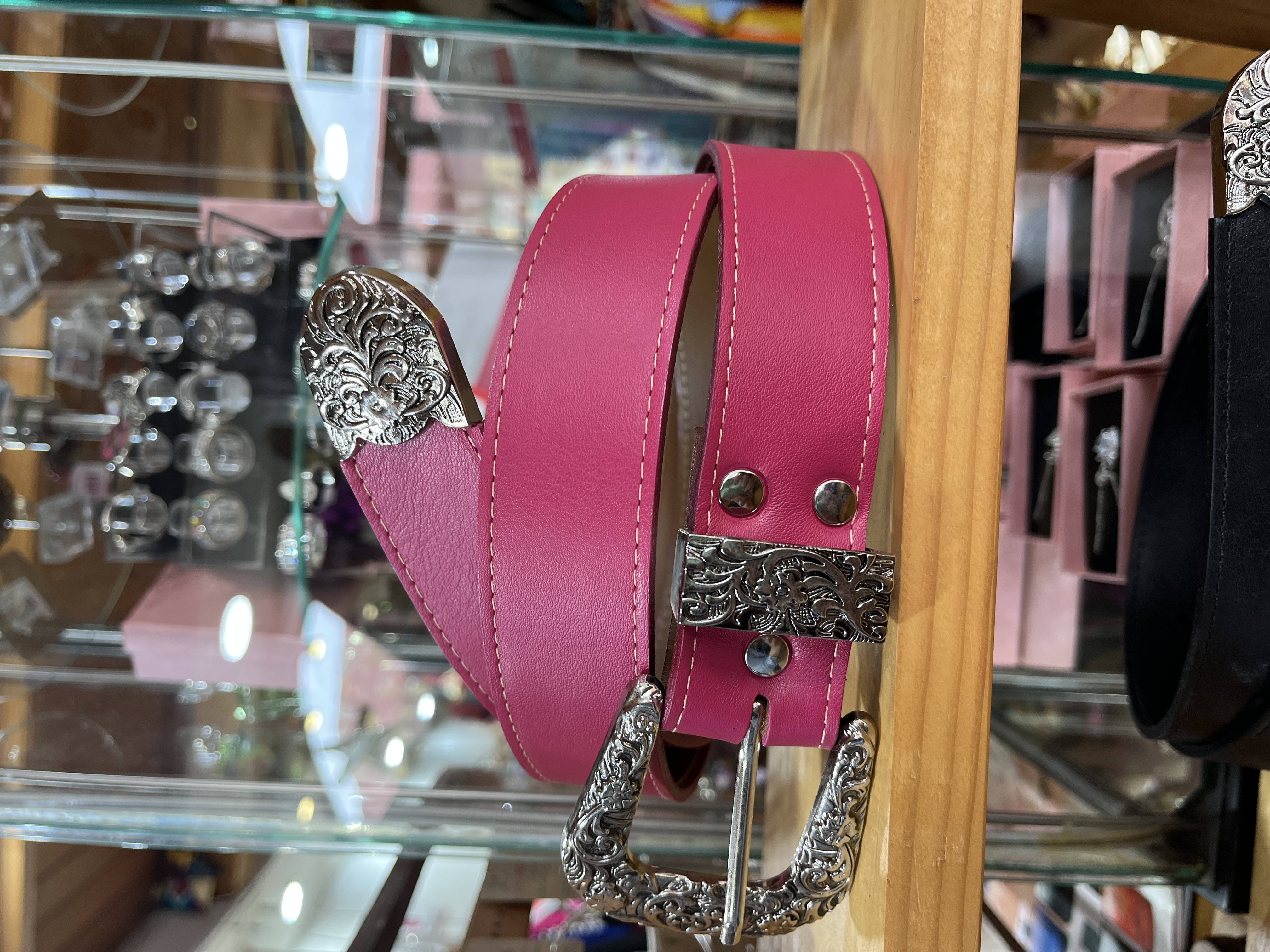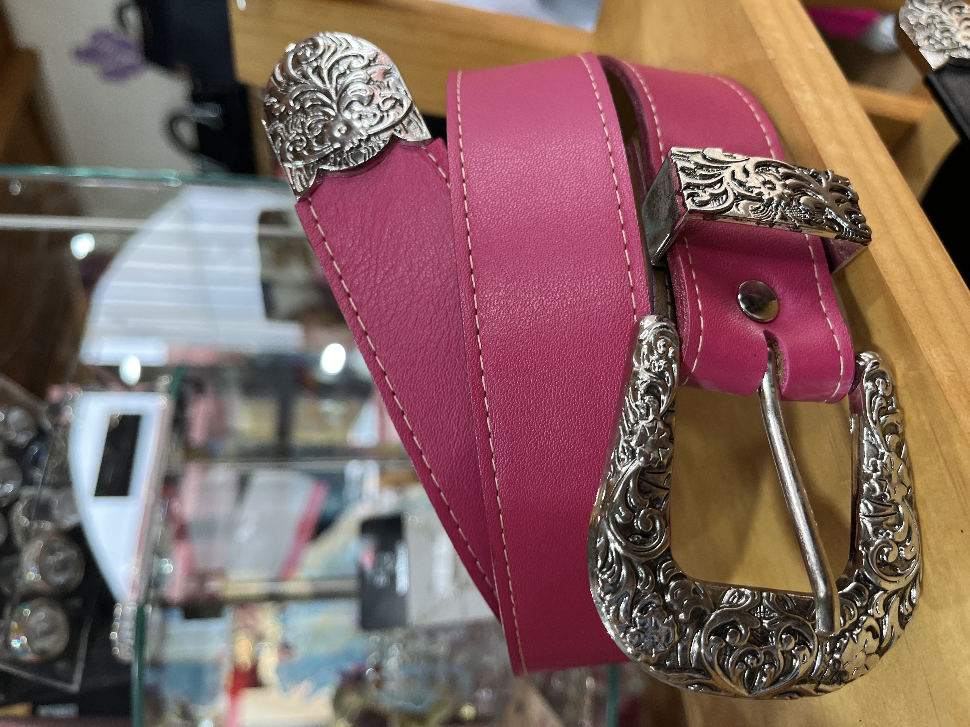 Cinturon cuero fucsia liso 3,5 cms ancho con puntera