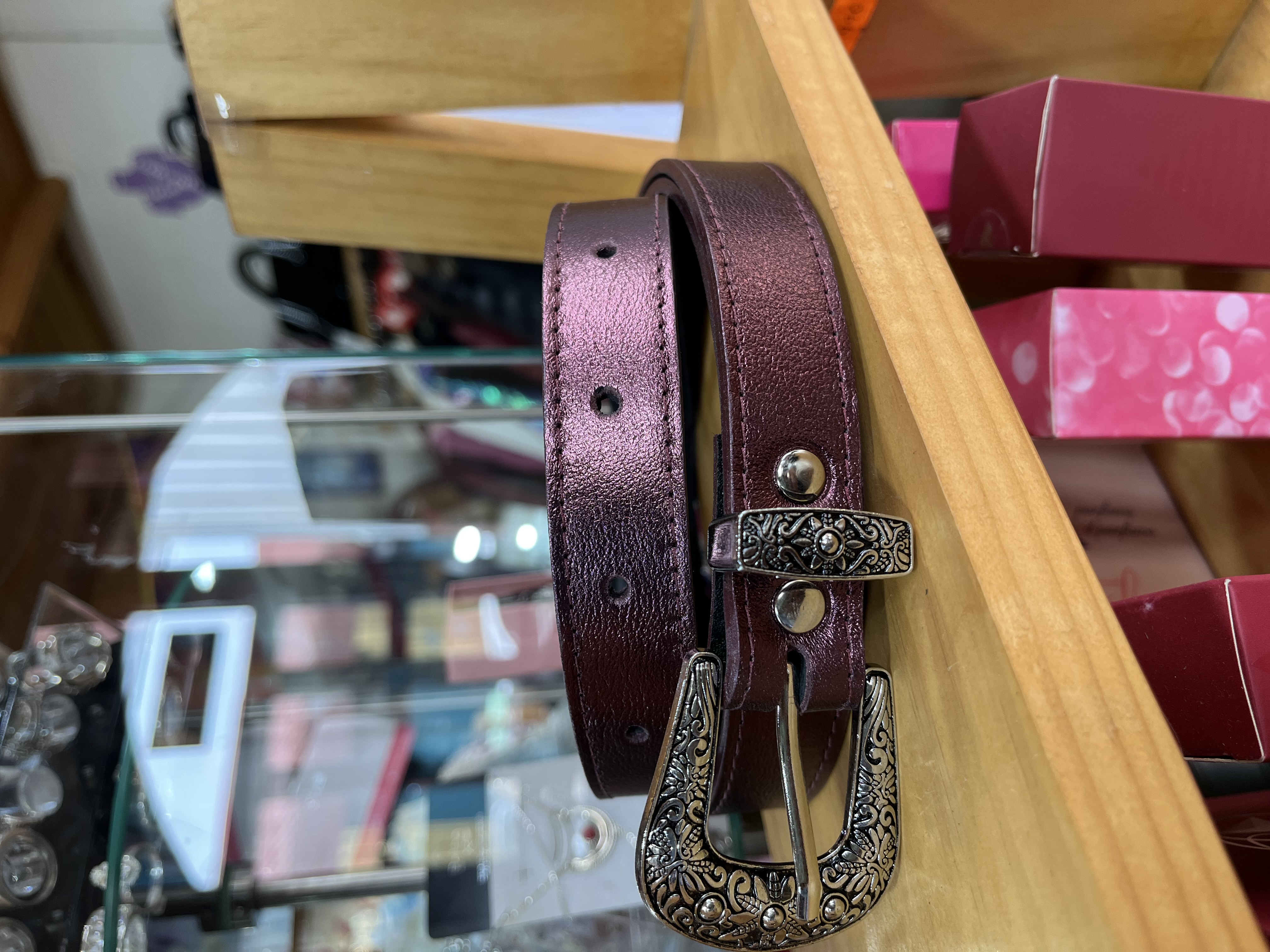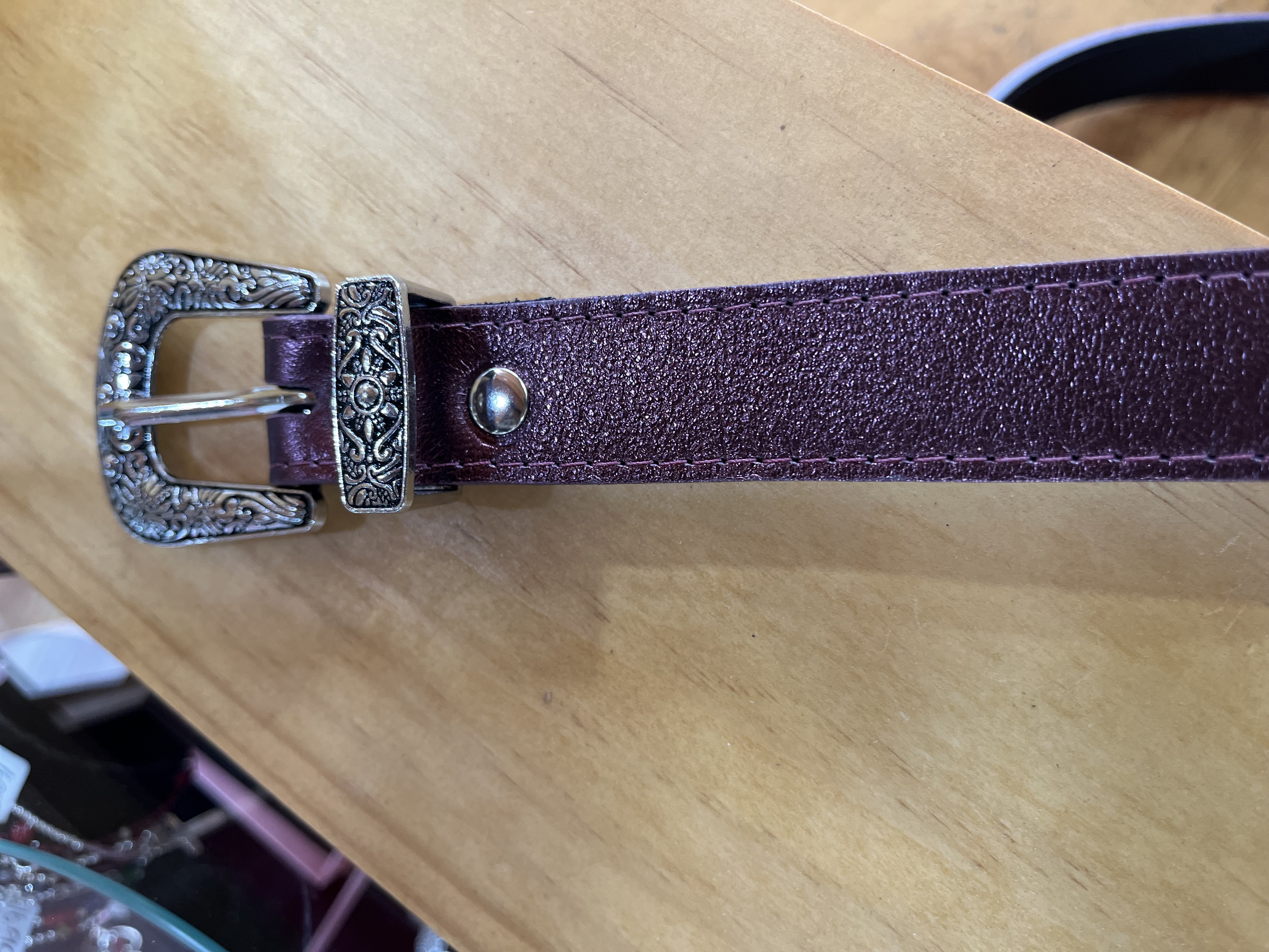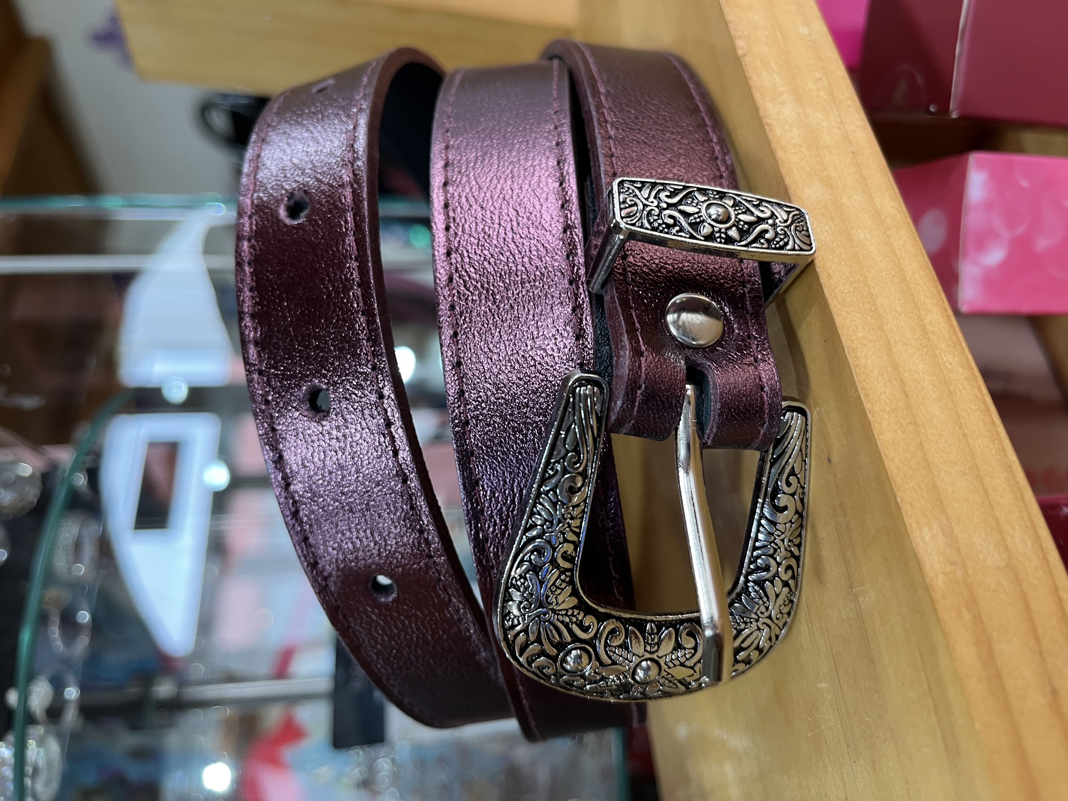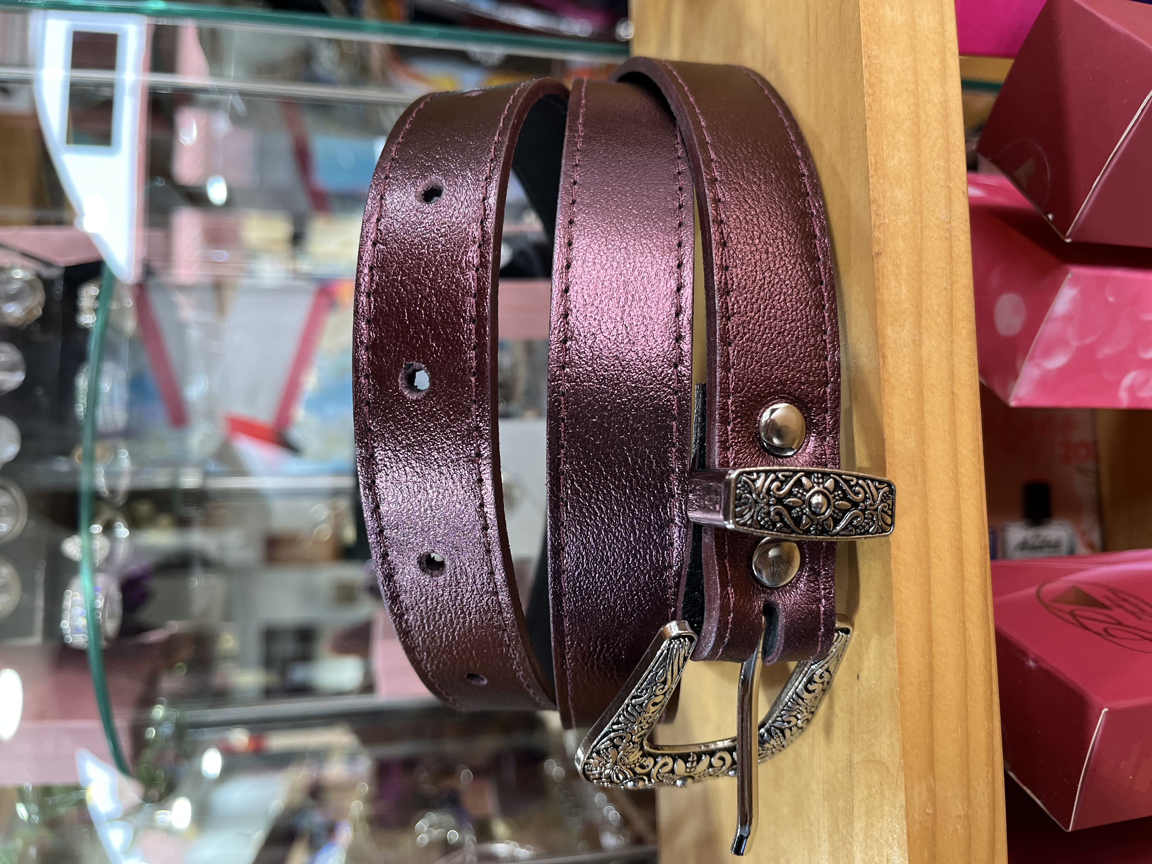 Cinturon cuero morado metalizado 2,5 cms ancho