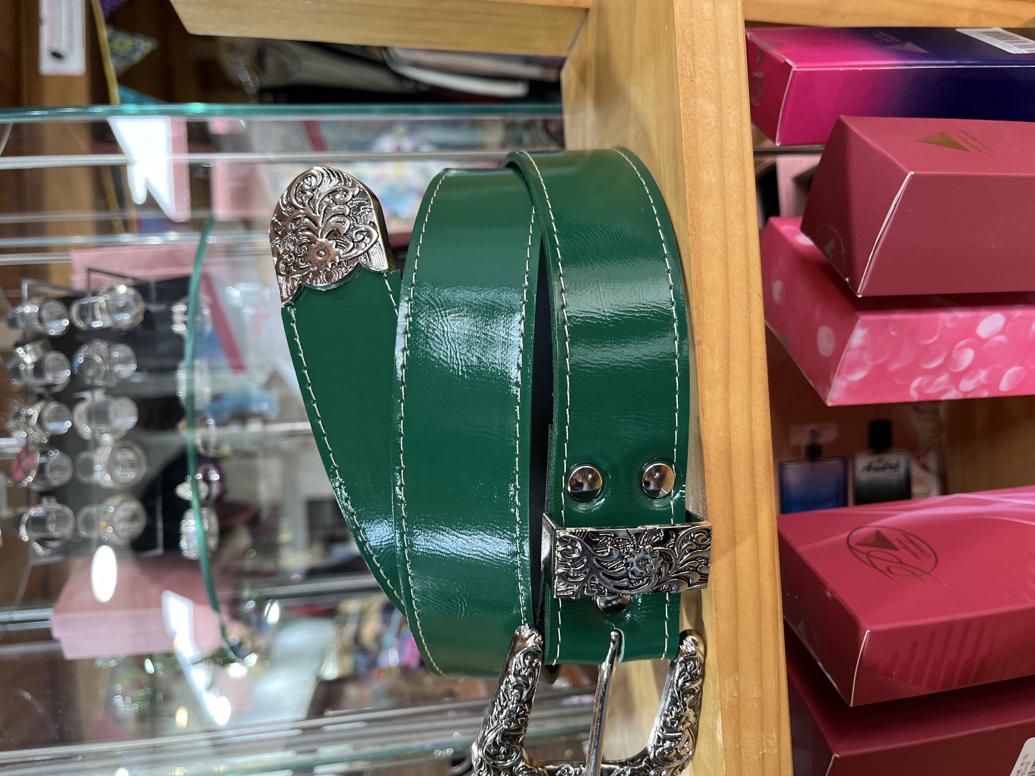 Cinturon cuero verde richatto 3,5 cms ancho con puntera