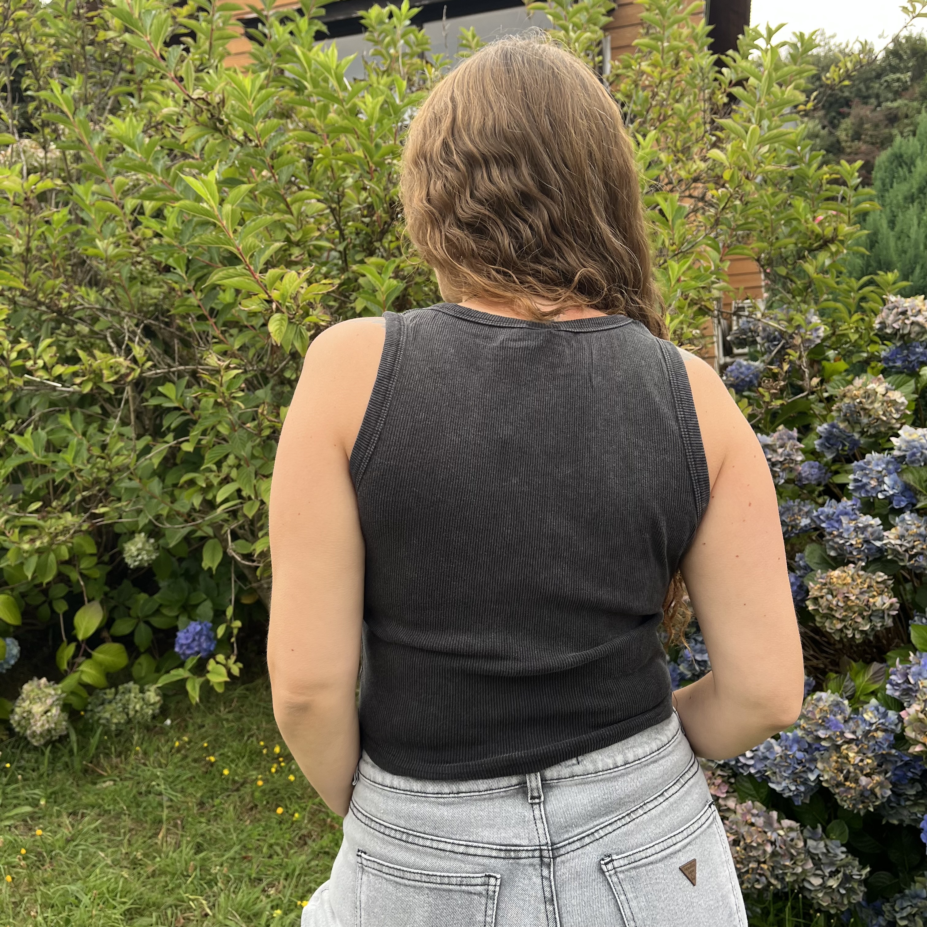 Crop Top algodon rib deslavado negro