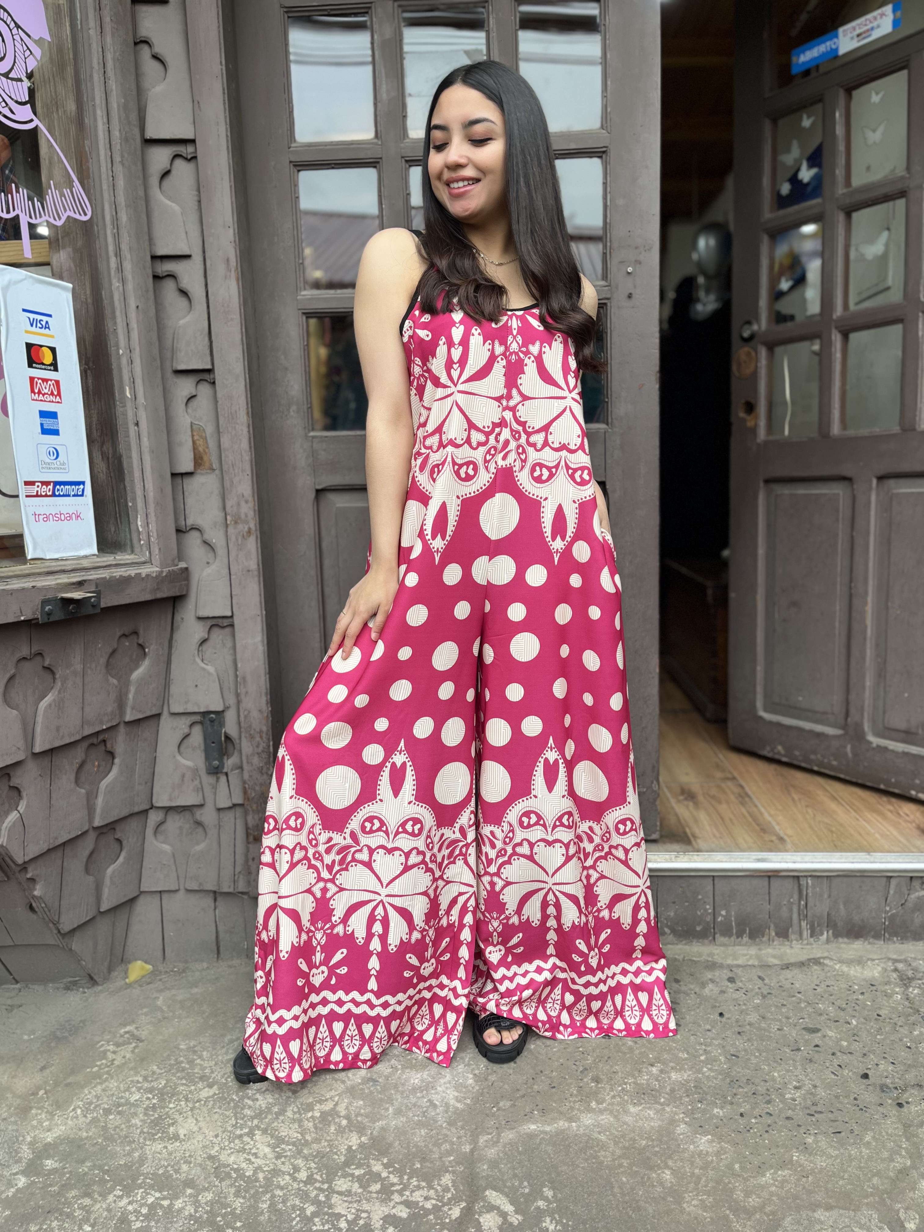 Hermoso enterito con bolsillos , increíble estampado escote V en la espalda