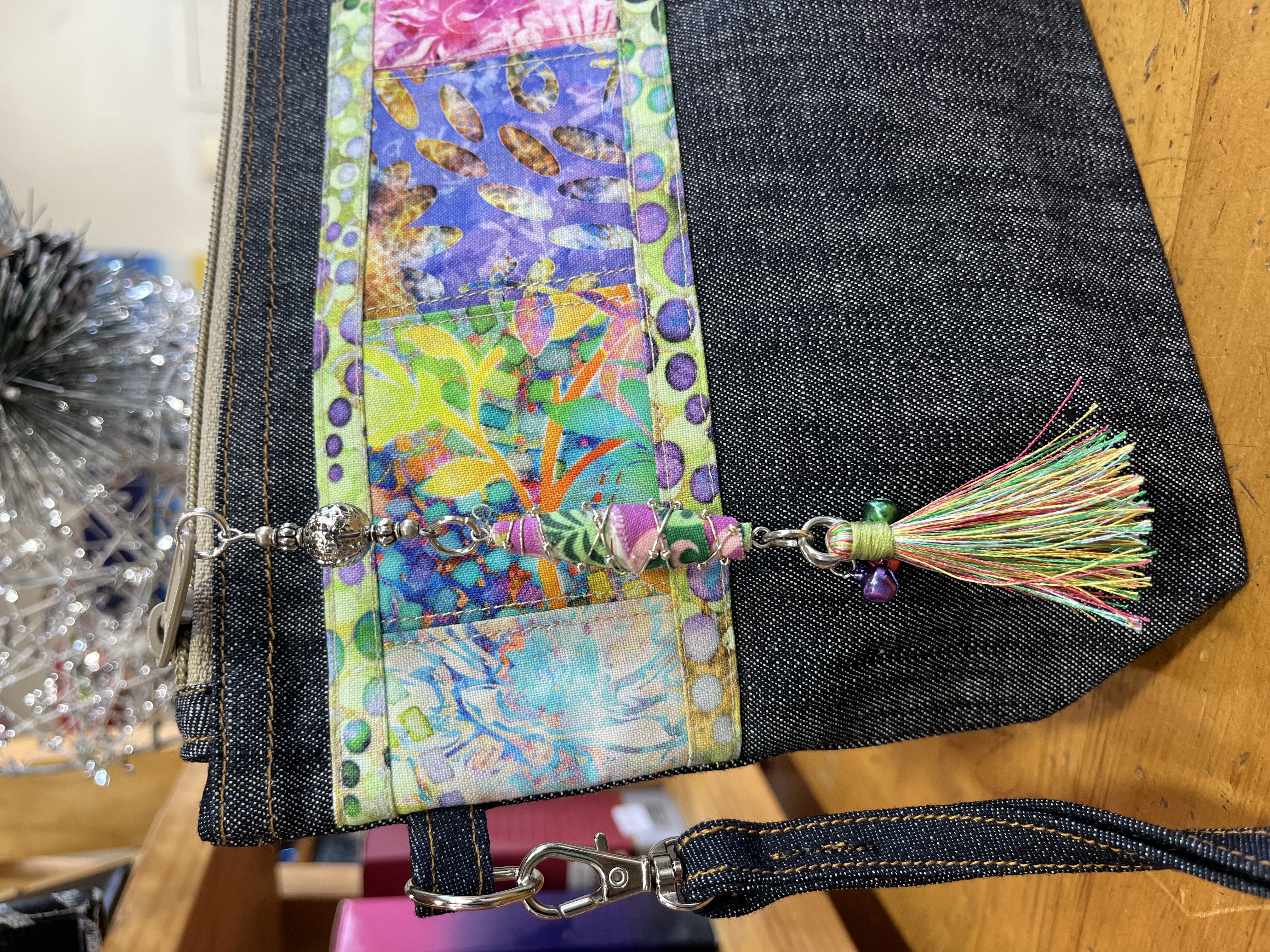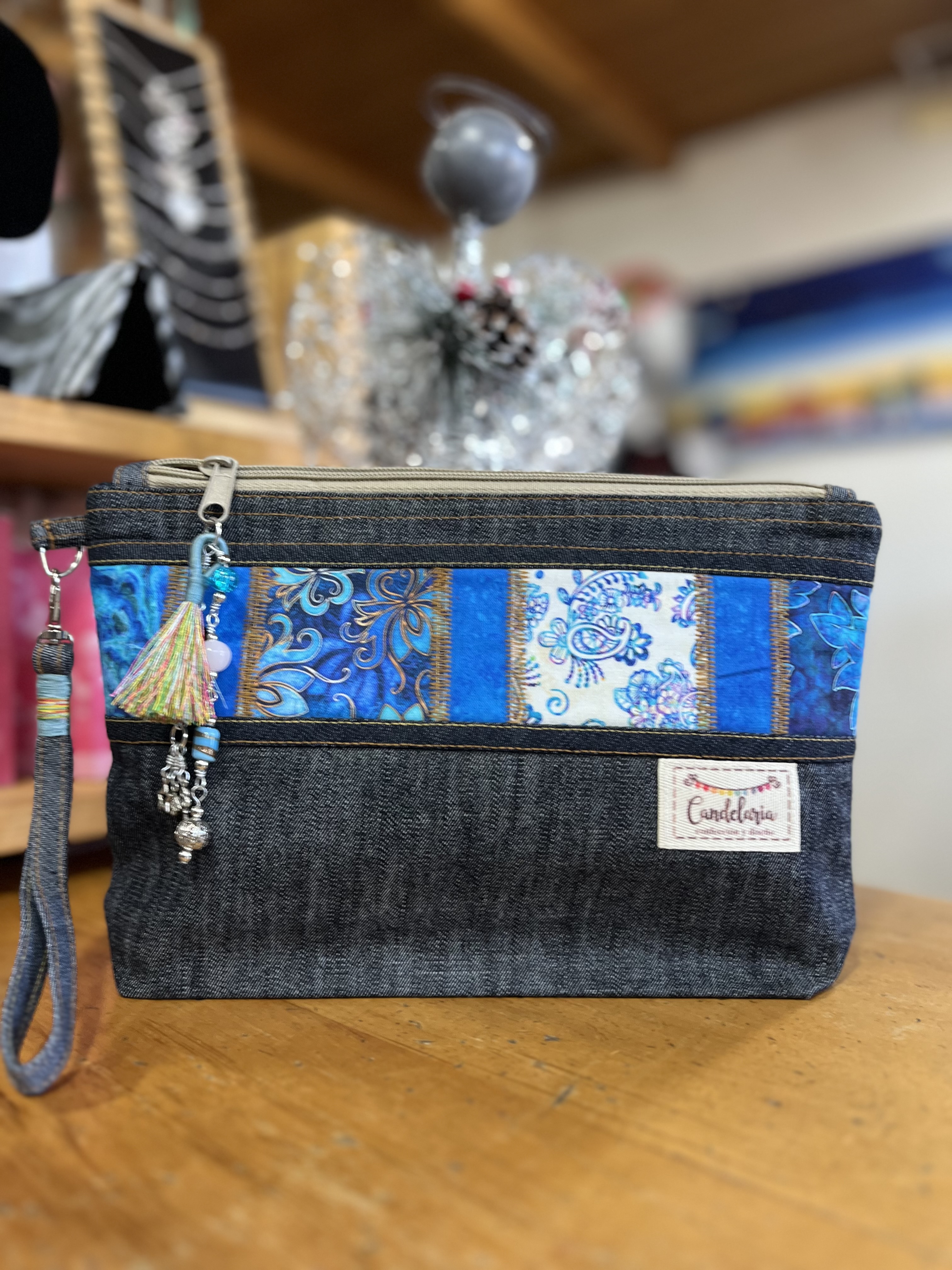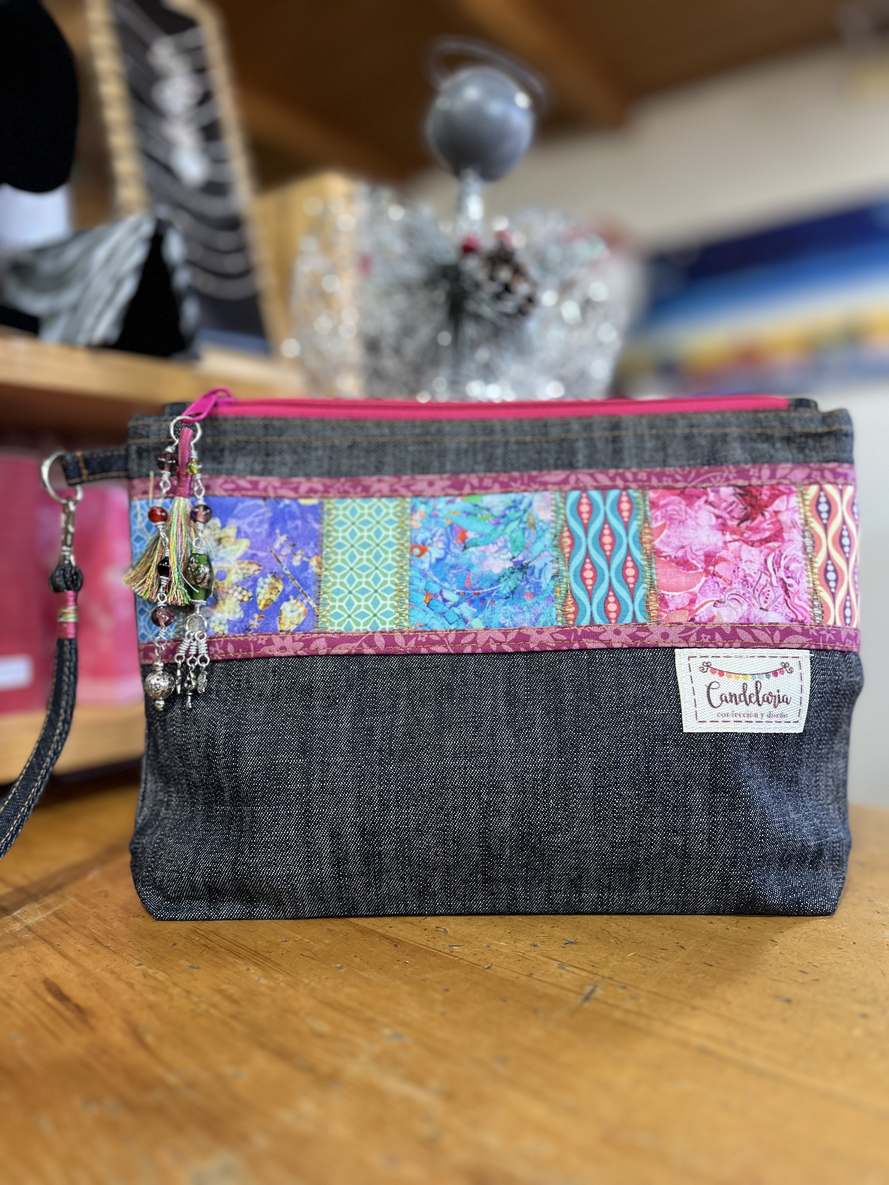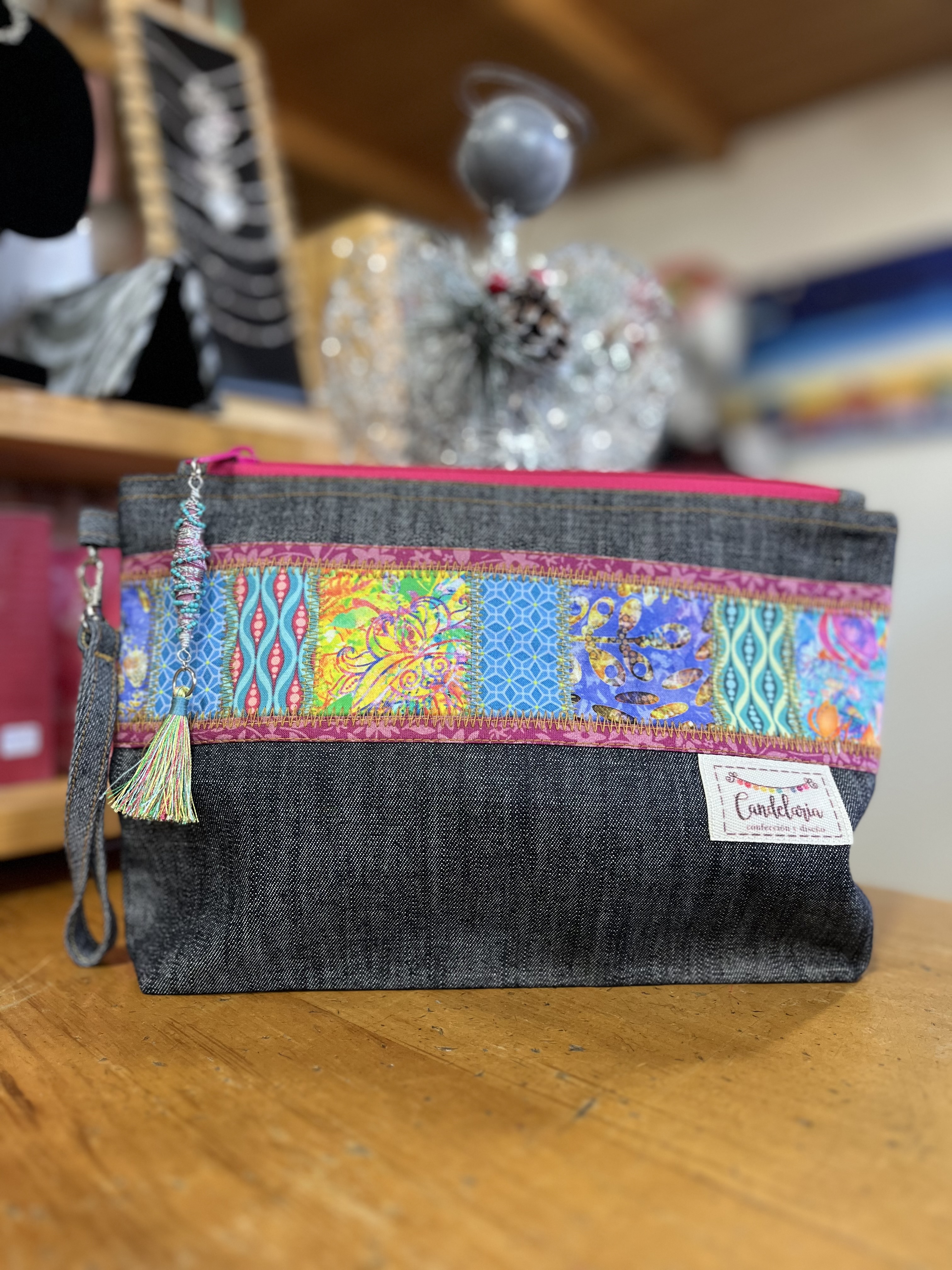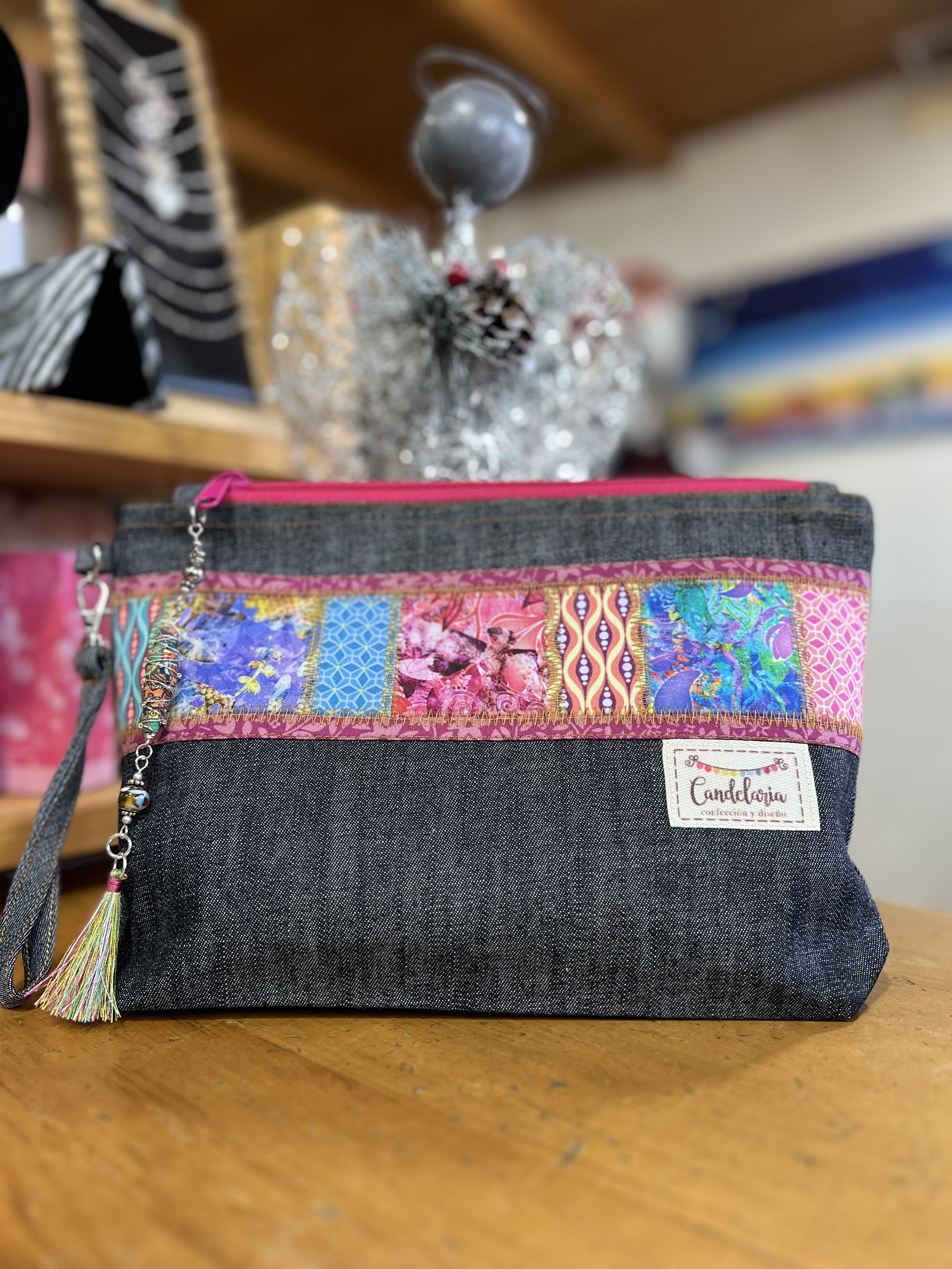 Estuche XL mosaico mezclilla y algodon con asa desmontable