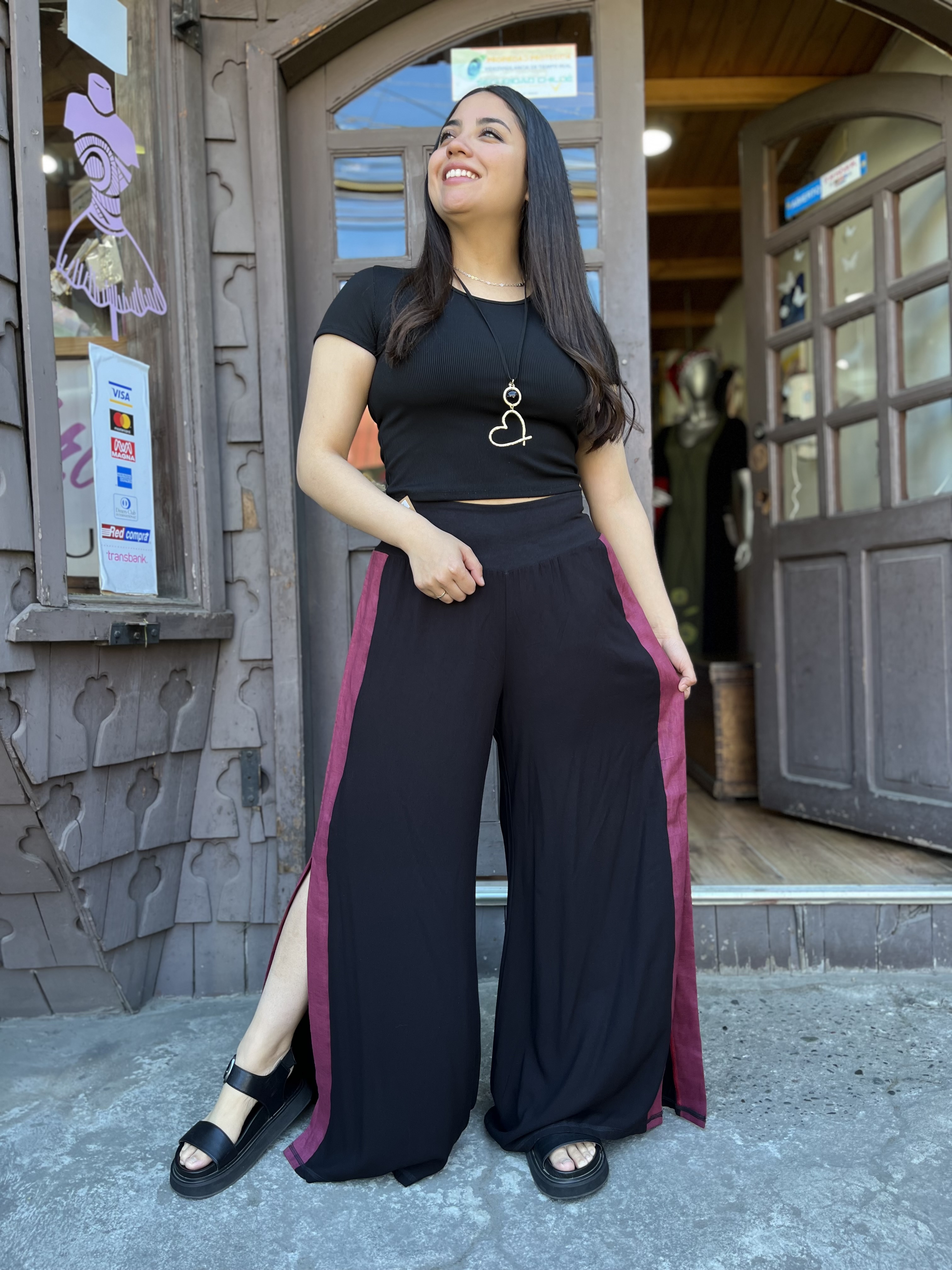 Palazzo kisu Tajali viscosa lino negro burdeo