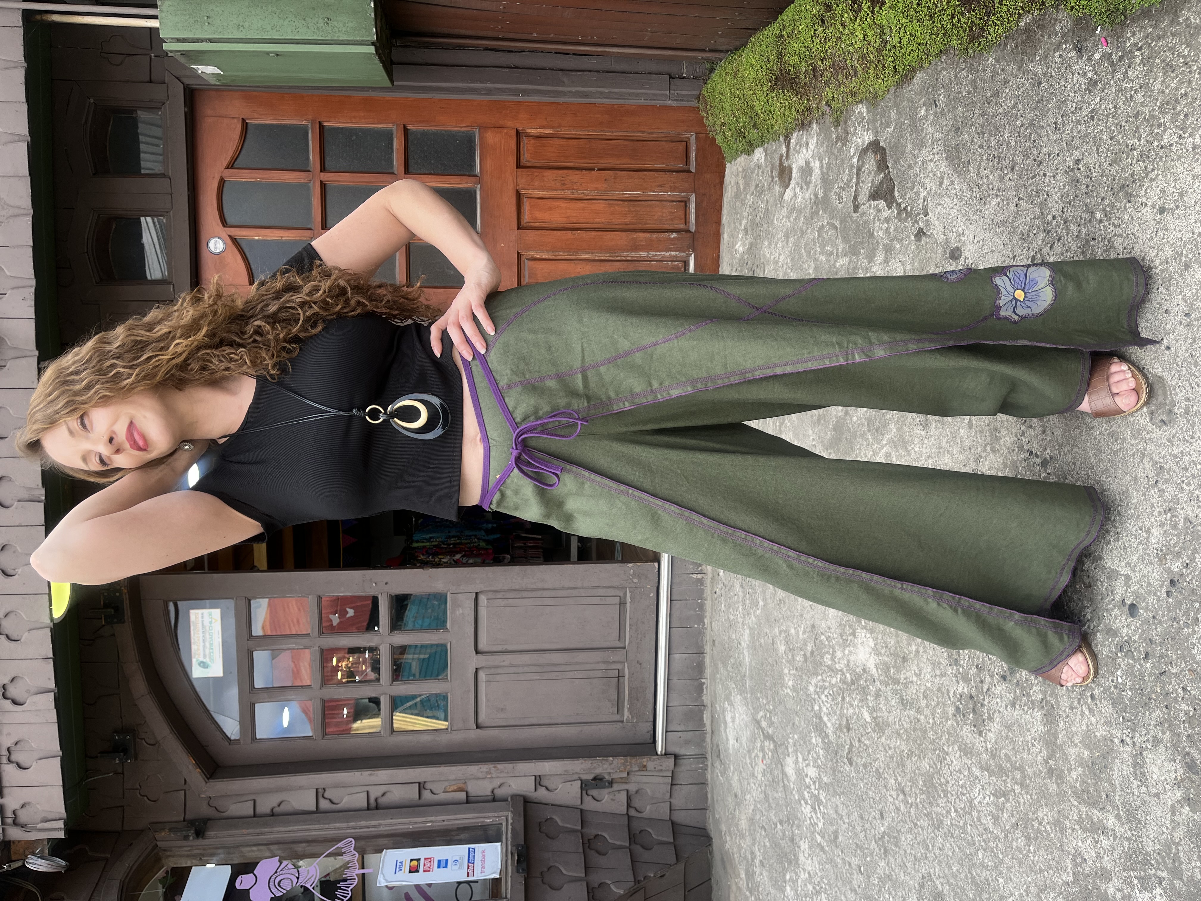 Nuevos palazzos pareo de lino natural, son cómodos, relajados, confortables y versátiles. Se forma cubriendo primero la parte trasera y cruzando adelante con pabilos, luego cubriendo la parte de adelante abrochando atrás, se adapta perfectamente a tu cuerpo, ajustándolo a tu talla.