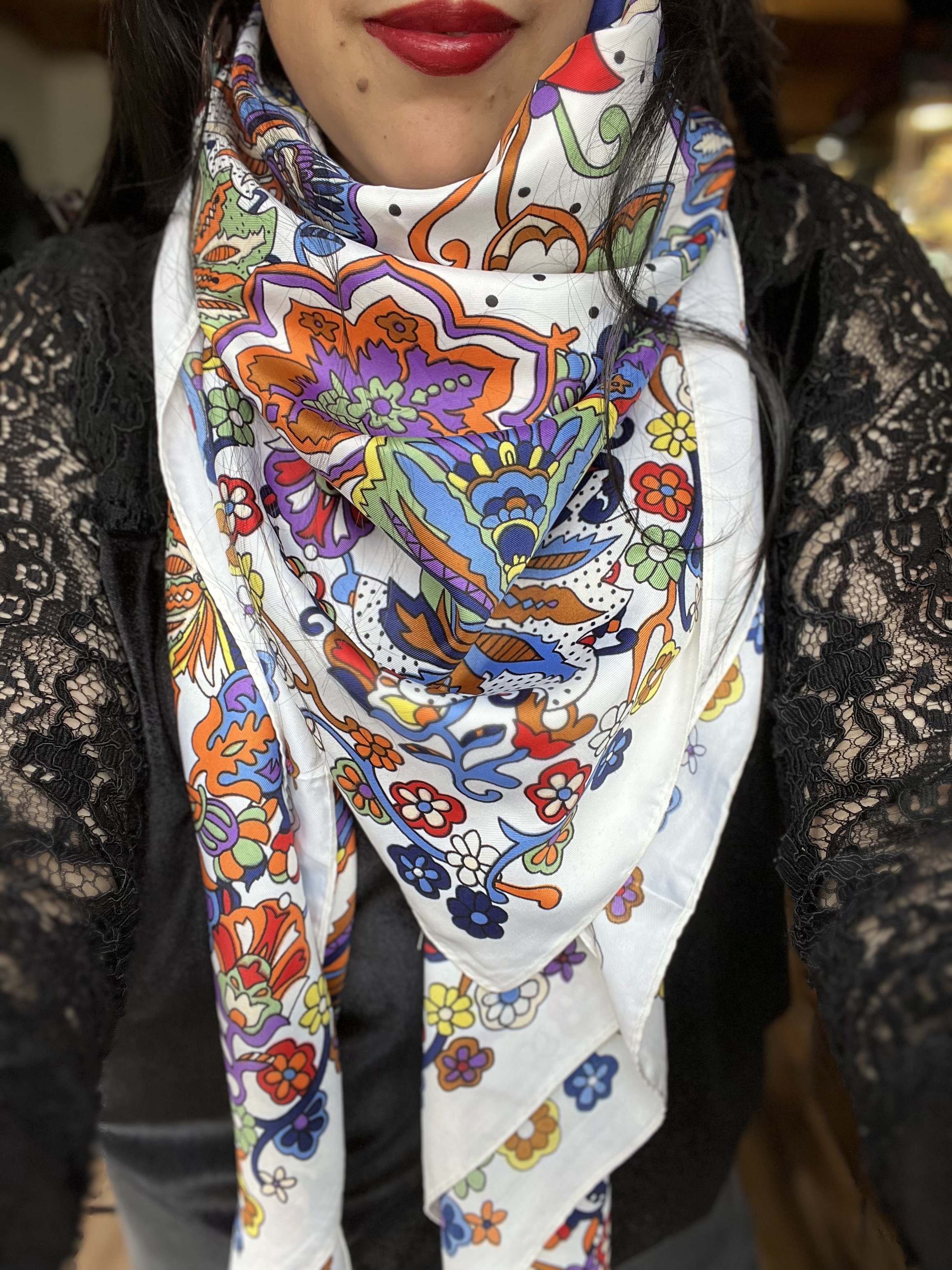 Nueva colección de maxi pañuelos de seda, increíbles diseños llenos de colores, exquisita textura, son livianos, ligeros y capaces de levantar cualquier outfit.