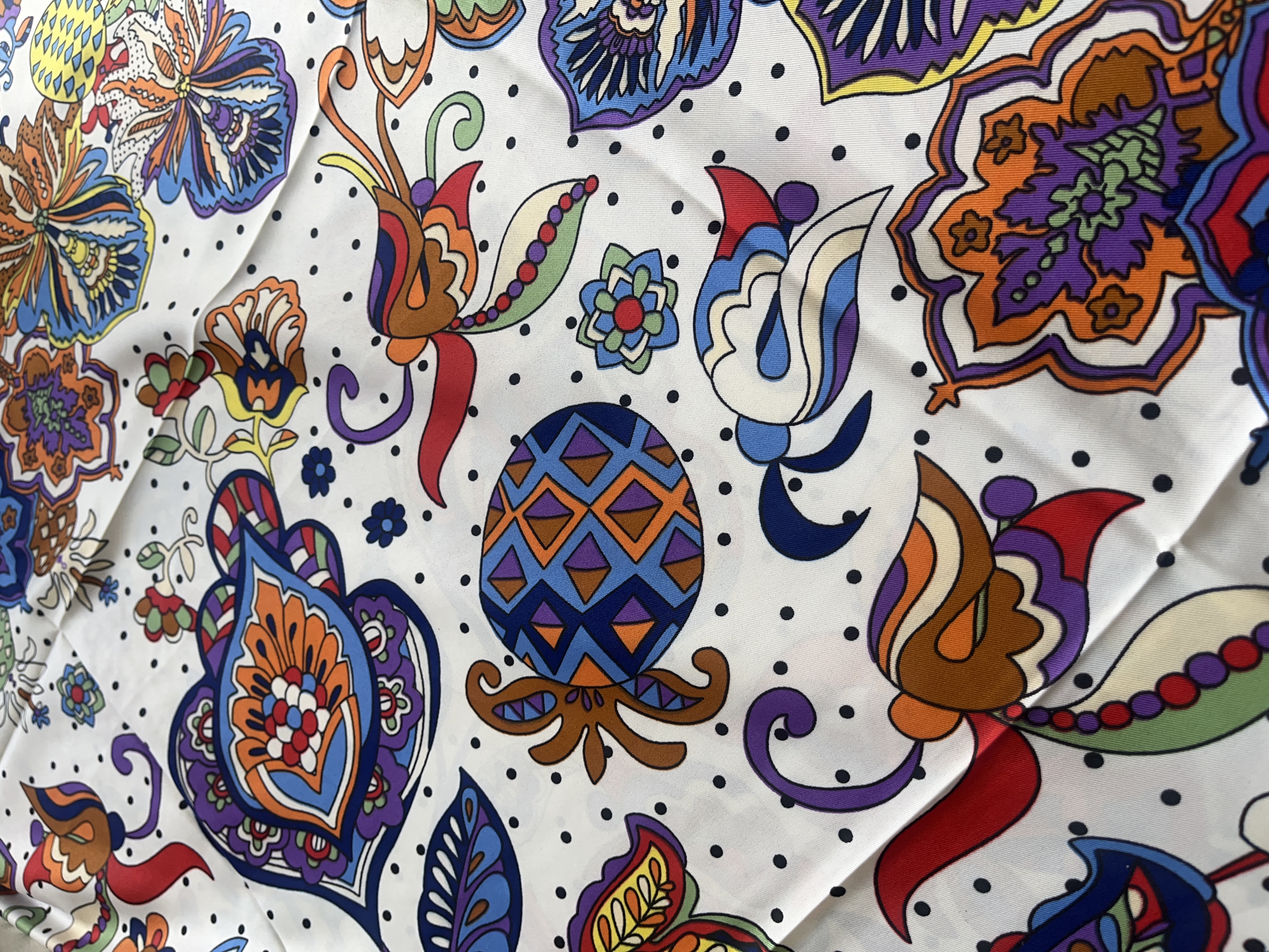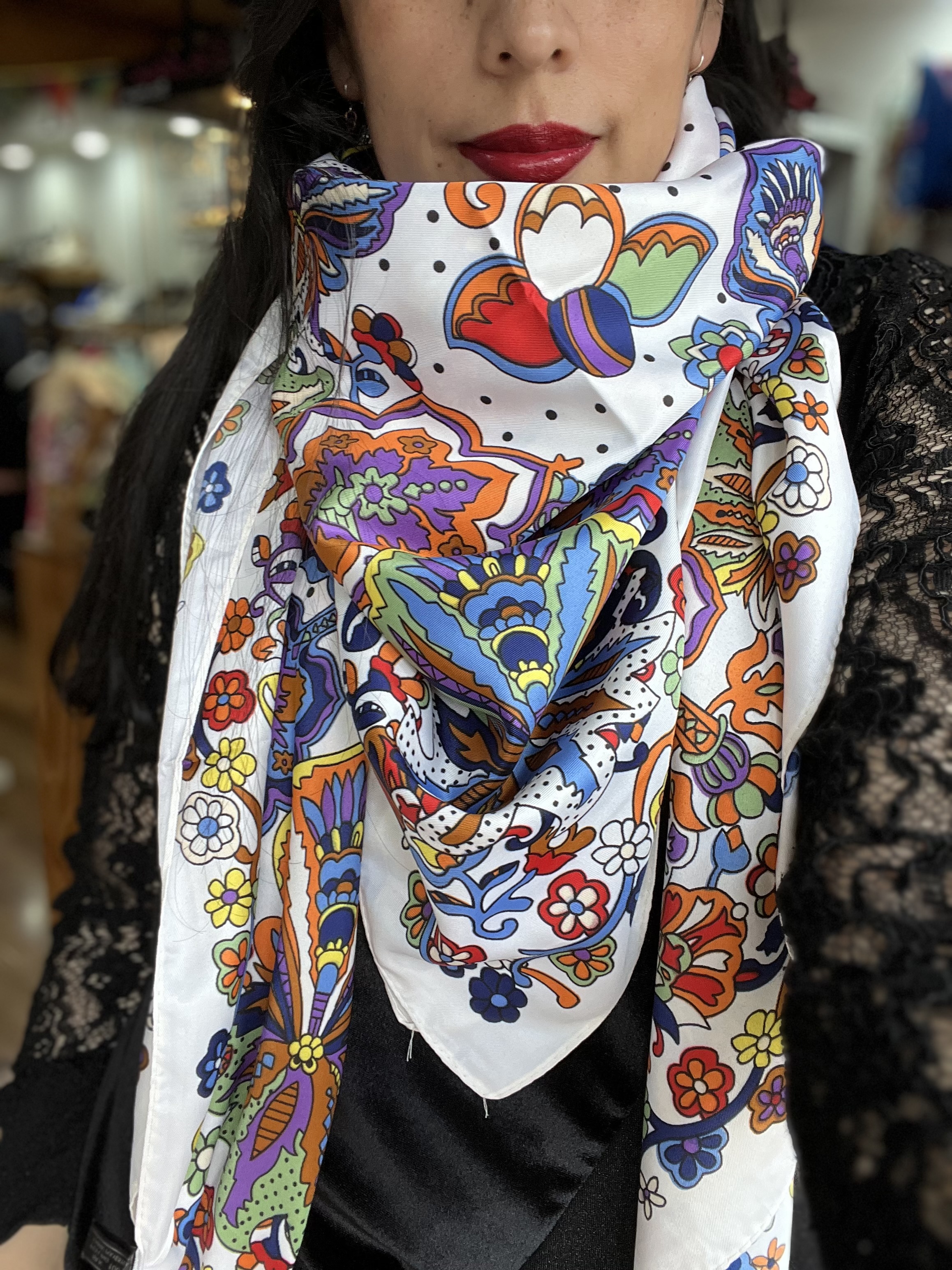 Pañuelo seda 130*130 cms blanco diseño multicolor