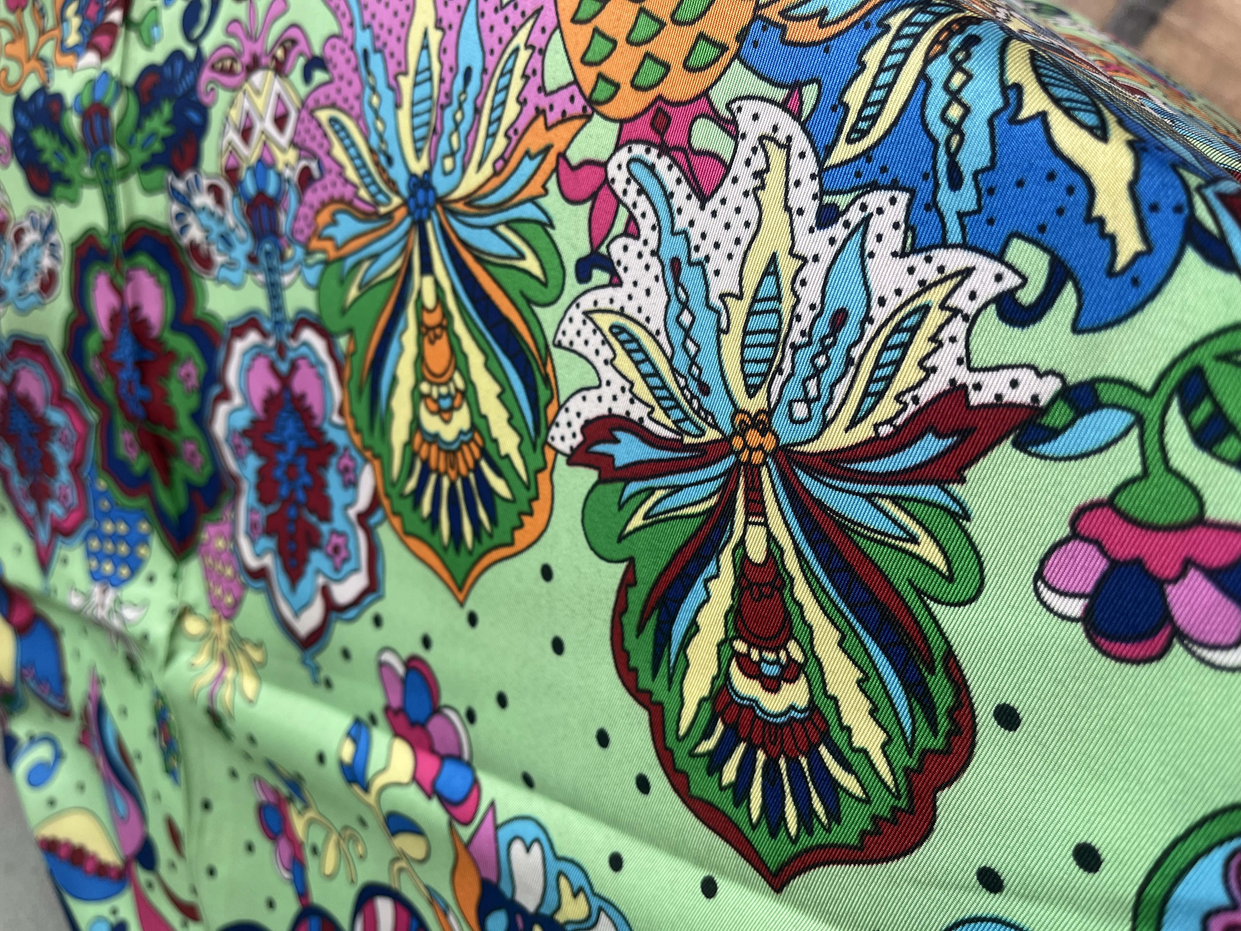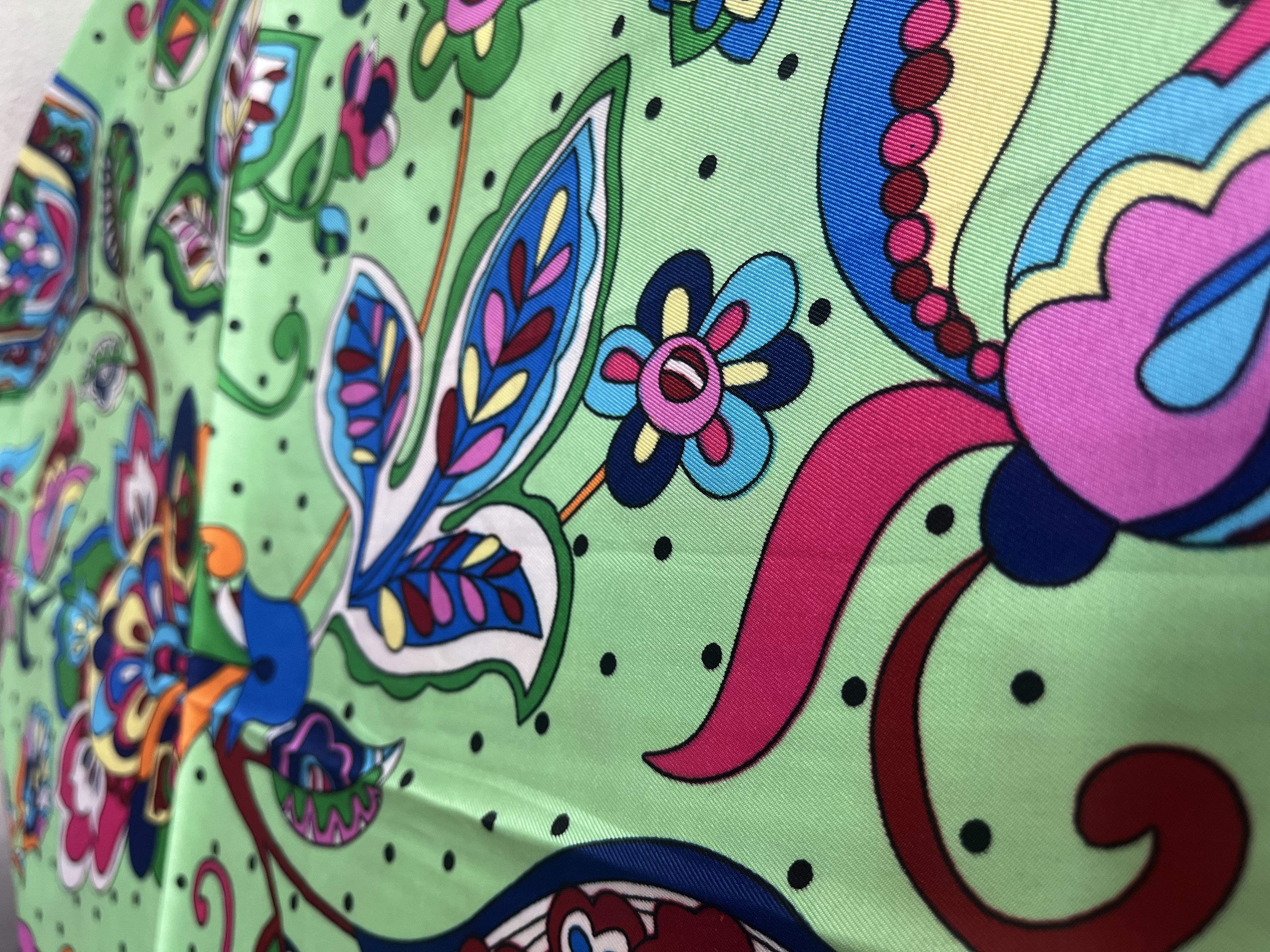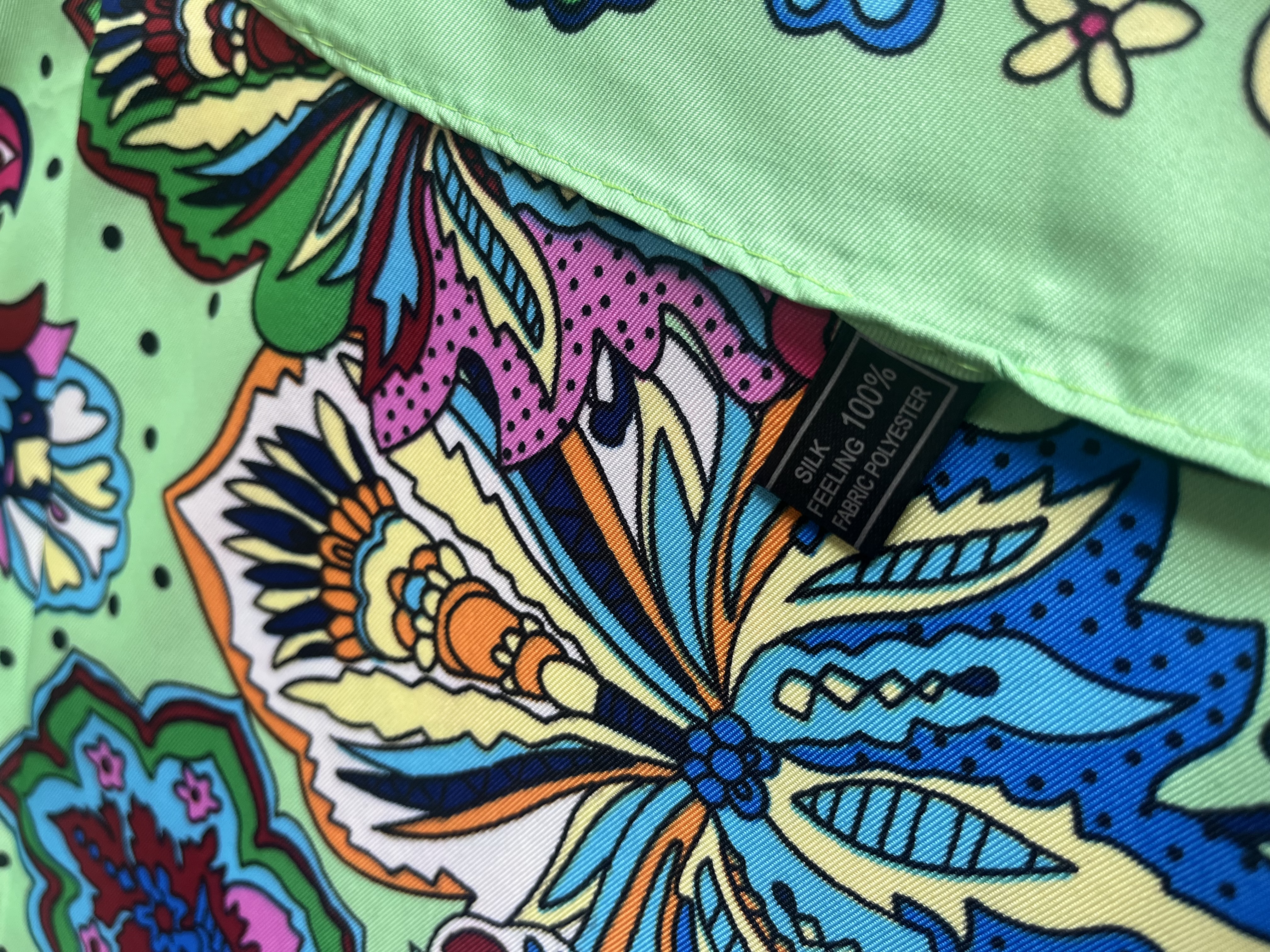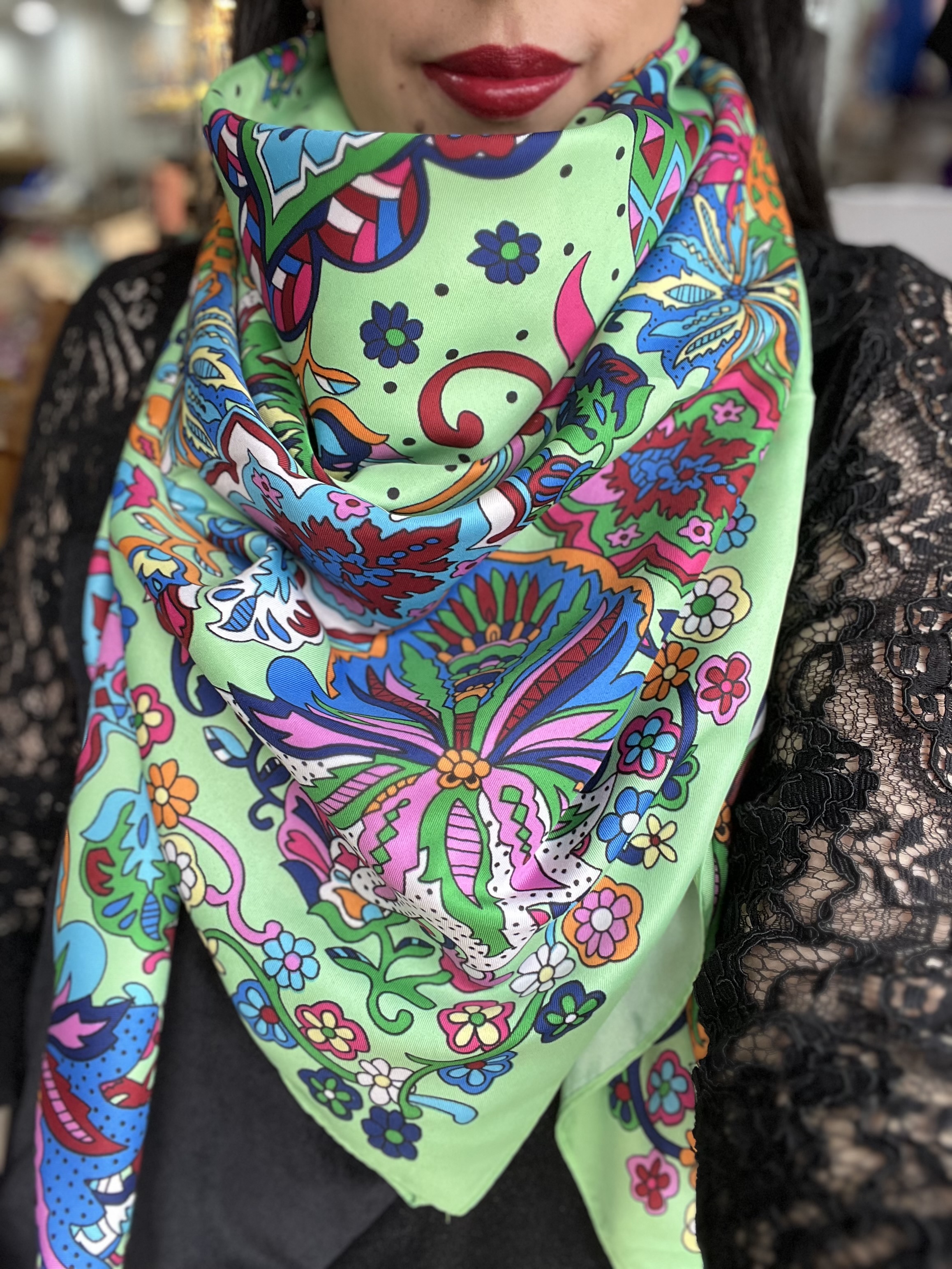 Pañuelo seda 130*130 cms verde diseño multicolor