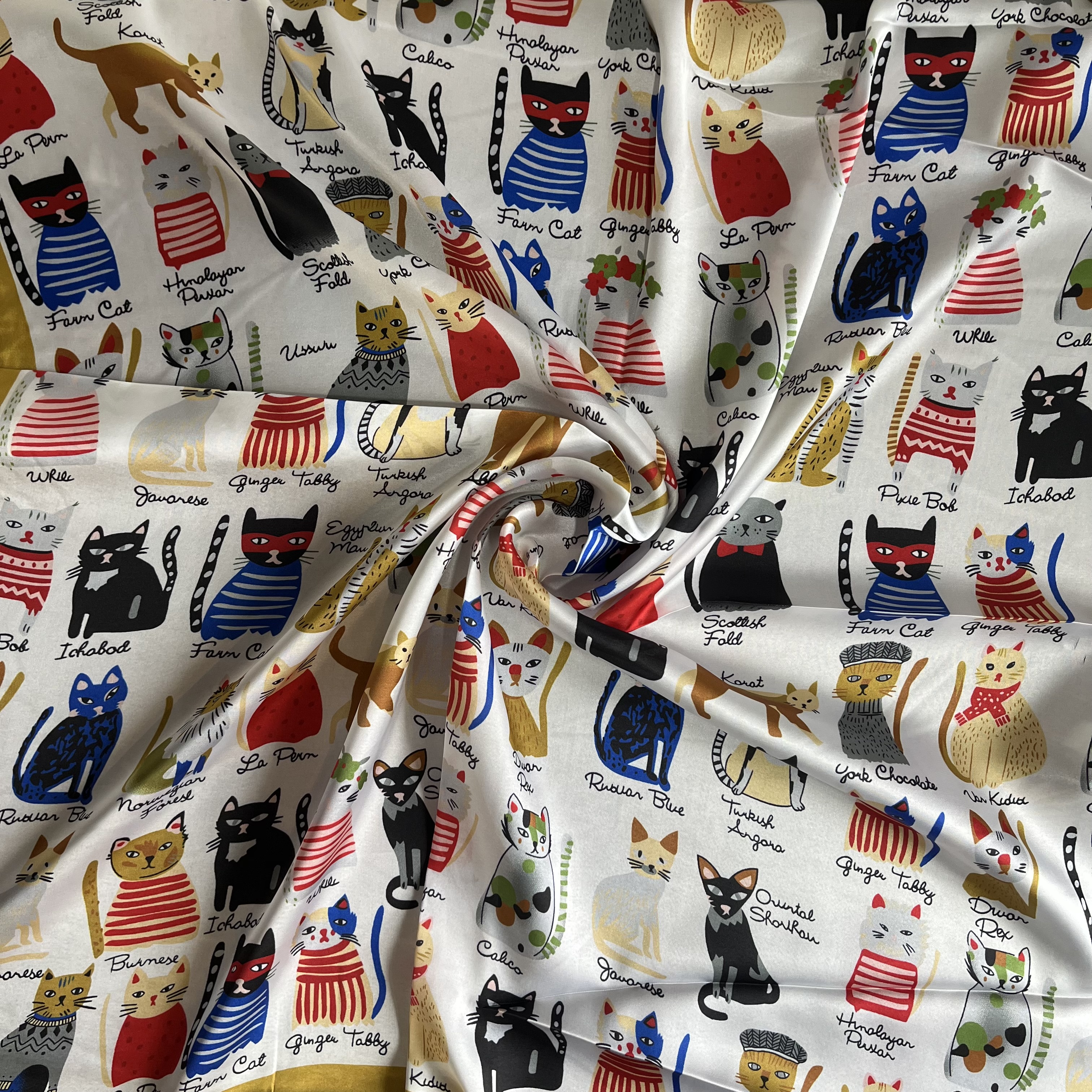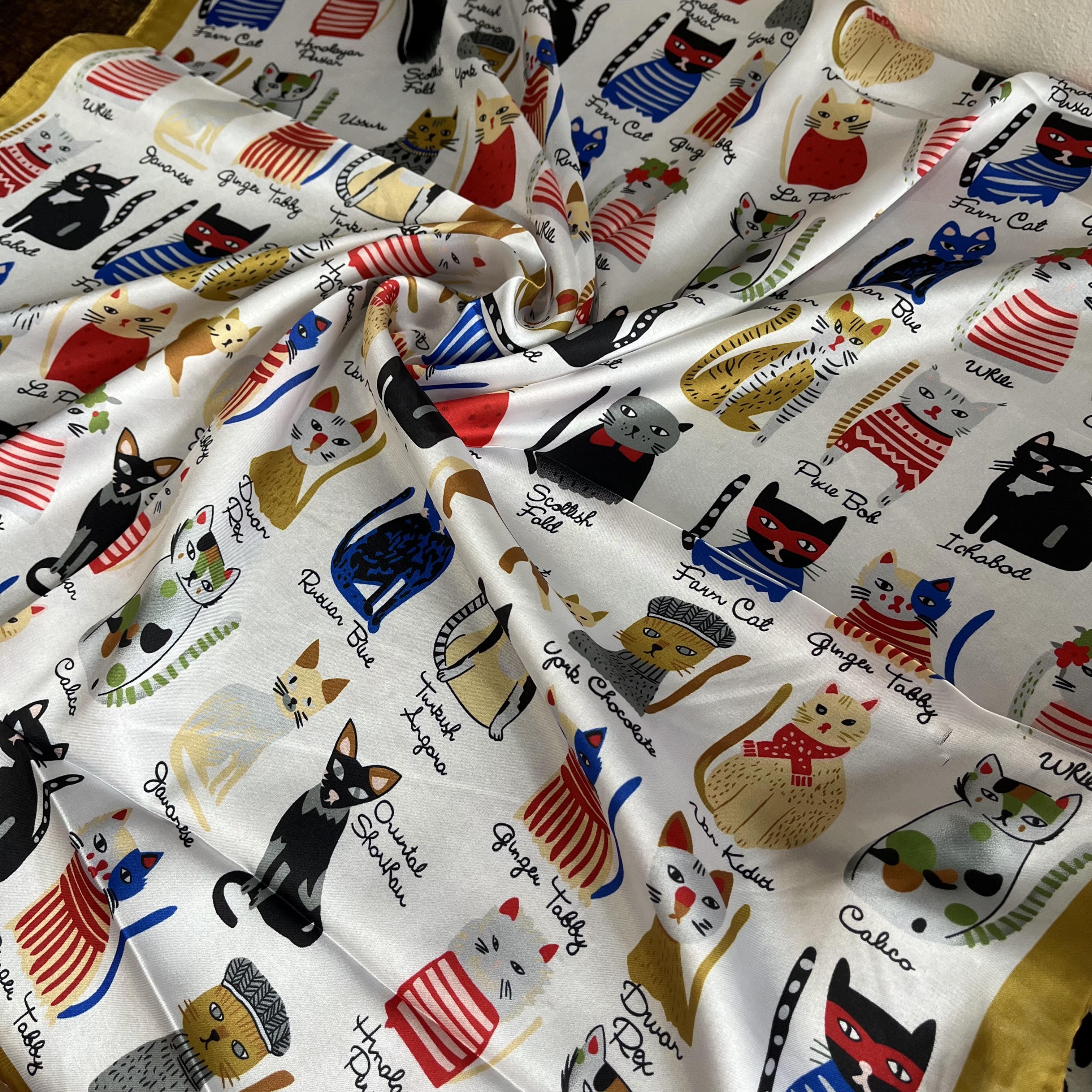 Pañuelo seda 70*70 cms gatitos artistas borde amarillo