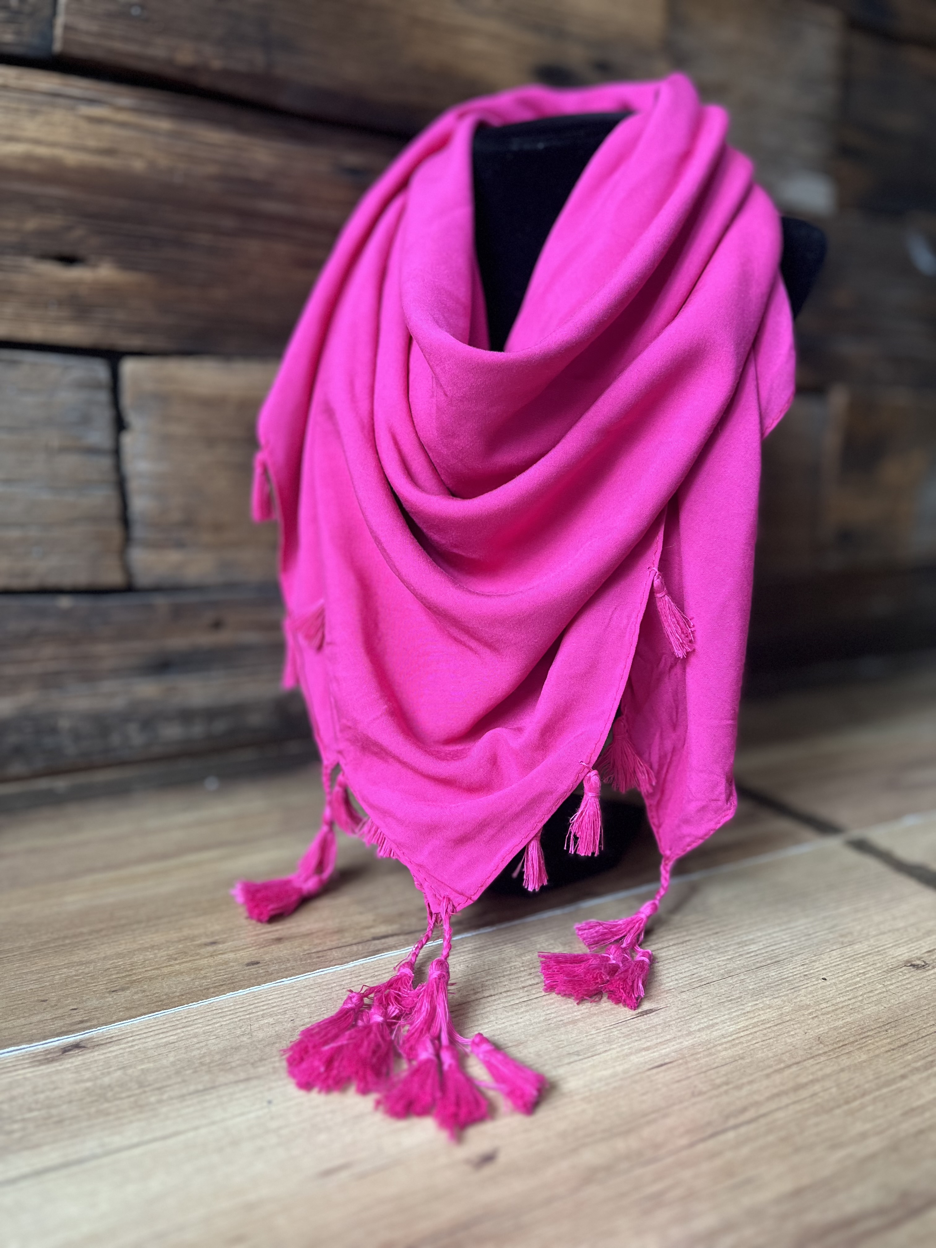 Pañuelo viscosa 90*90 cms fucsia borlas