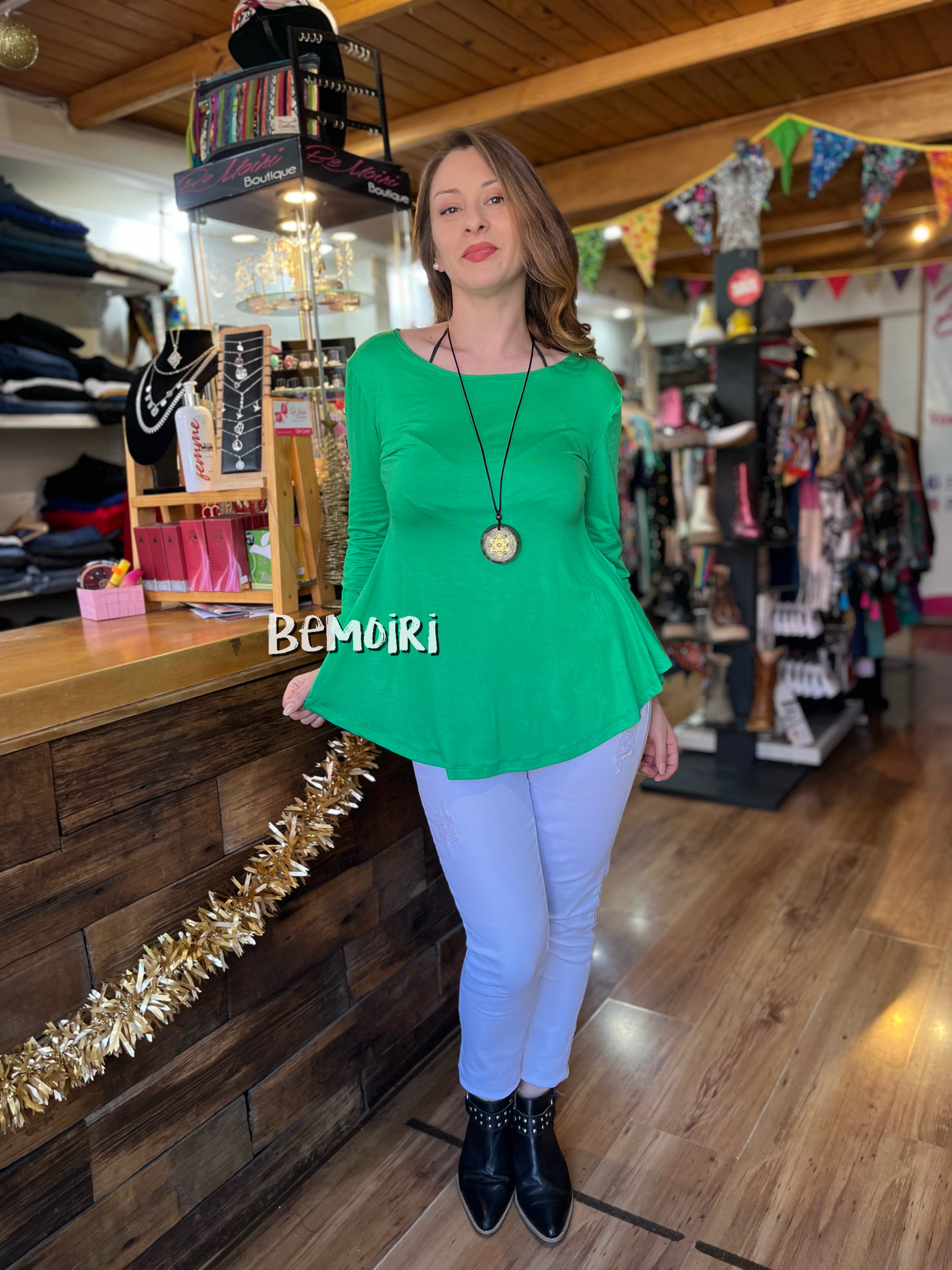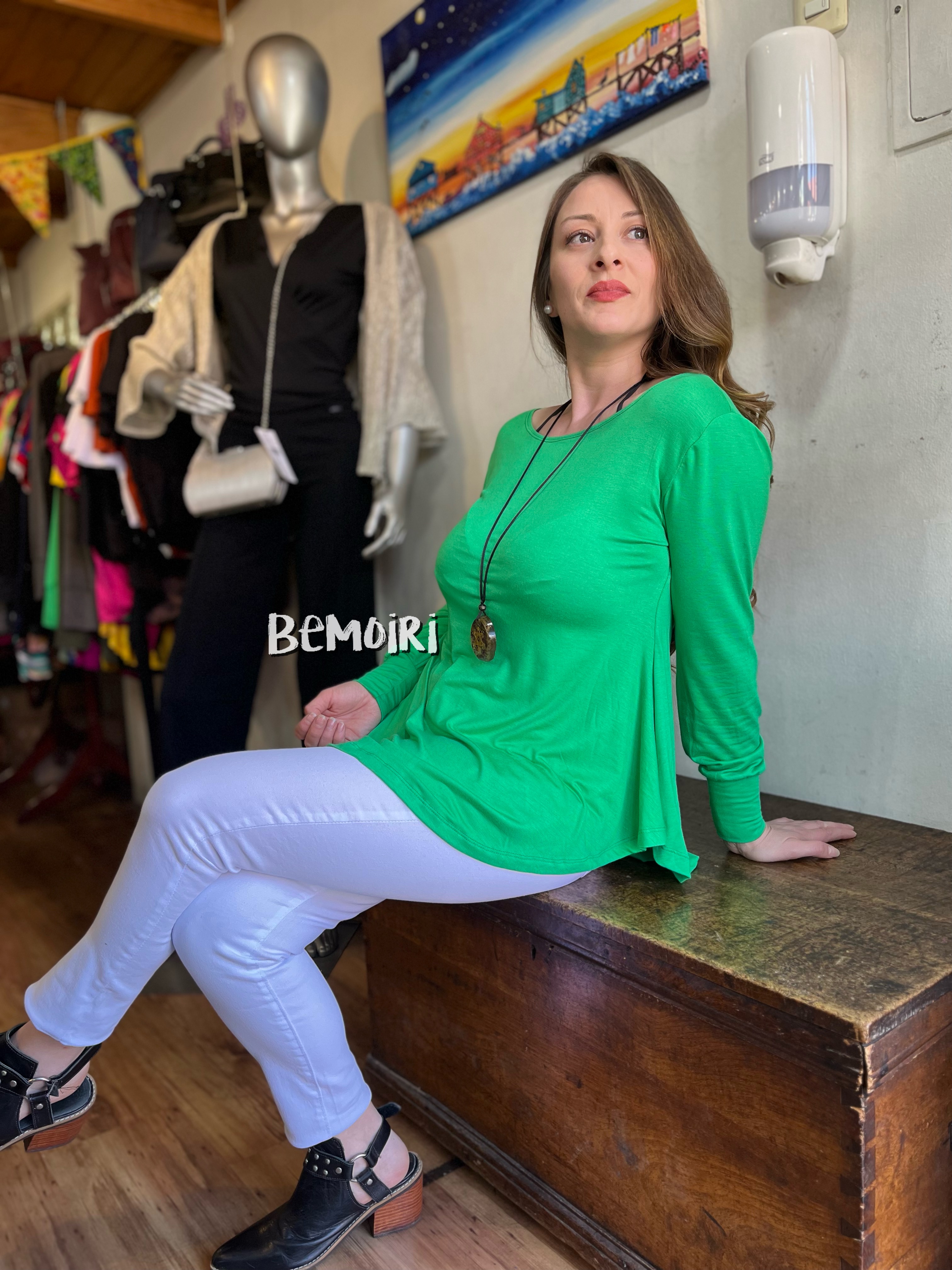Polera Ana verde modal algod贸n