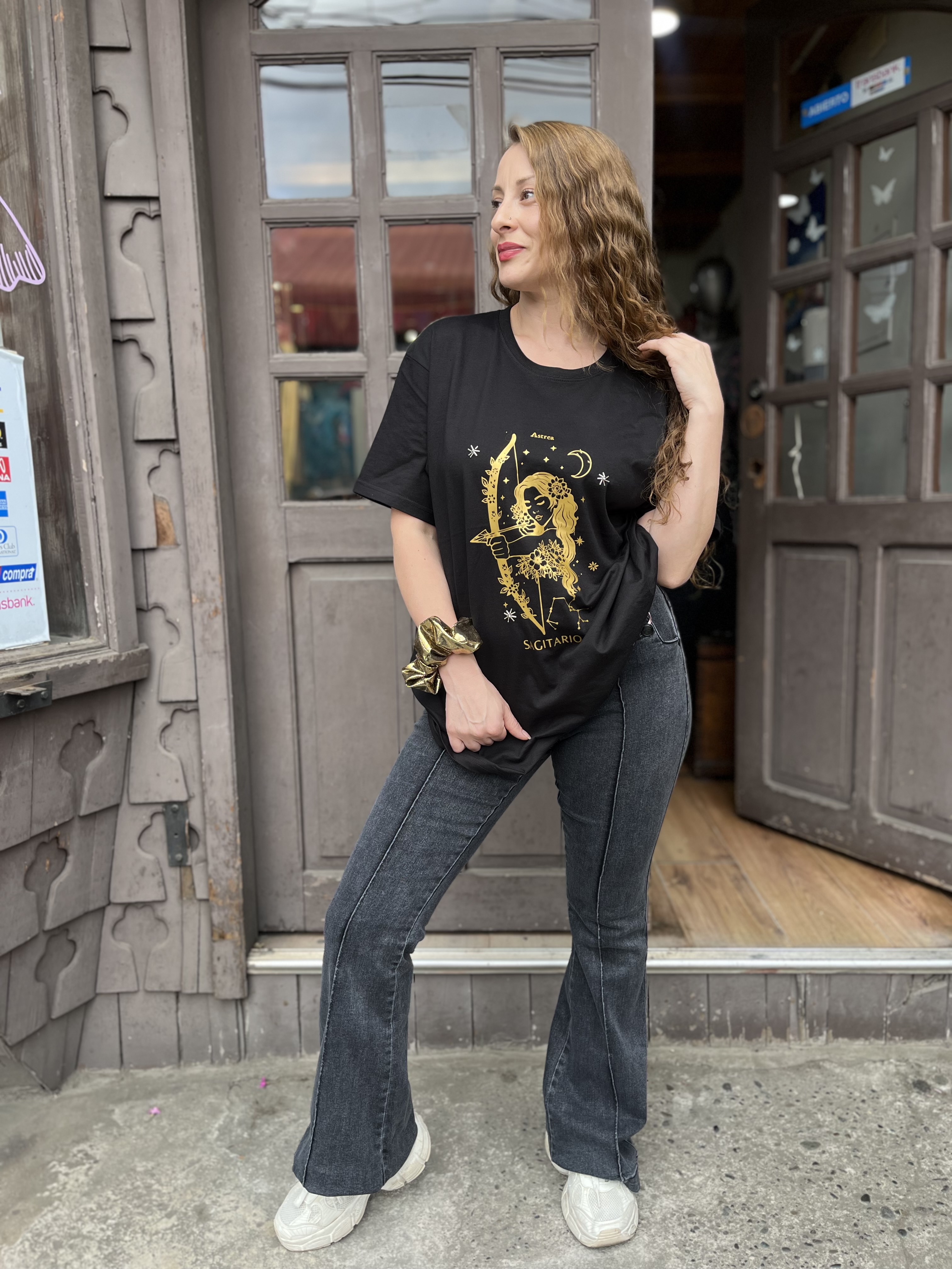 Ilustraciones exclusivas de la marca con pedrería bordada a mano, estampado gold que se mantendrá inalterable con el paso del tiempo, en una polera 100% algodón que te acompañara por muchos años. Mas que moda, es diseño consciente, autentico y con identidad.