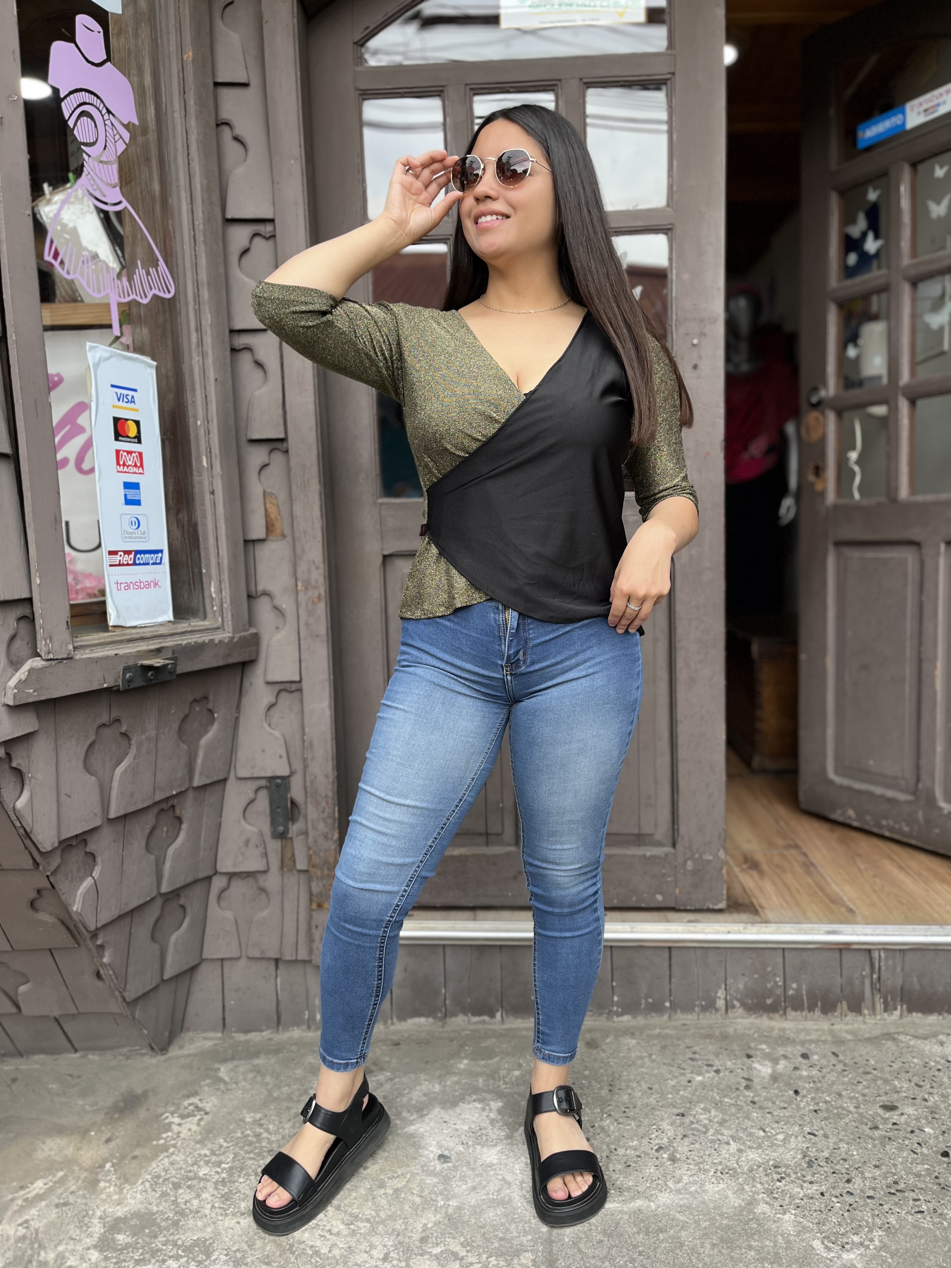 Polera Gloria negro golden manga 3/4