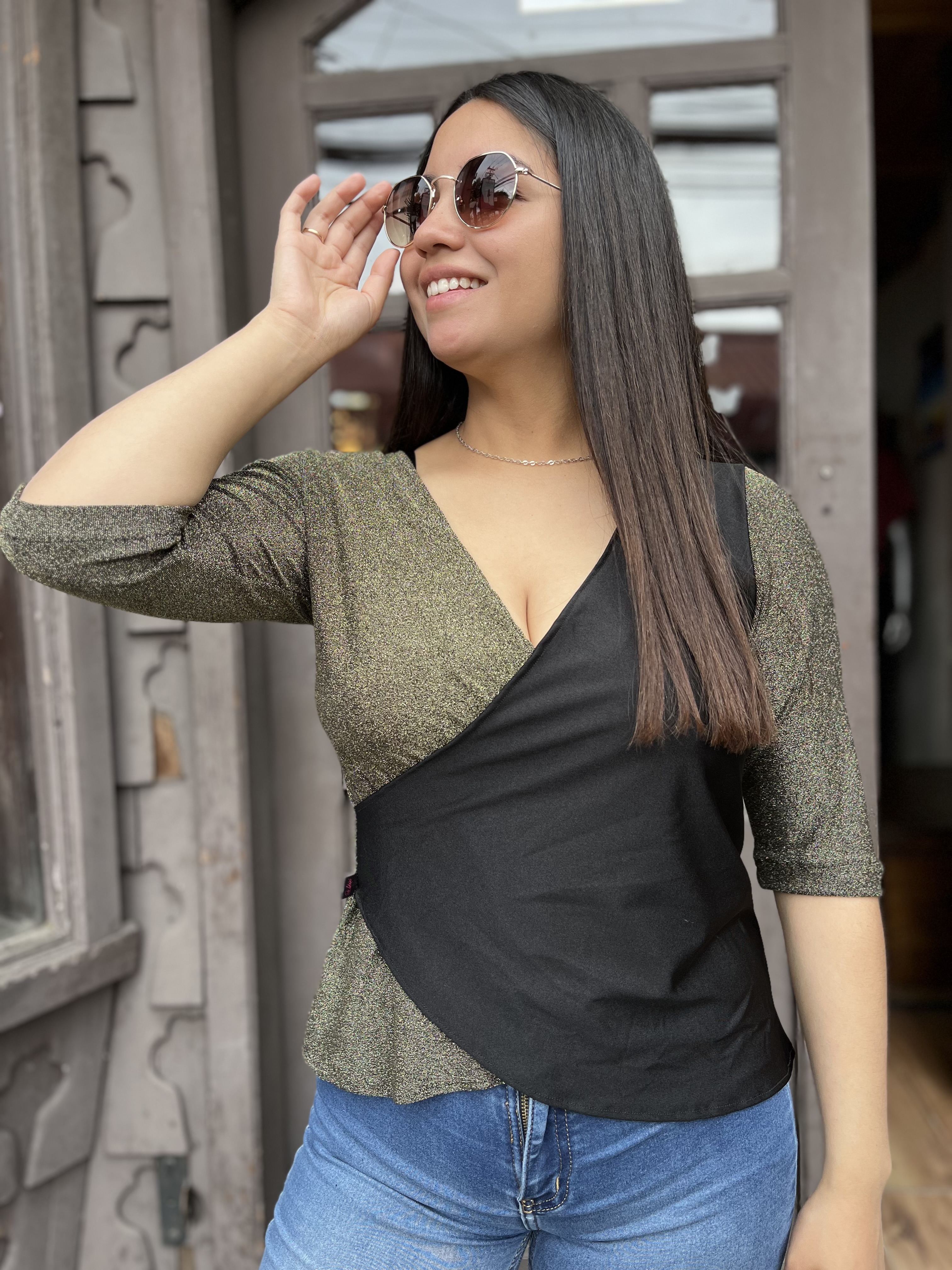 Delantero cruzado, mangas 3/4.