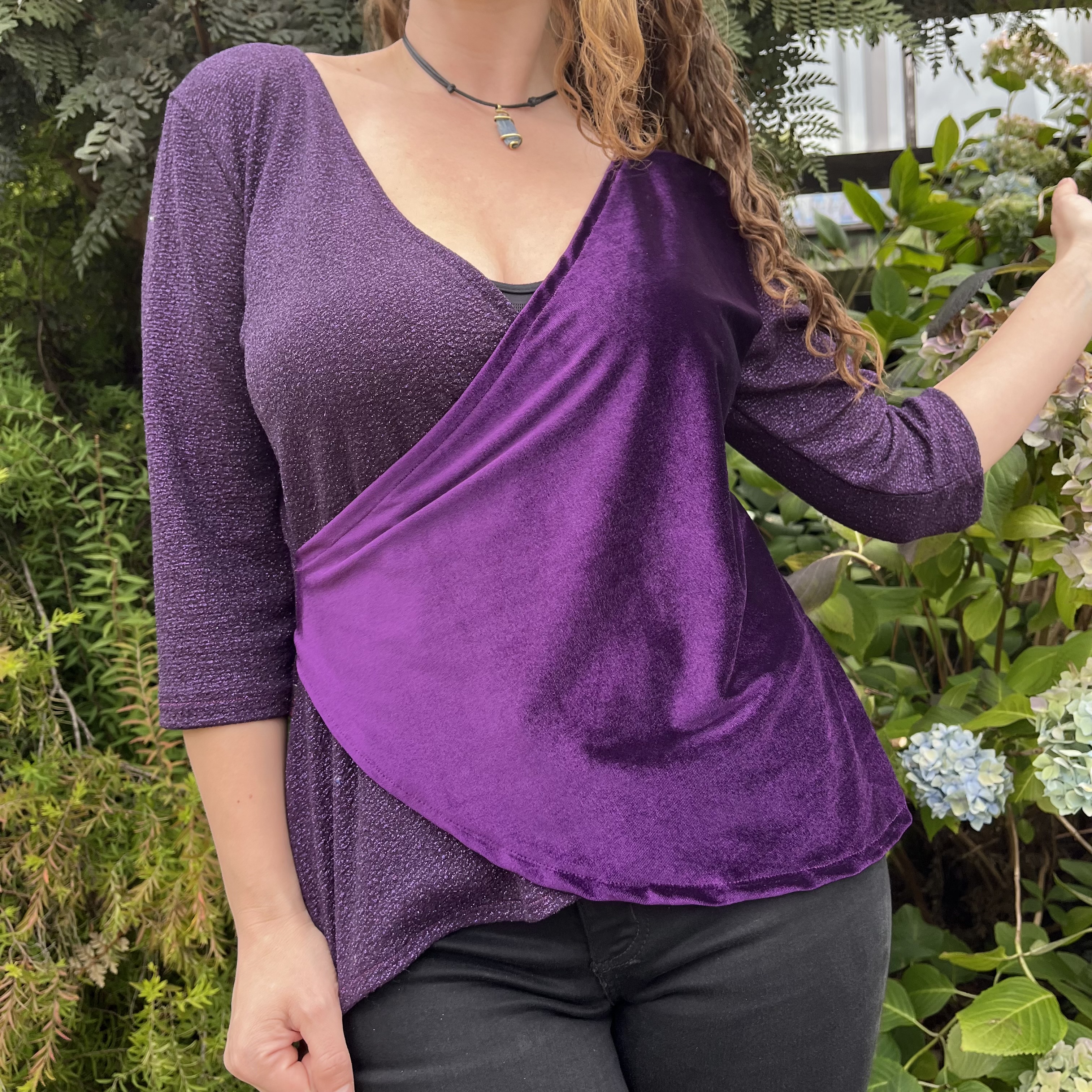 Polera Gloria velvet morado destellos