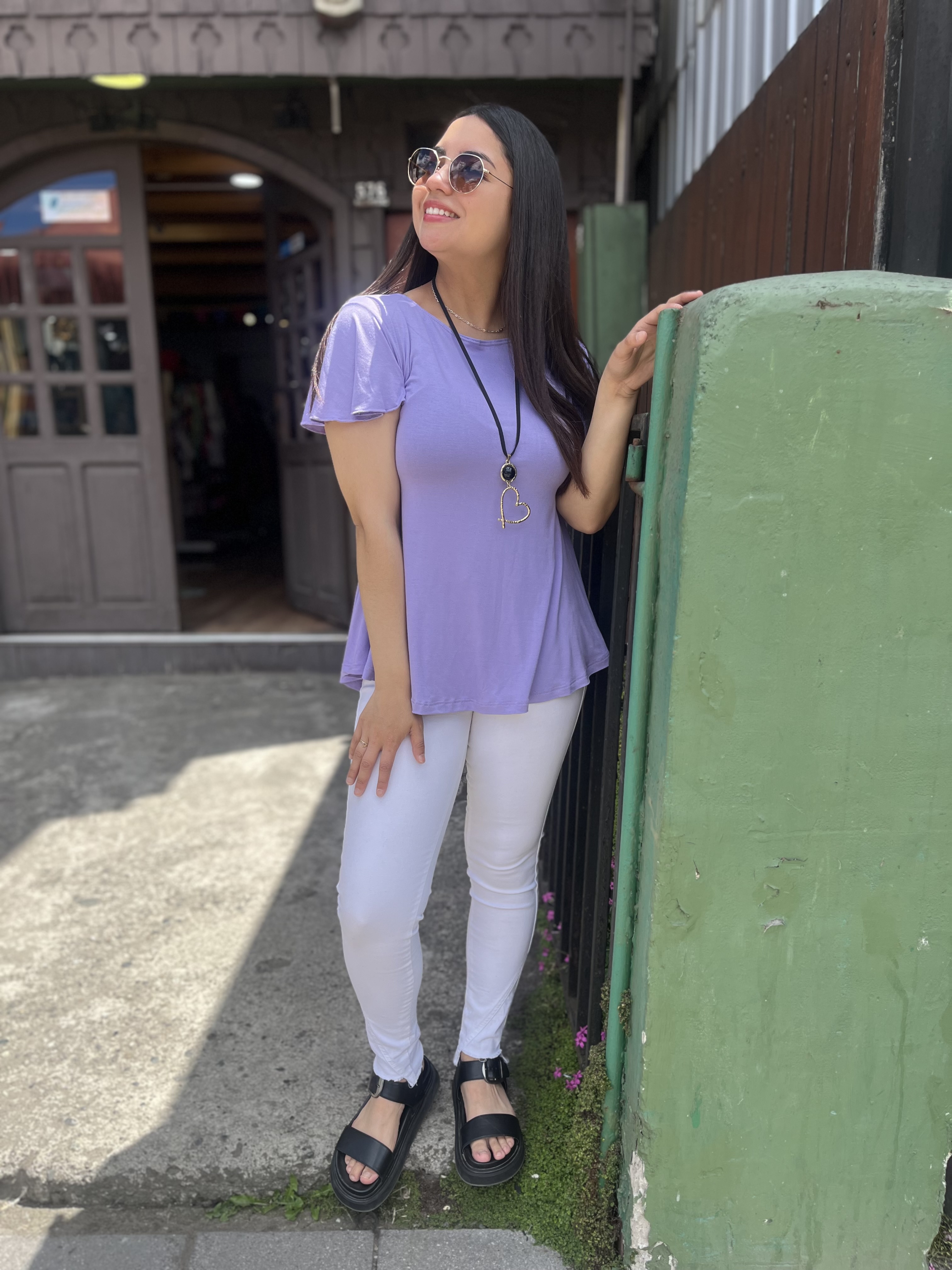 Polera Karla lila modal algodon manga corta vuelo