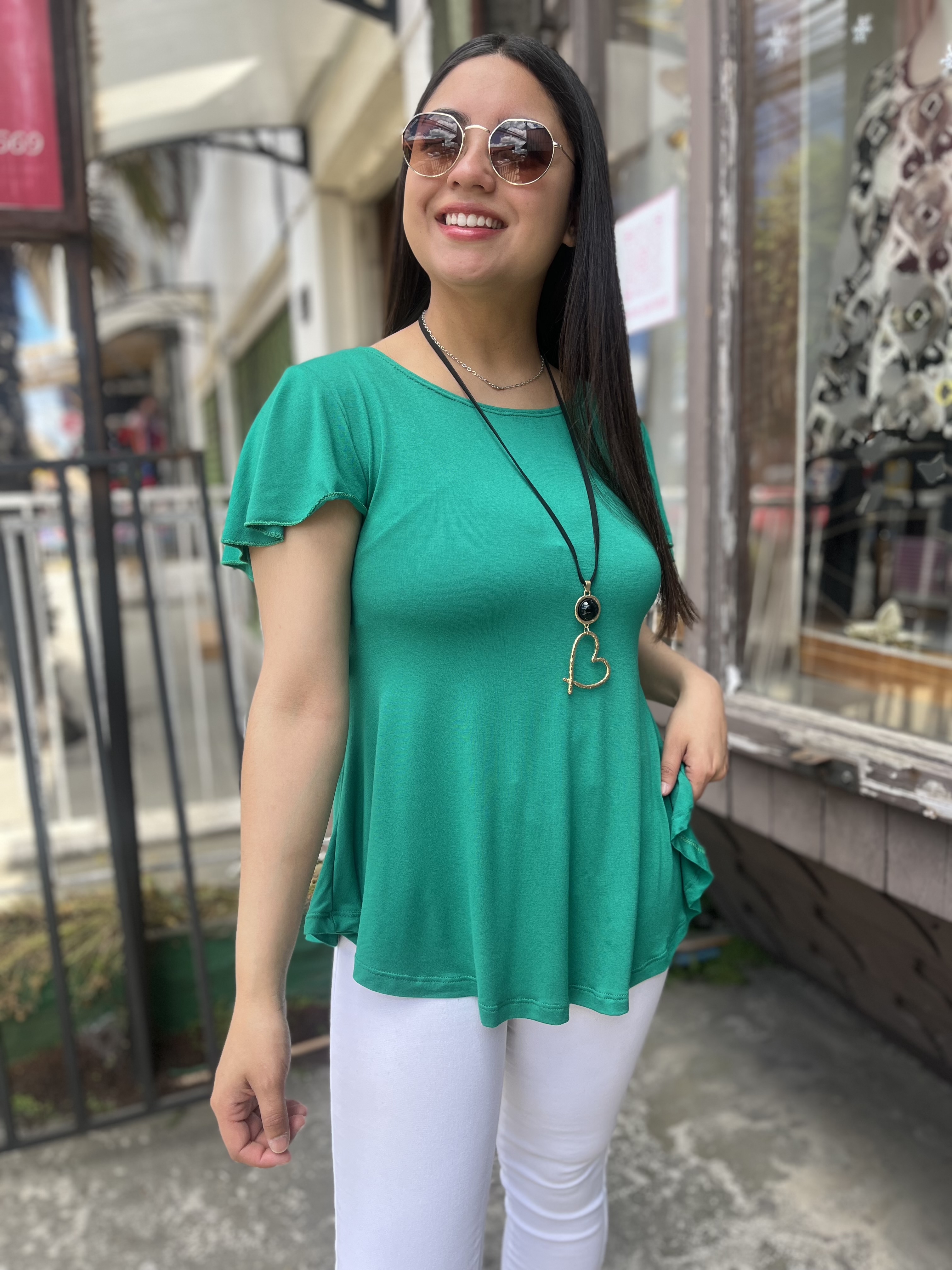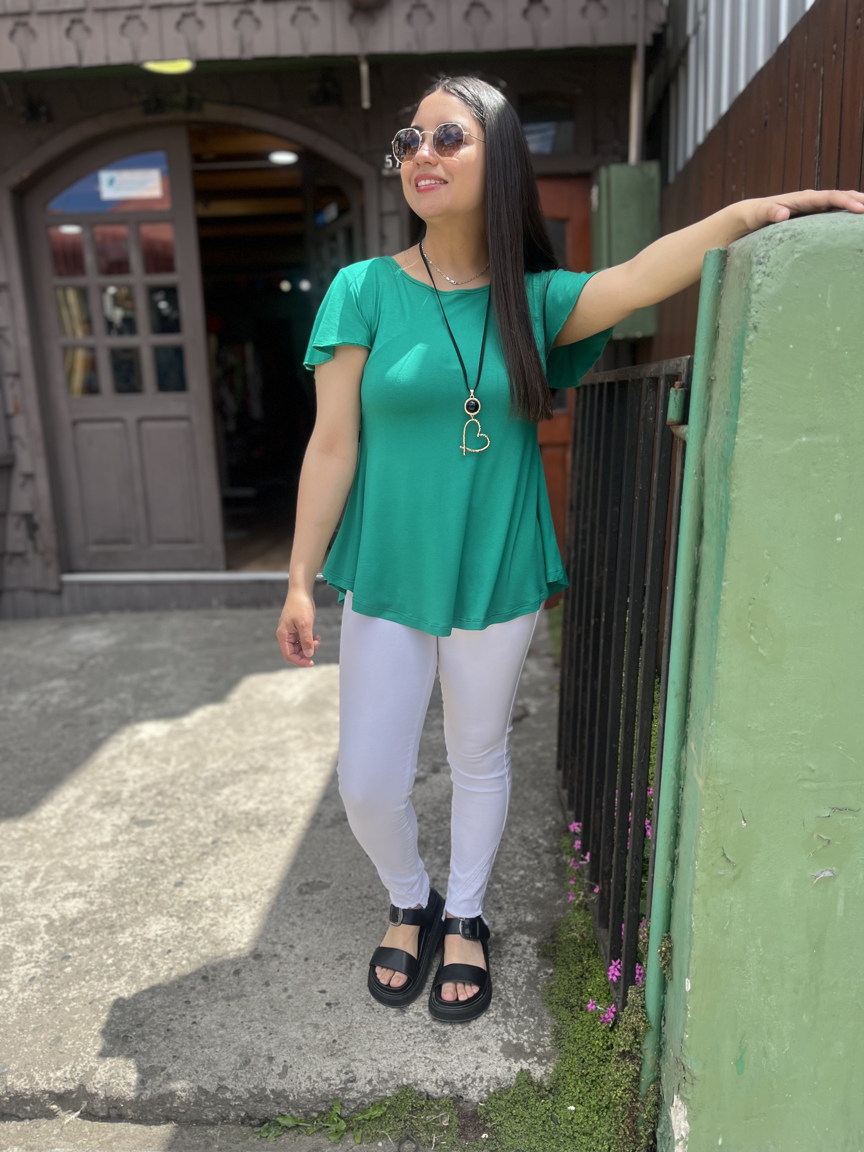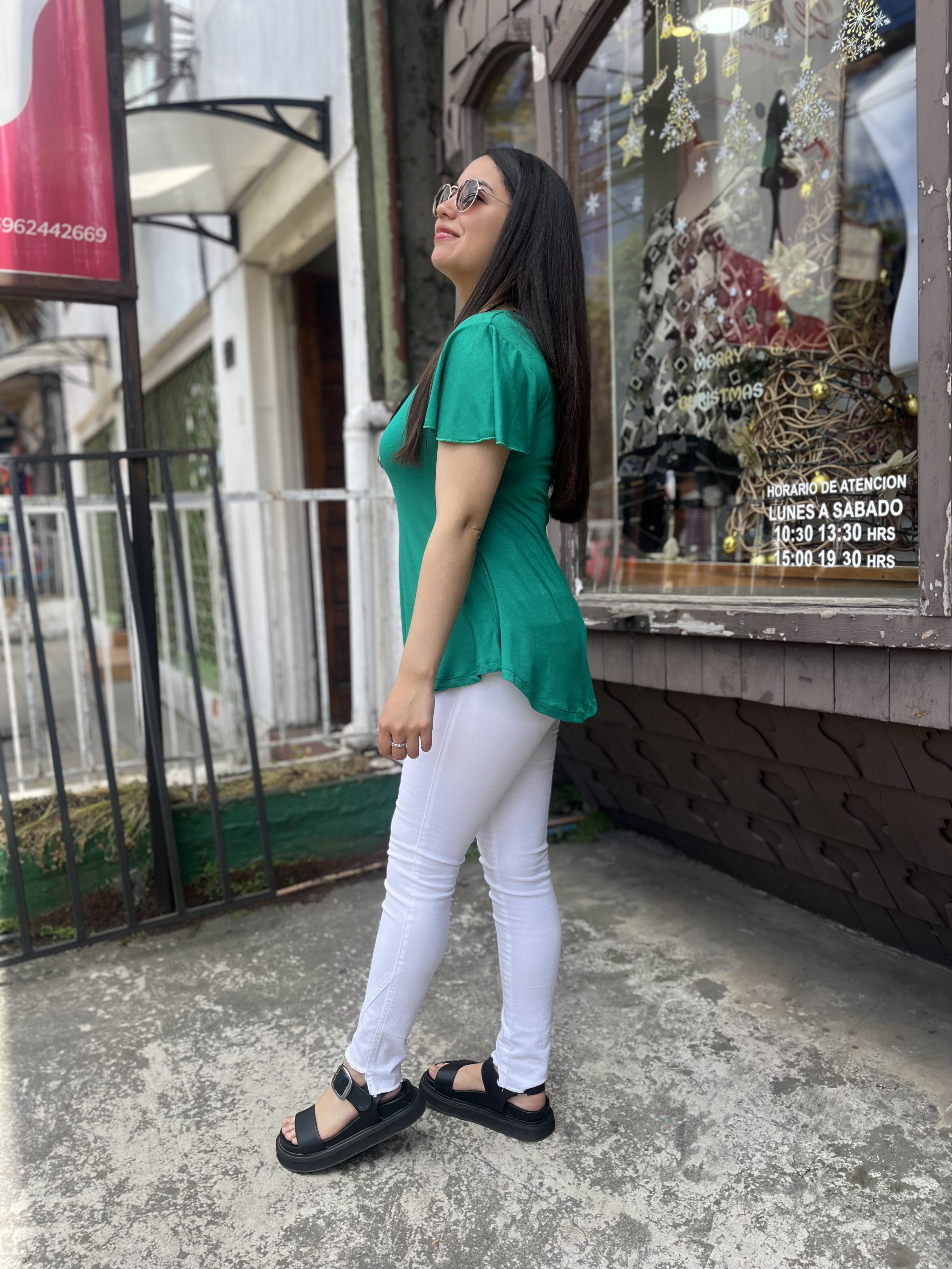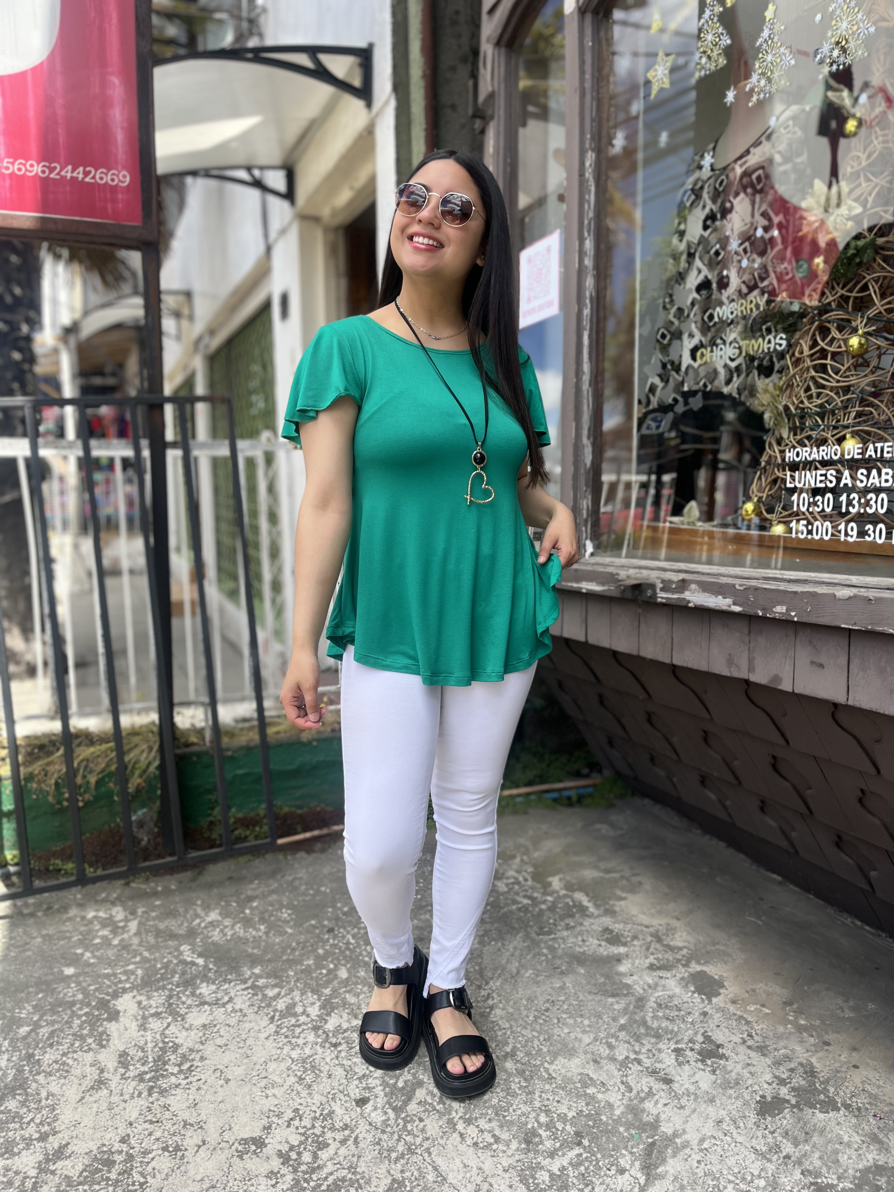 Polera Karla verde esmeralda modal algodon manga corta vuelo