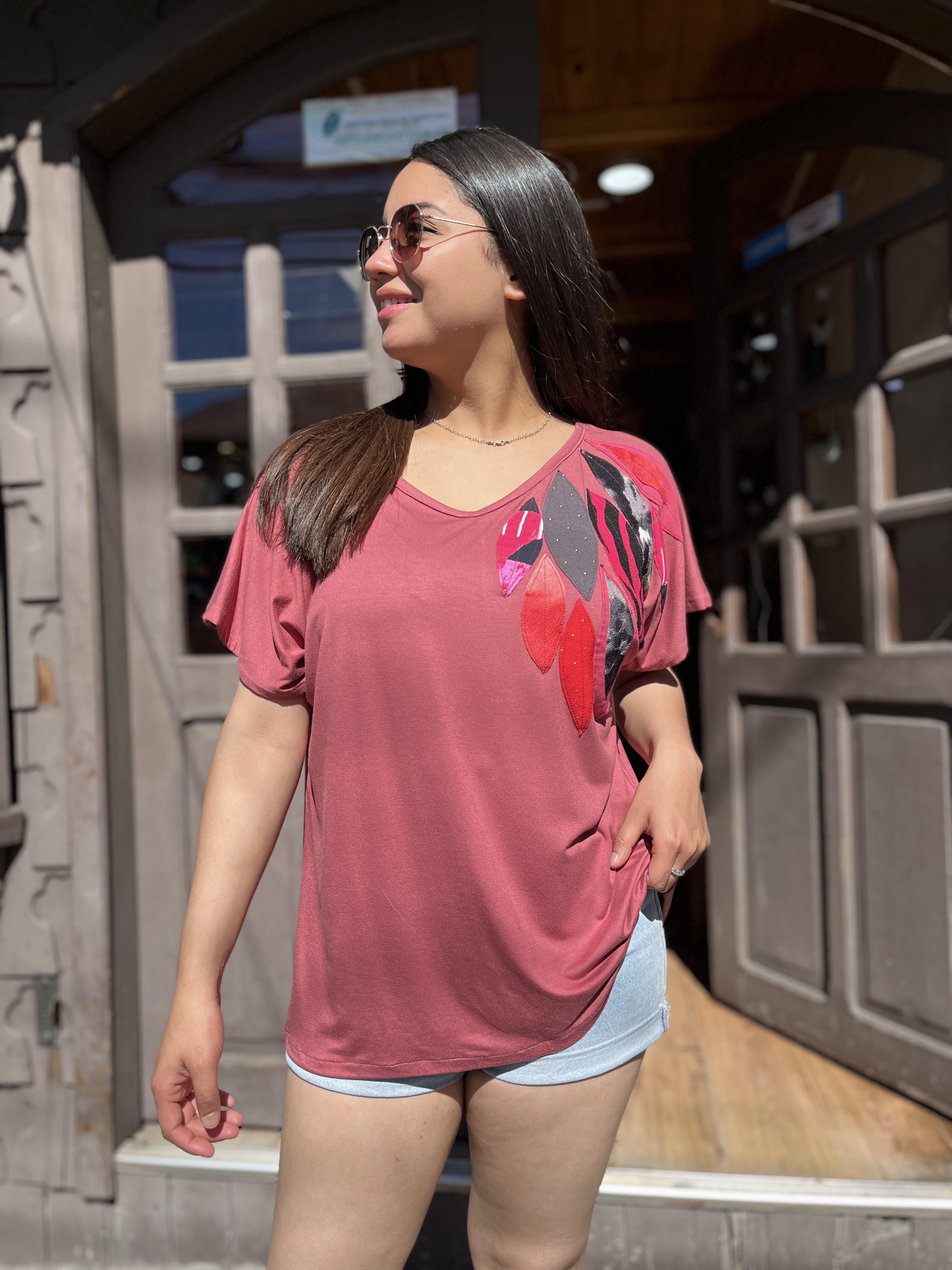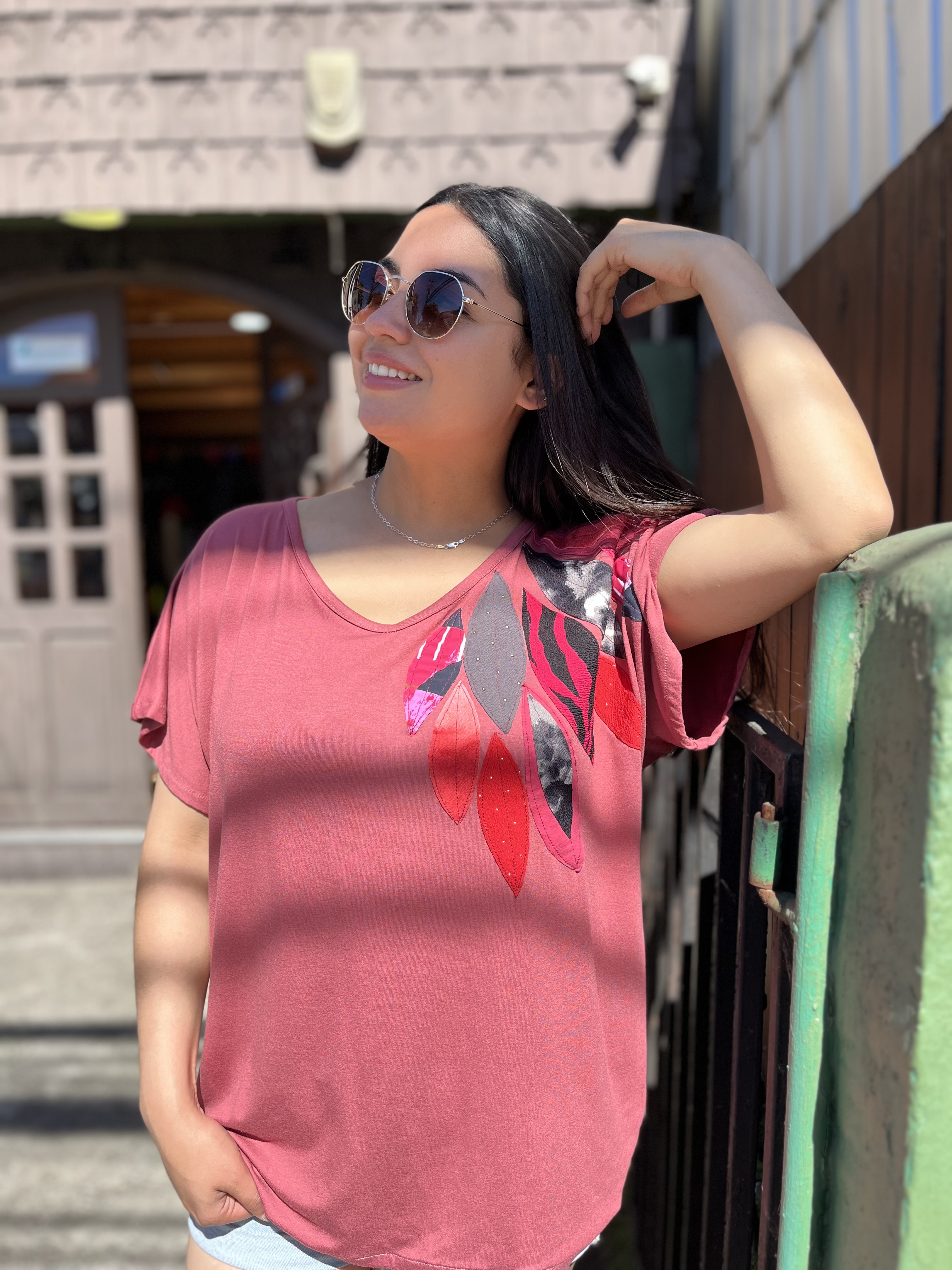 Polera Ultravioleta V hojas laterales rosa velvet algodon manga corta
