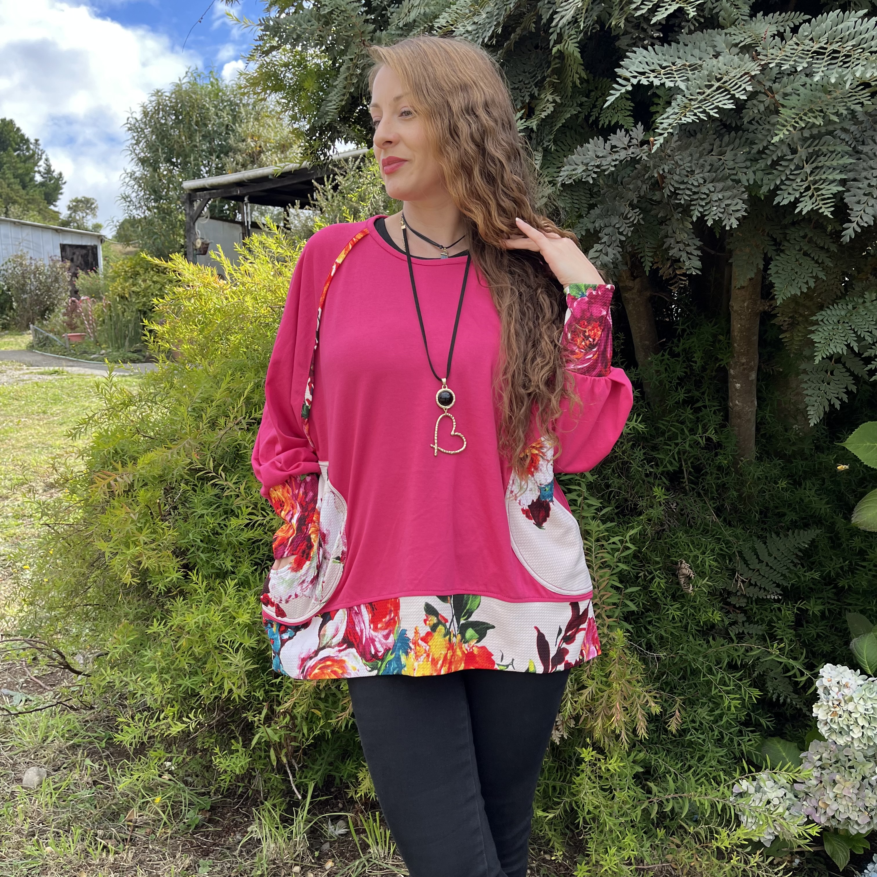 Poleron Ultravioleta Olivia algodon fucsia blanco floral