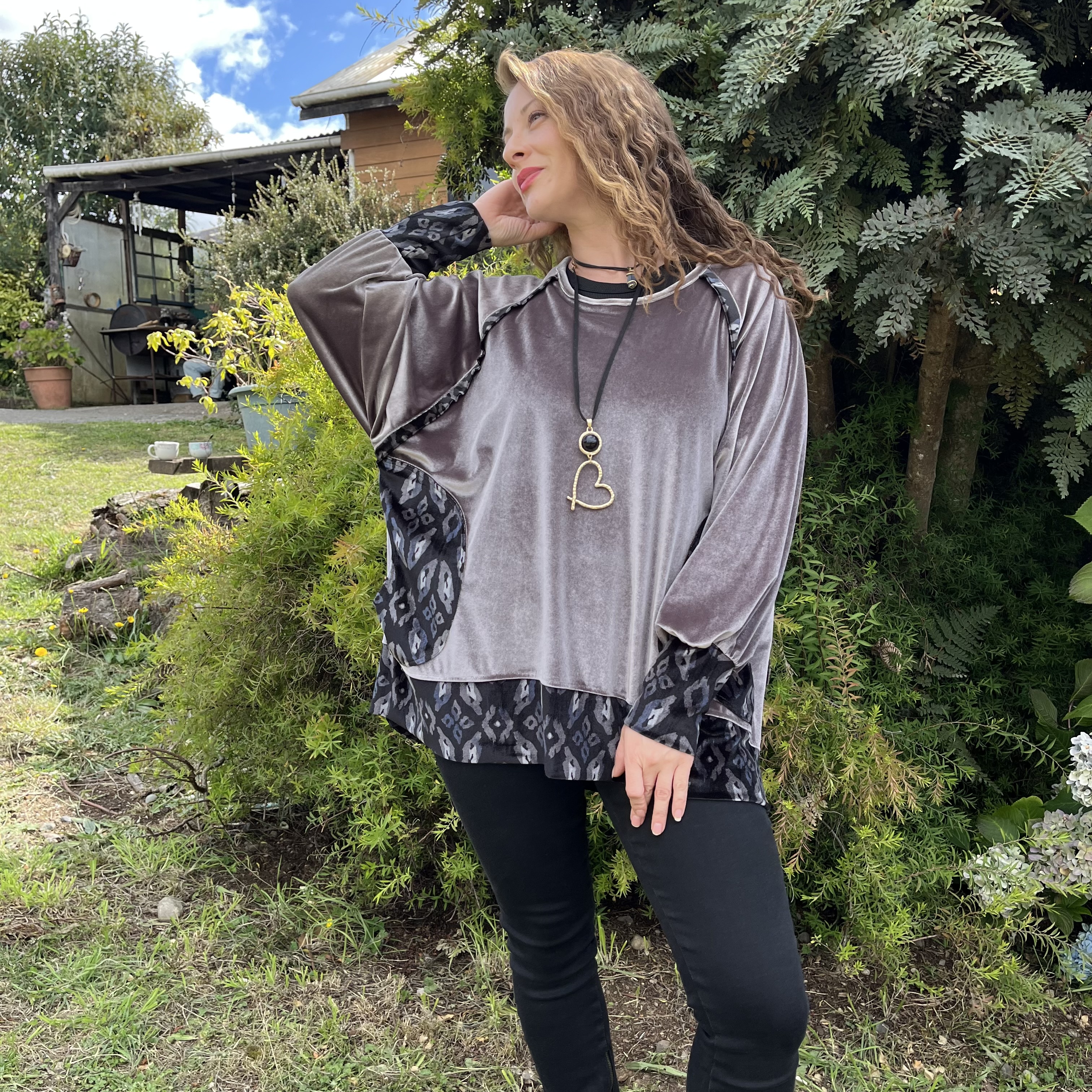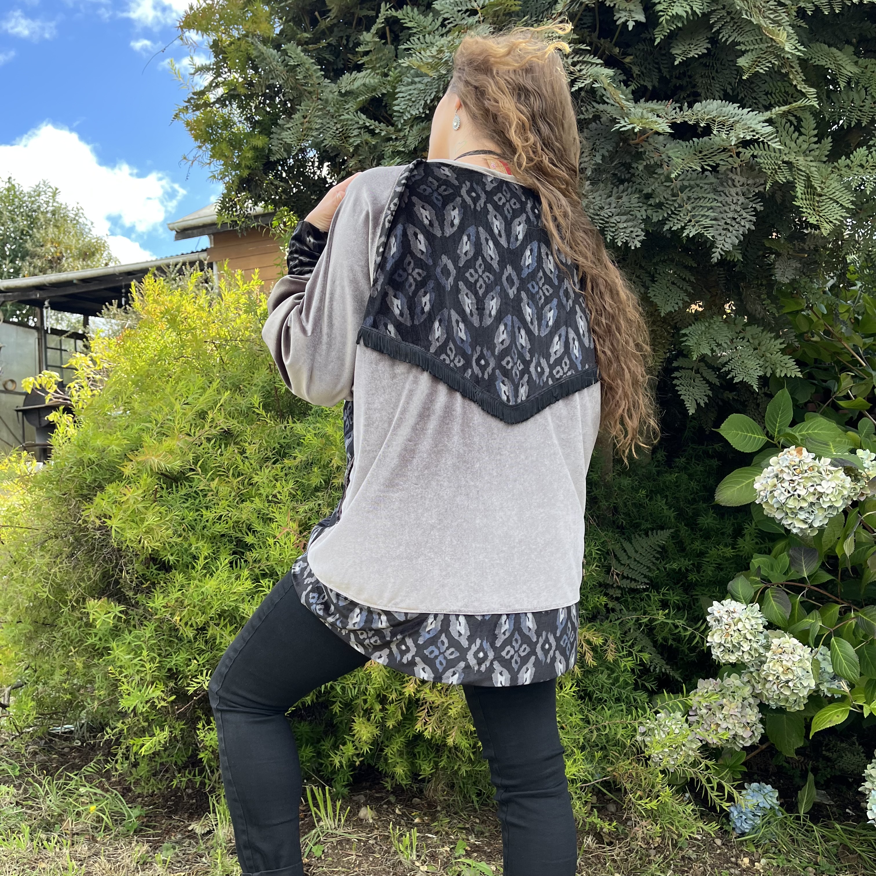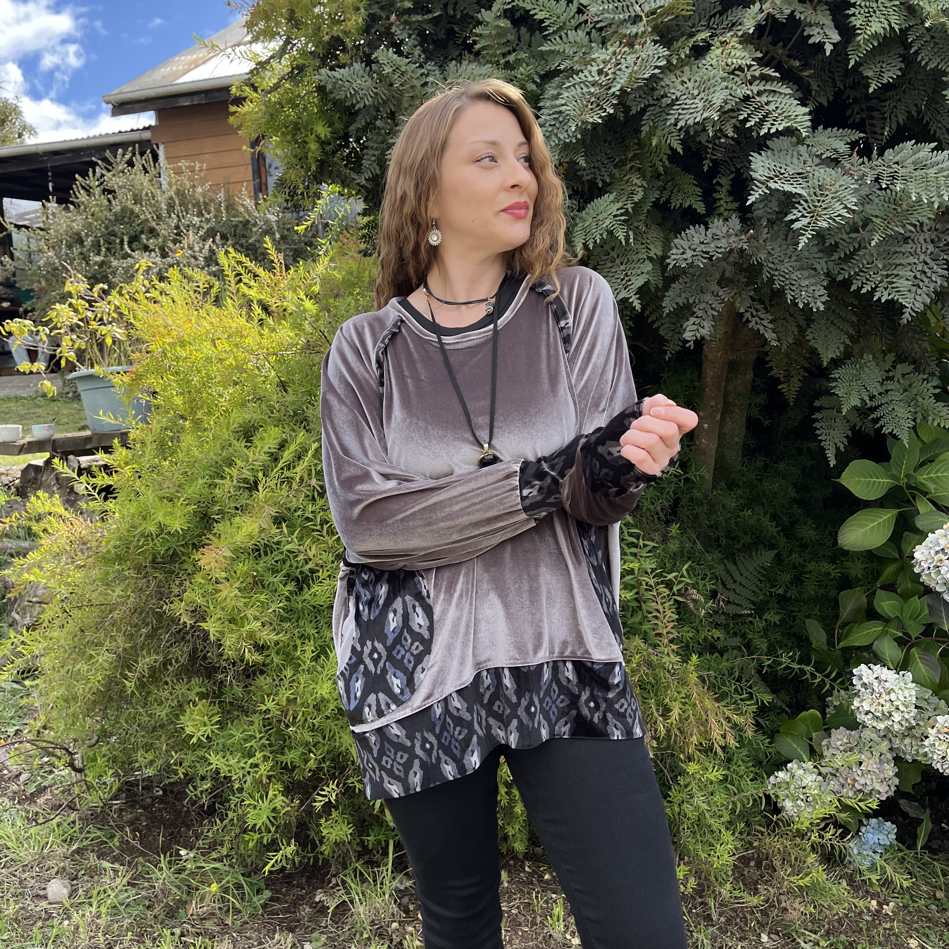 Poleron Ultravioleta Olivia velvet gris negro