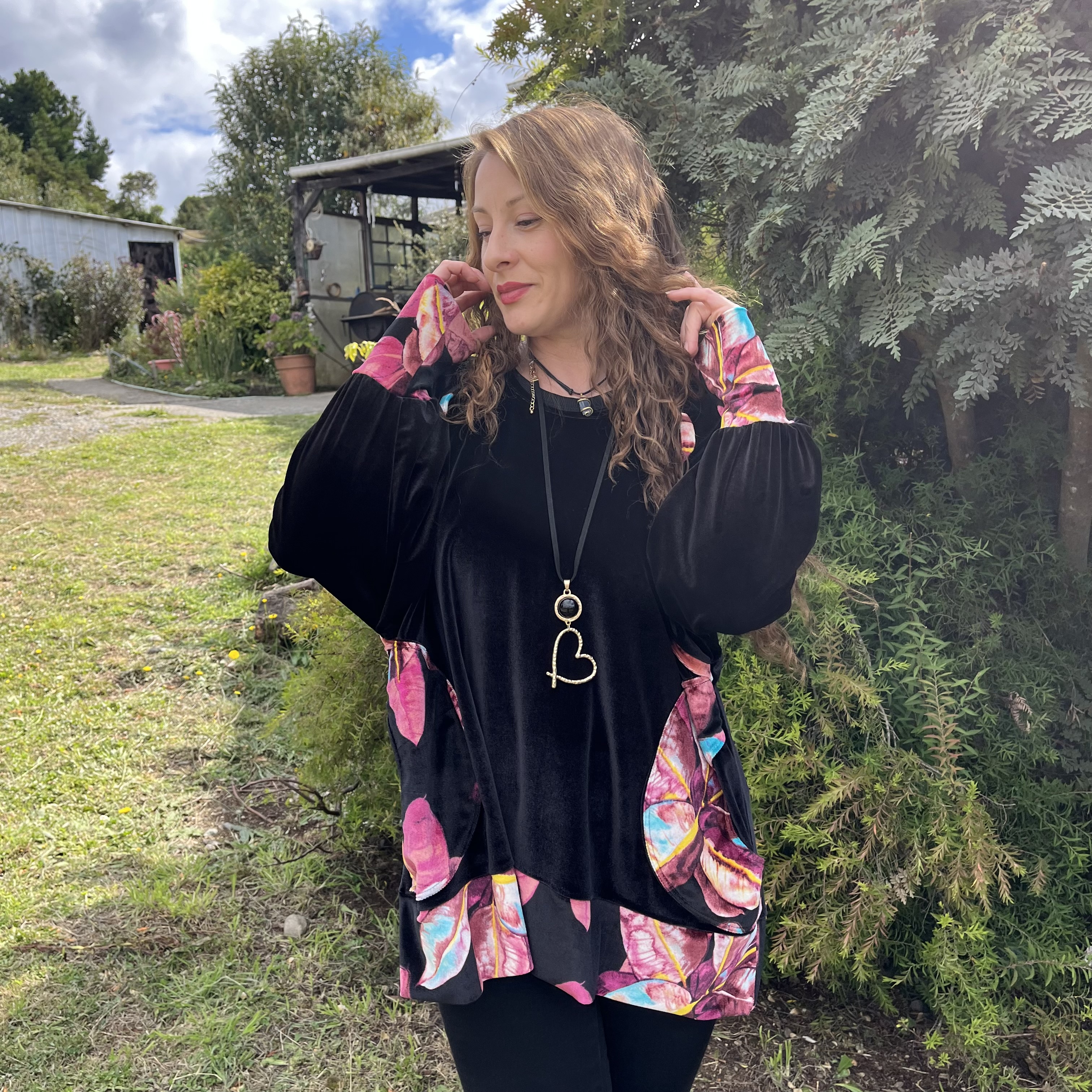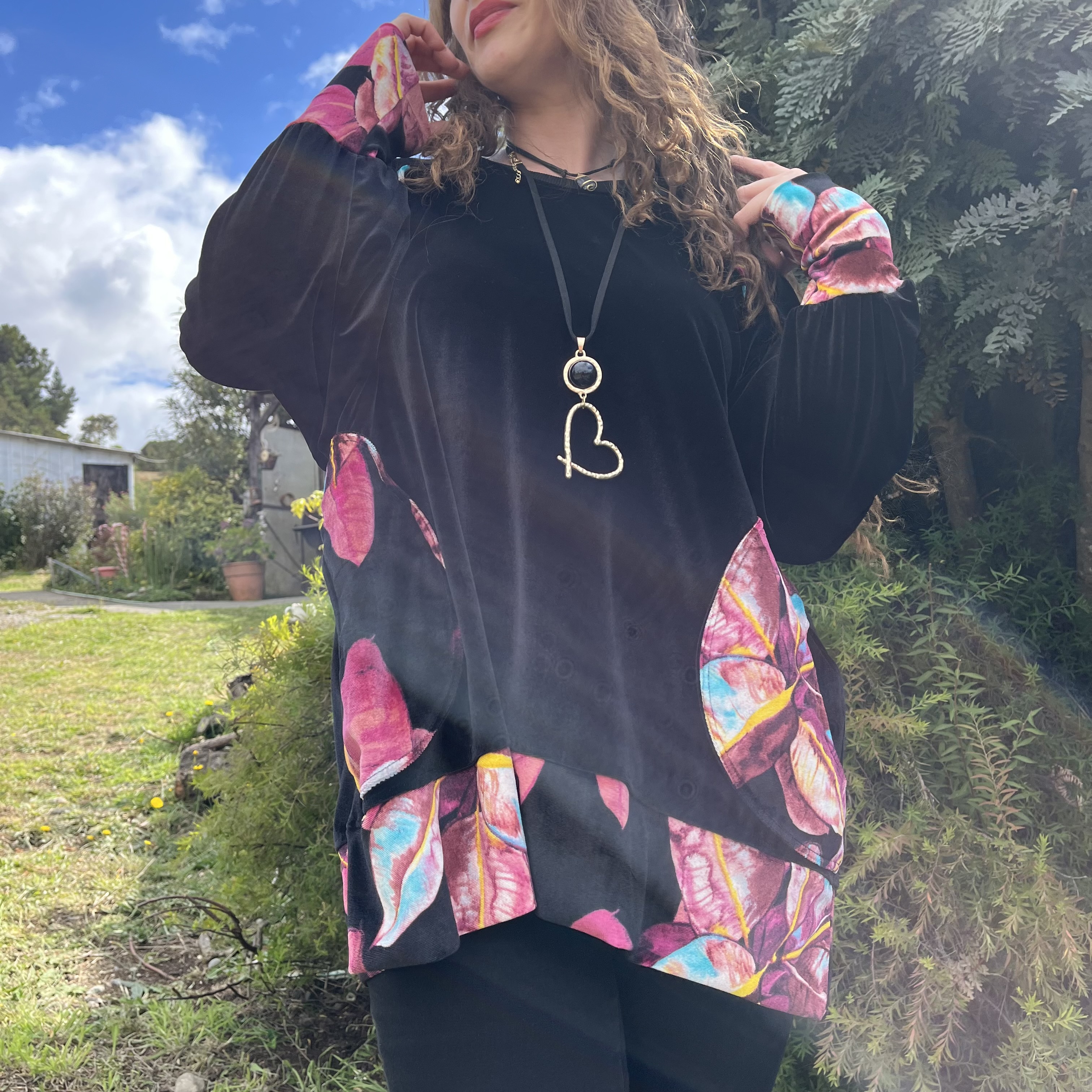 Poleron Ultravioleta Olivia velvet negro floral