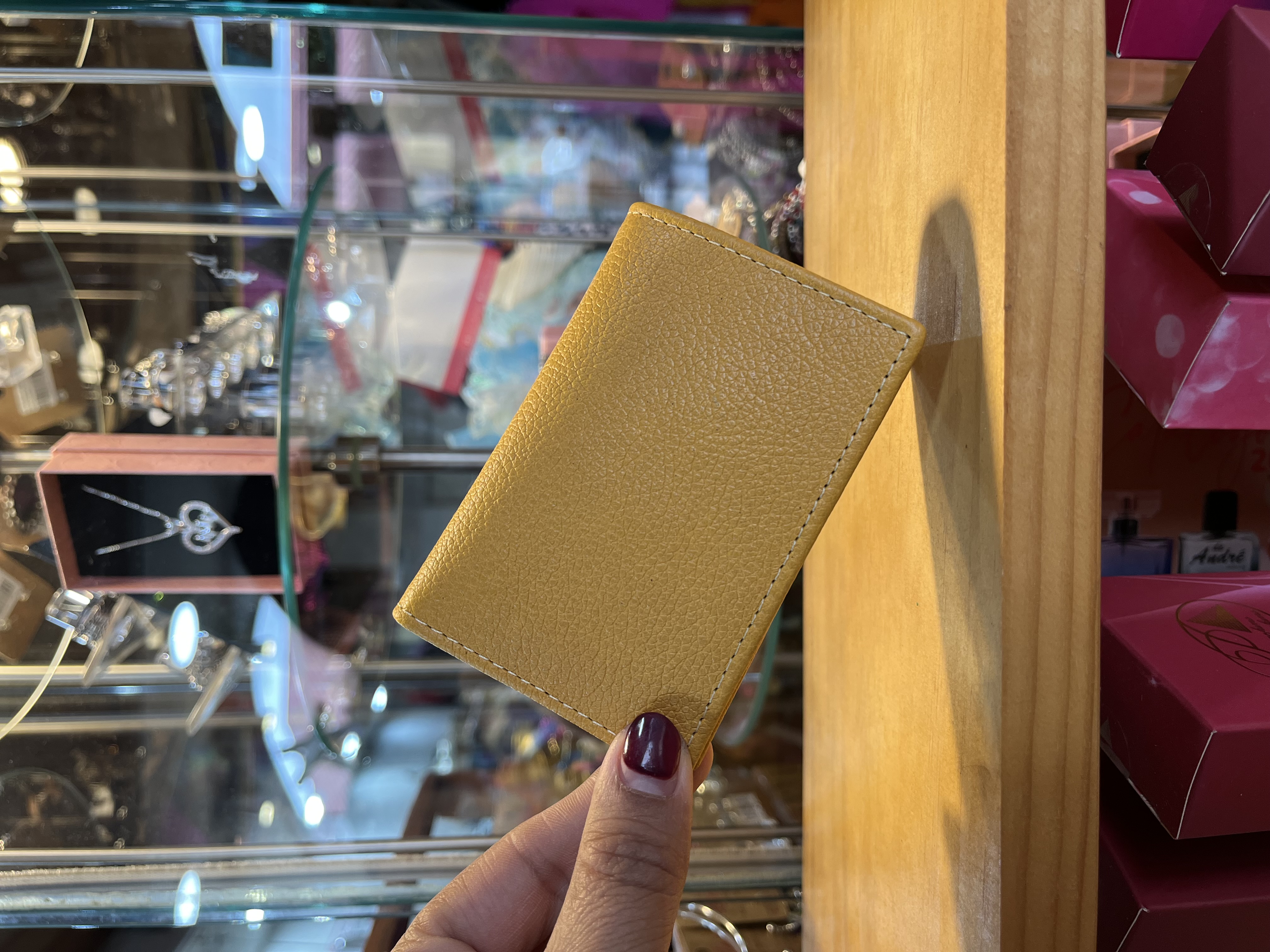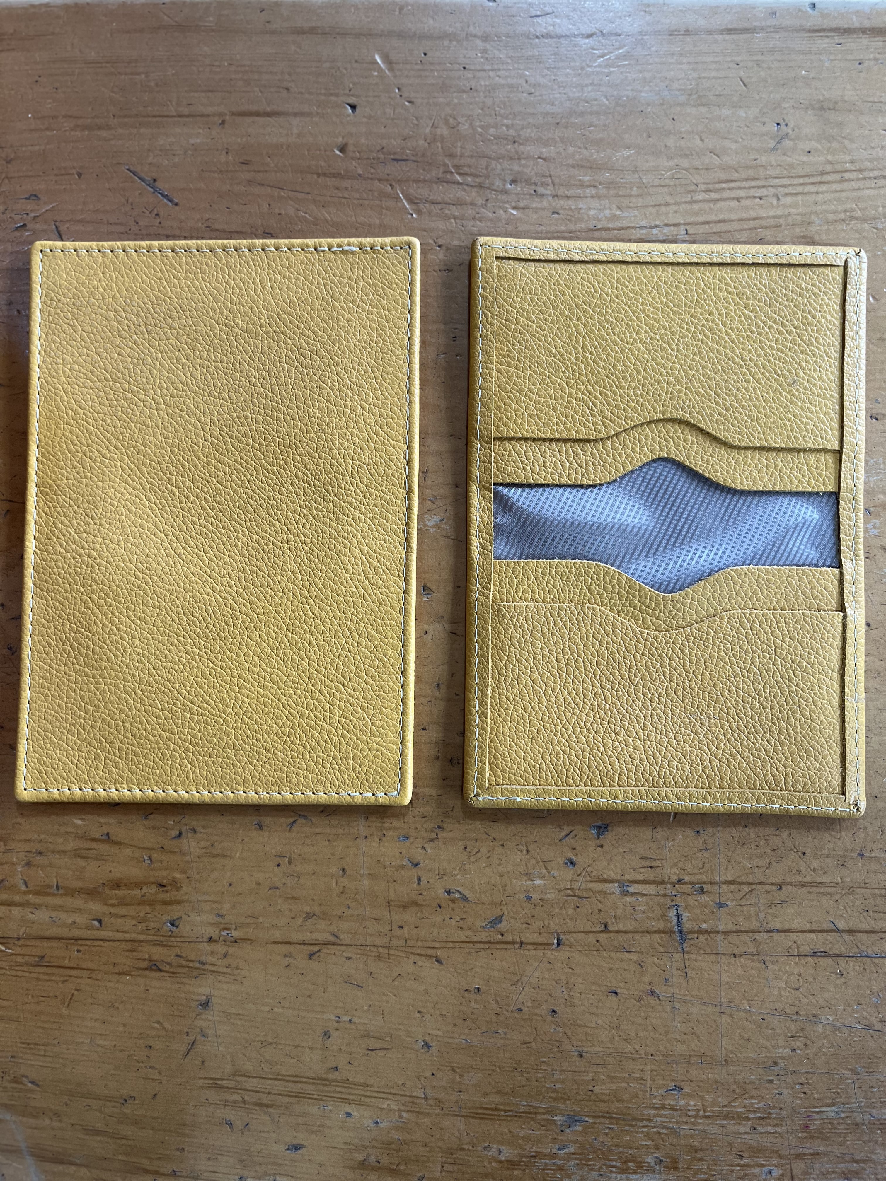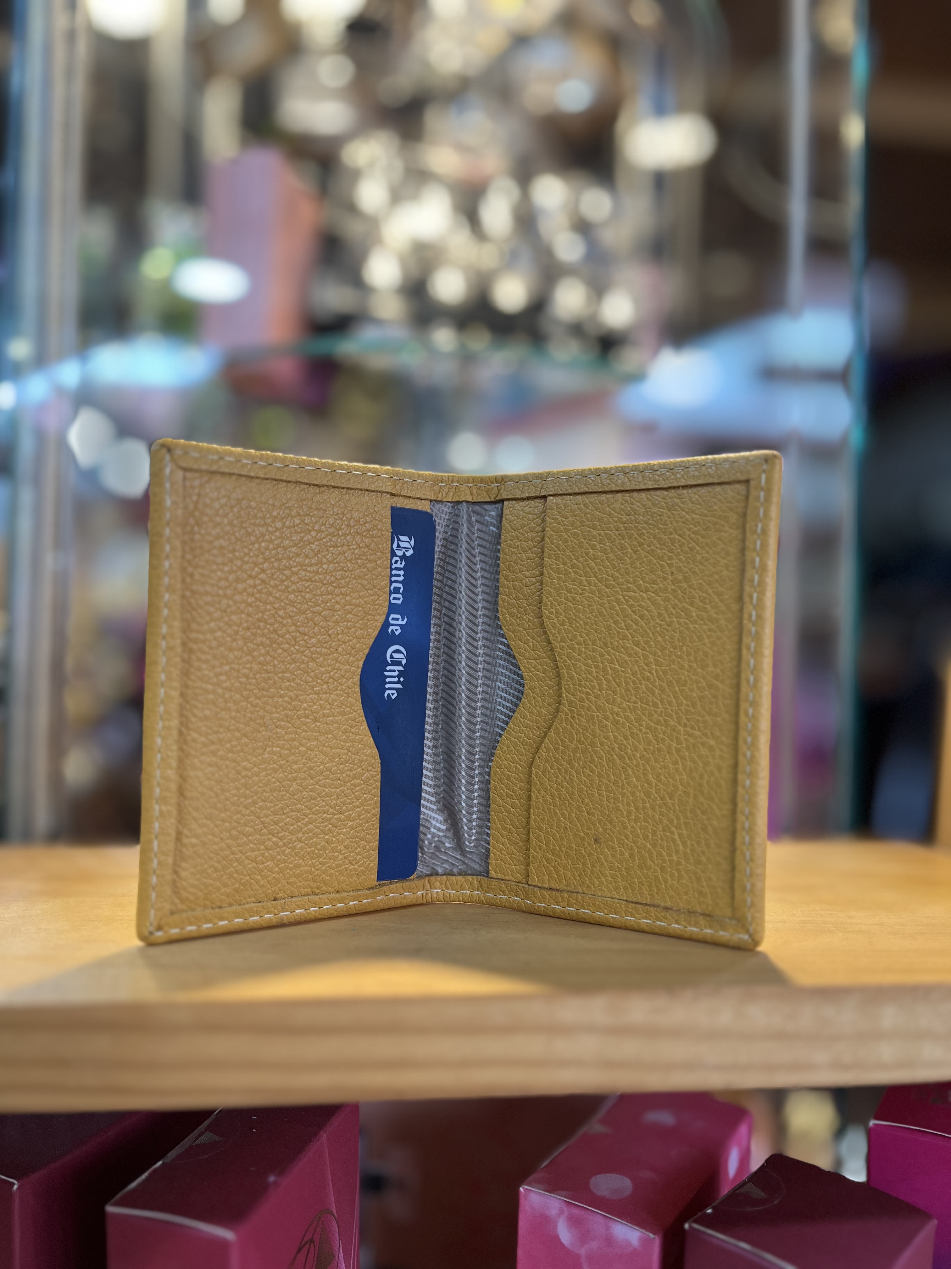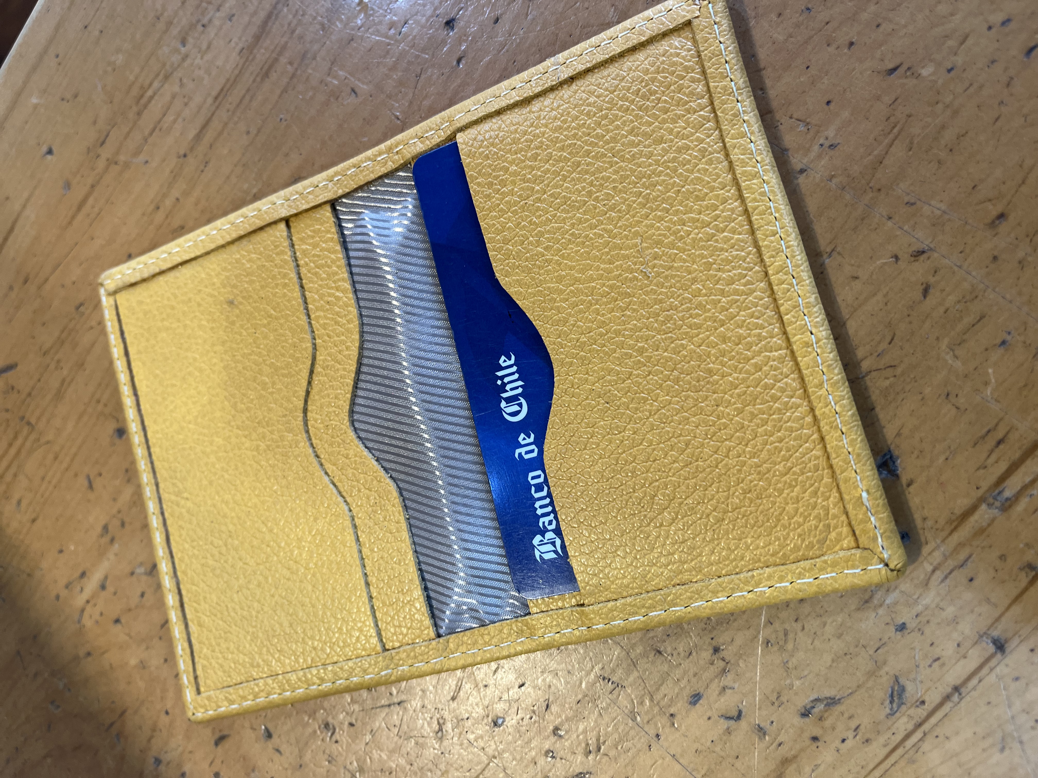 Tarjetero cuero mostaza