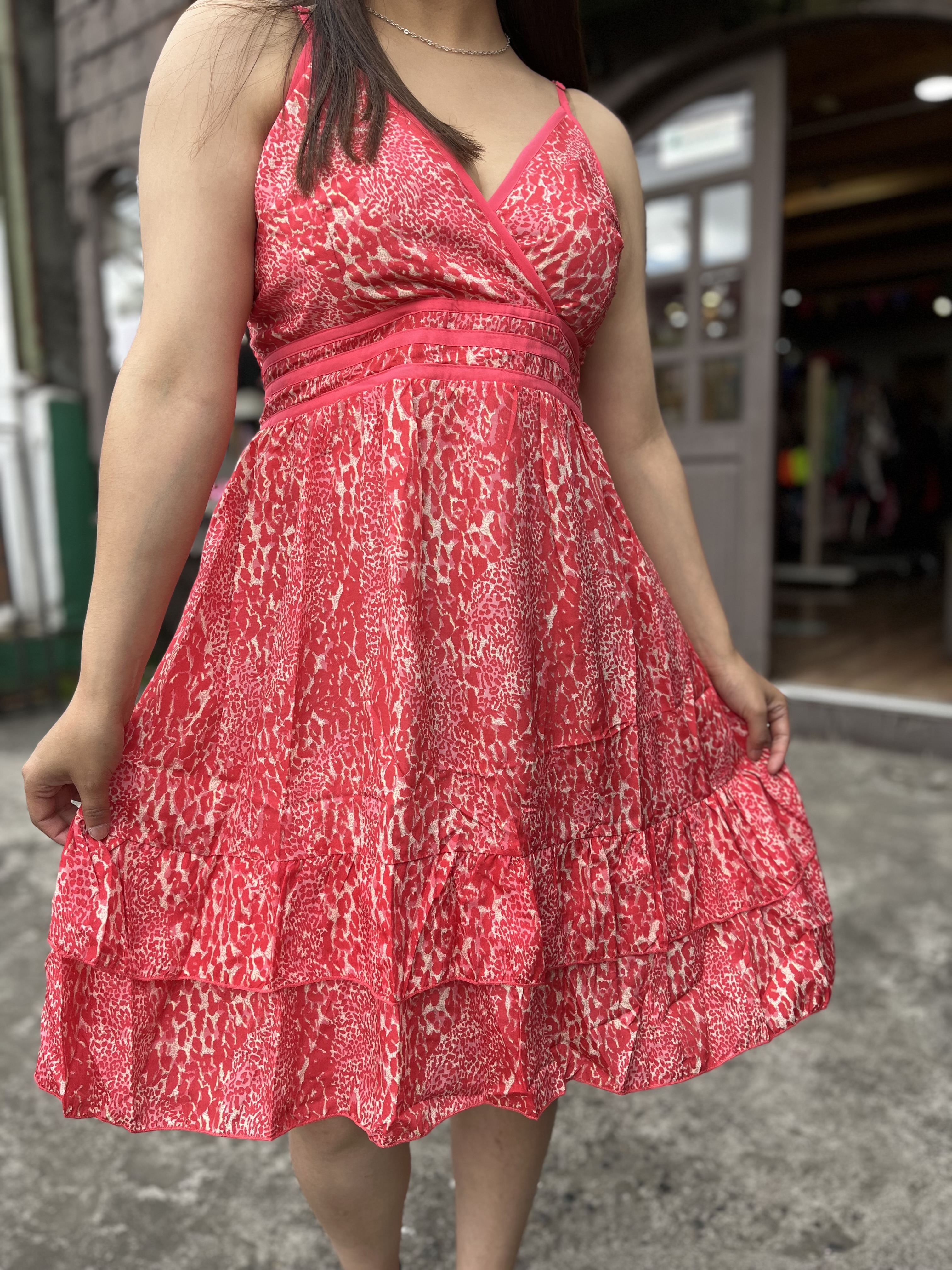 Vestido India pabilo 3 franjas gold print coral