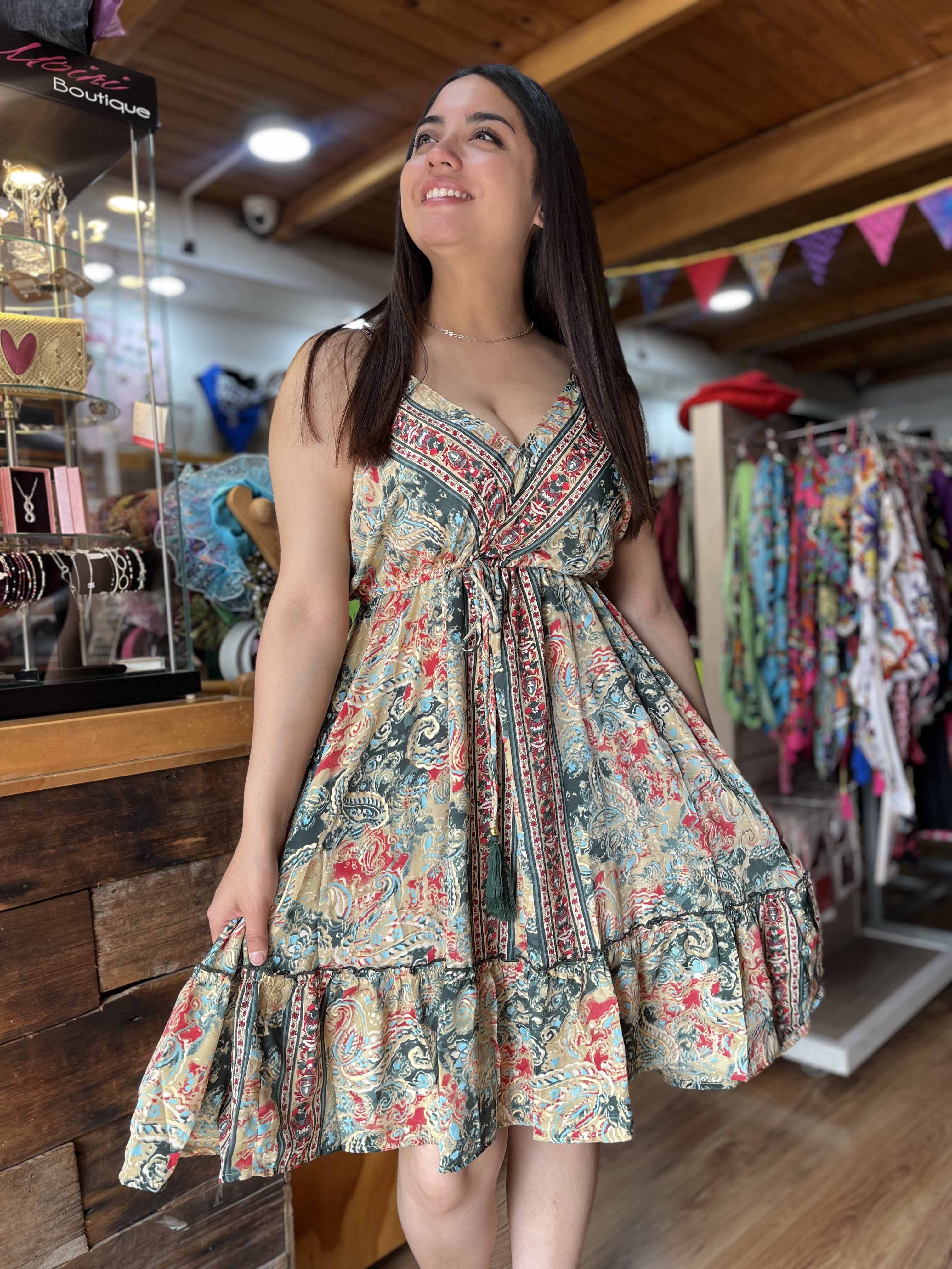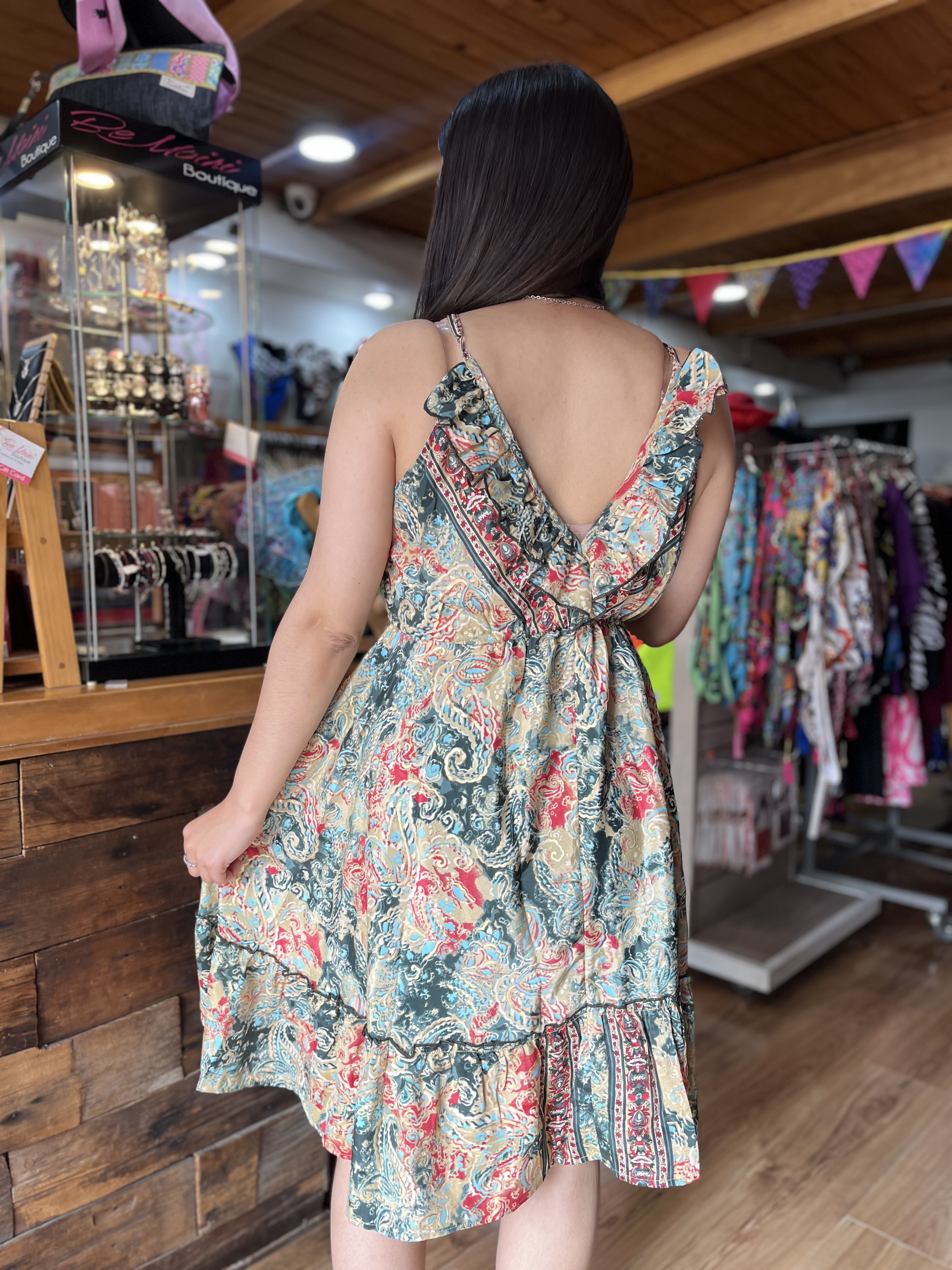 Descubre el nuevo vestido con coquetos vuelitos en la espalda, diseñado para brindar femineidad y comodidad en los días calurosos de verano. Con un escote en forma de V y un ajuste en la cintura y de calce holgado este vestido se adapta perfectamente a todos los tipos de cuerpo, lo que lo convierte en una opción versátil y favorecedora.