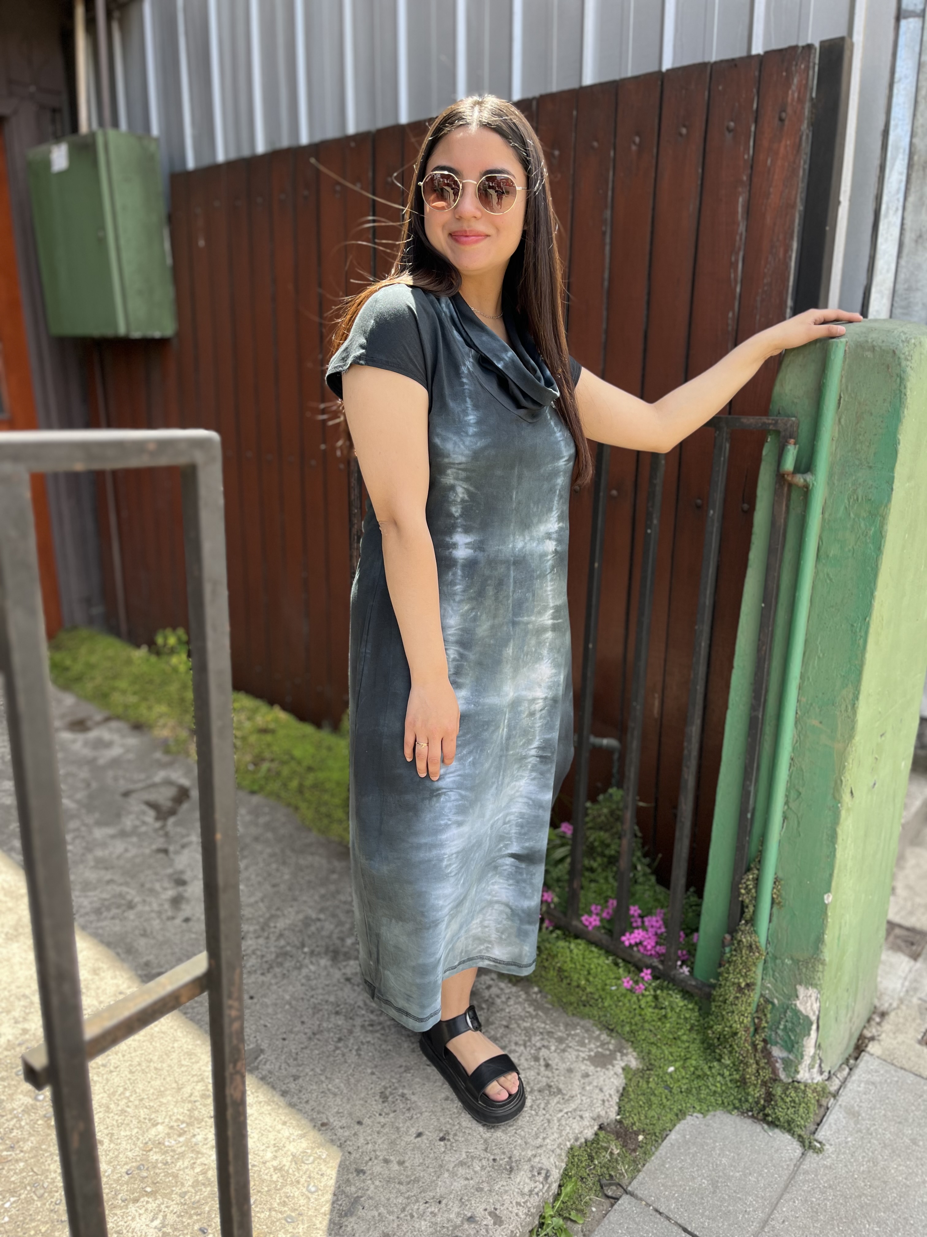 Vestido kisu Aylin negro teñido a mano abertura lateral