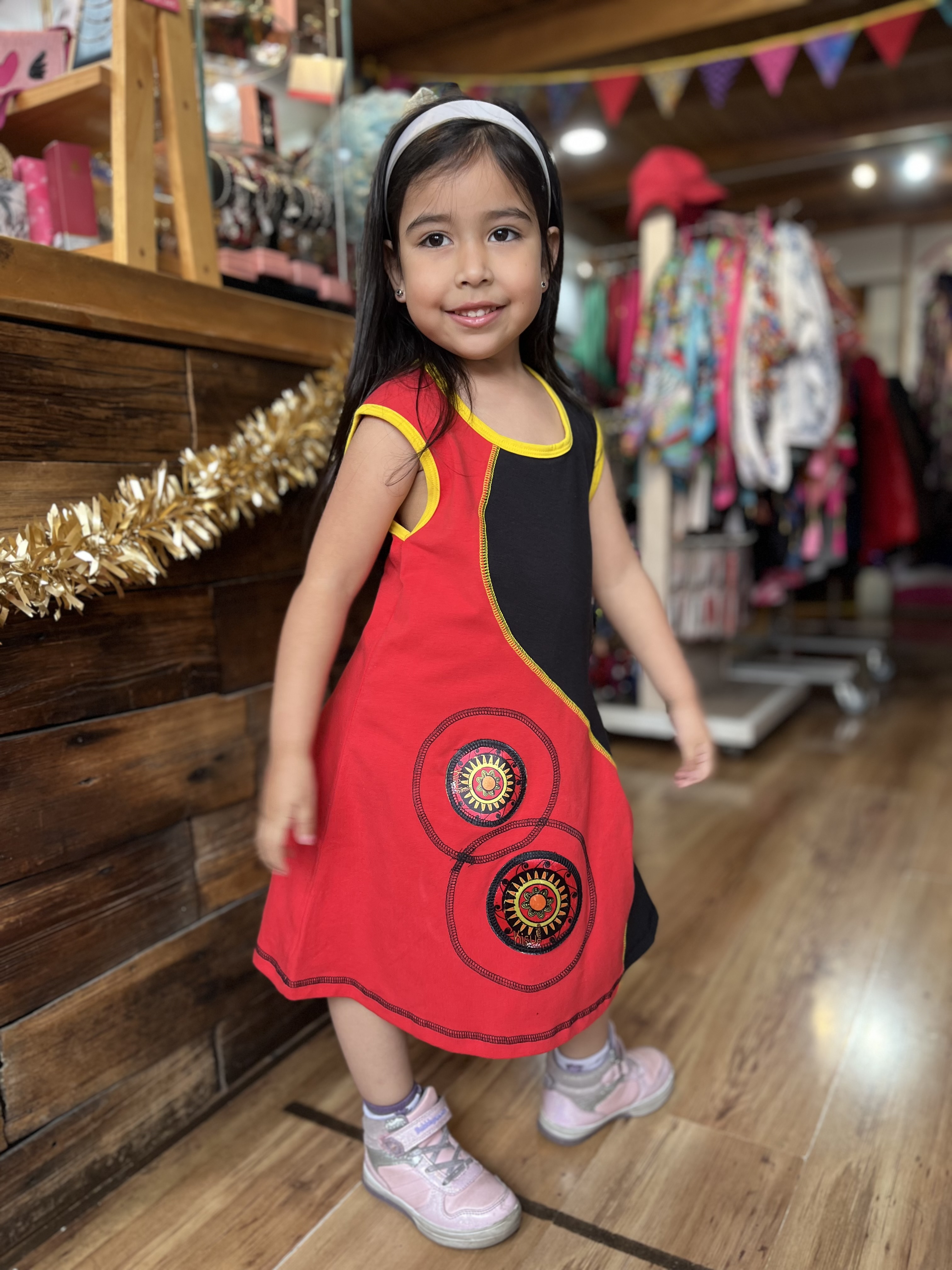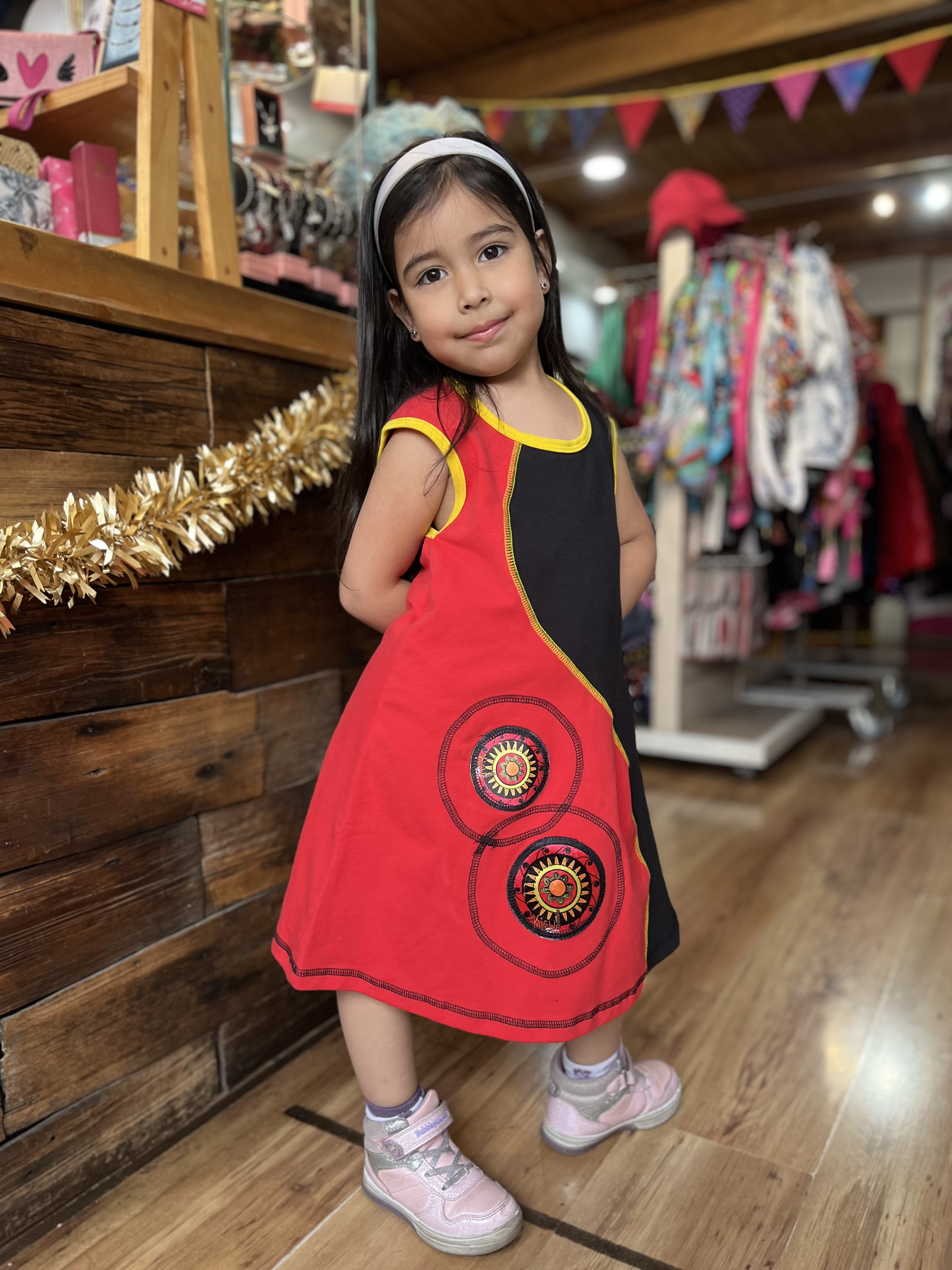 Vestido kisu niña bicolor amarra rojo negro aldodon pima