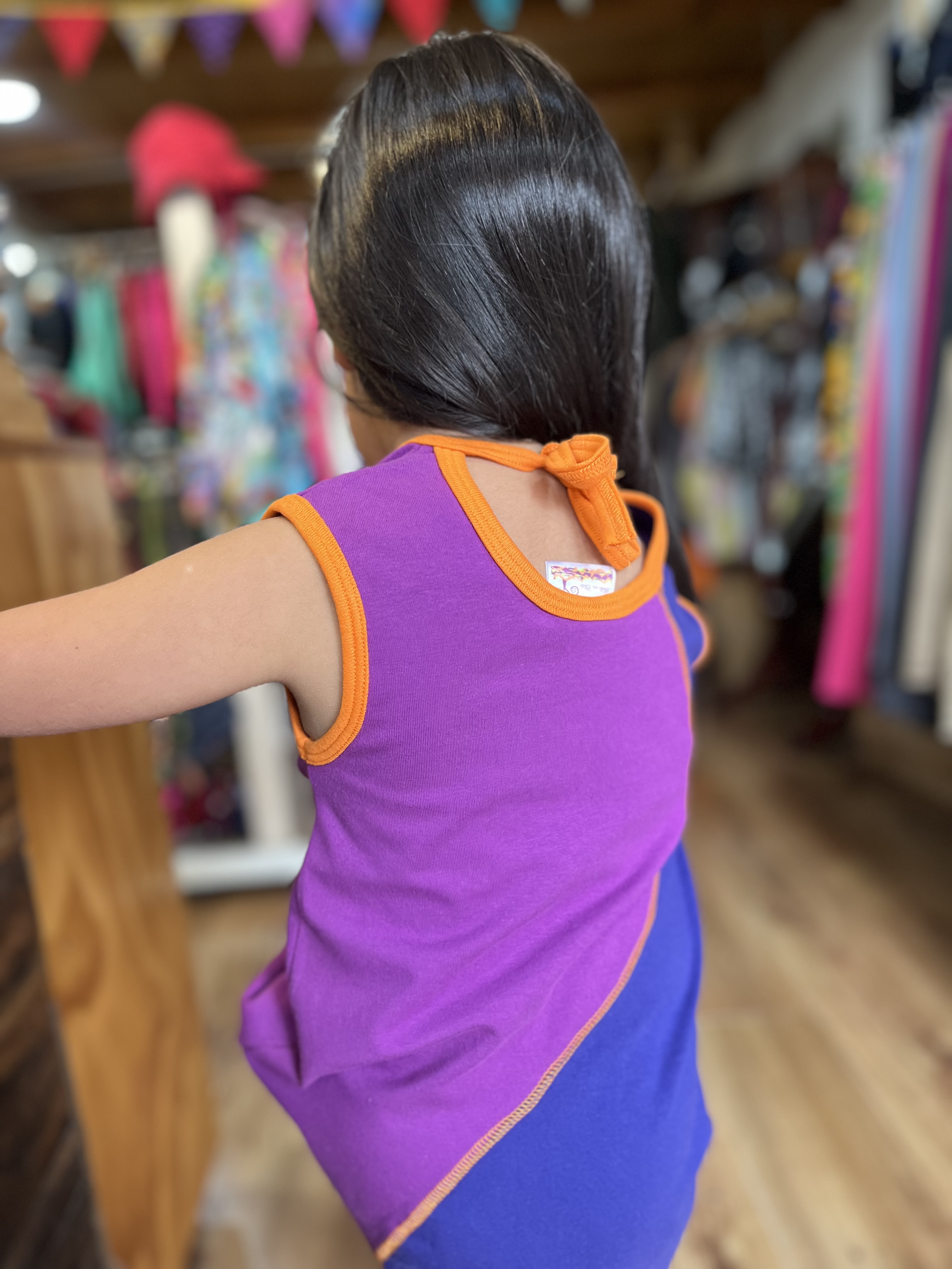 Vestido kisu niña bicolor amarra violeta morado aldodon pima